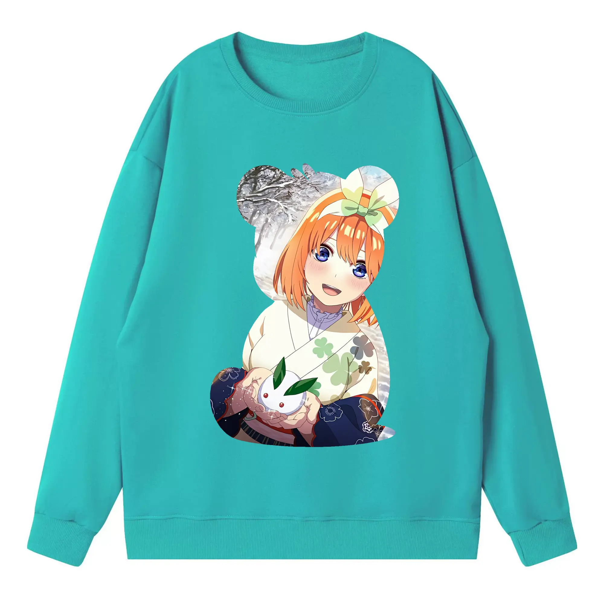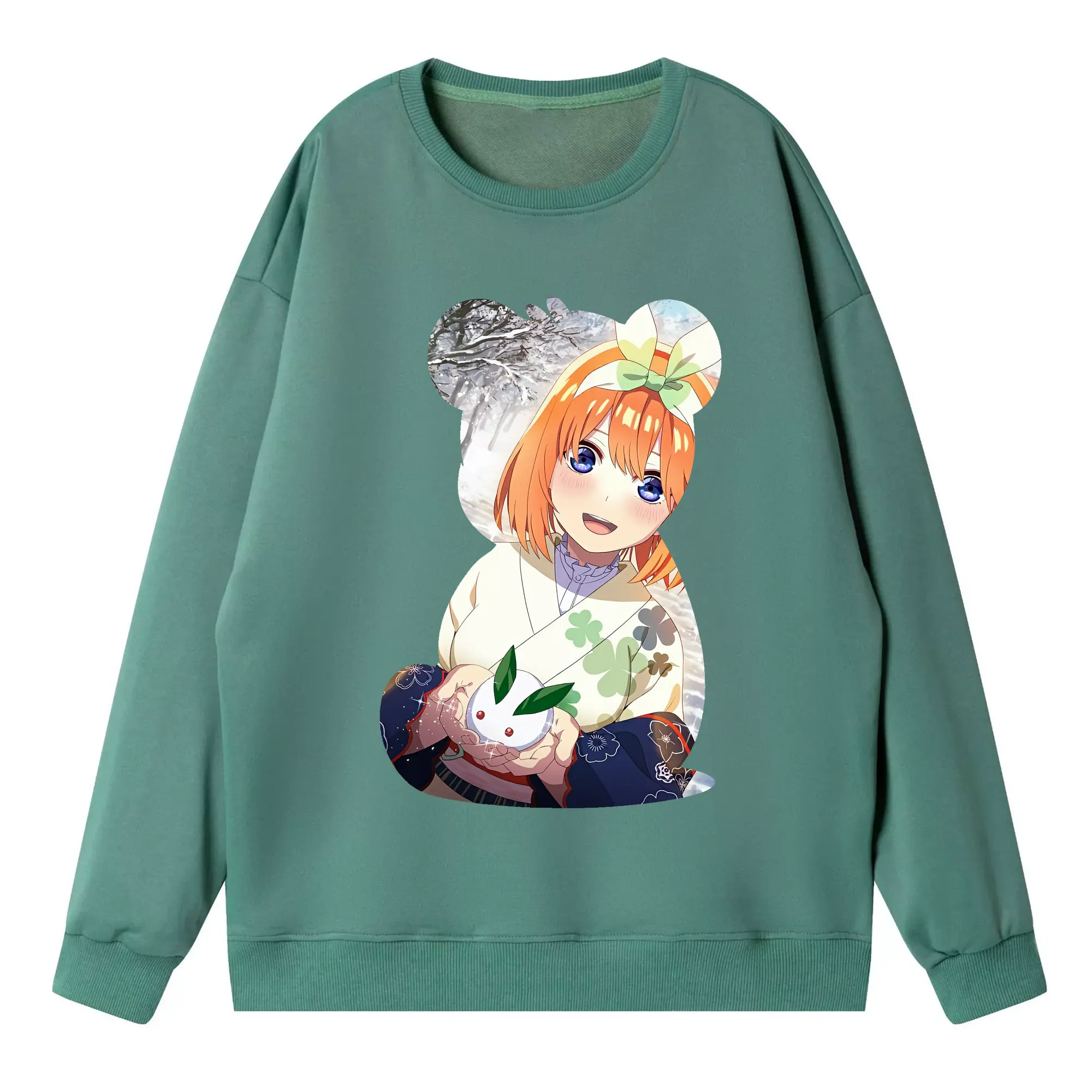 五等分の花嫁 グッズ 中野 四葉 - 高品質 クルーネック スウェット ・ コットン59% ポリエステル41% ・ ユニセックス 長袖 トレーナー ・ カジュアル デイリー スポーツ 散歩用
