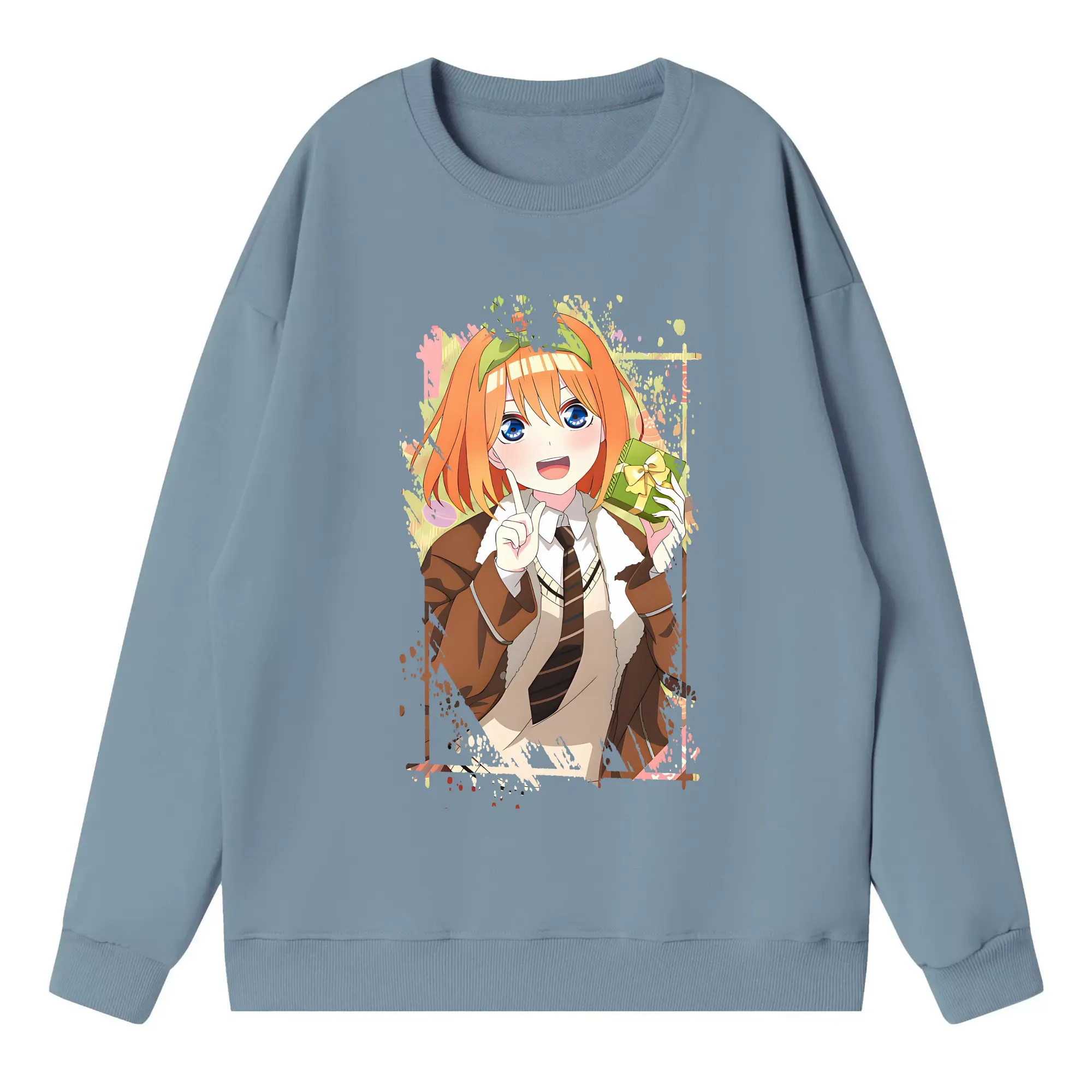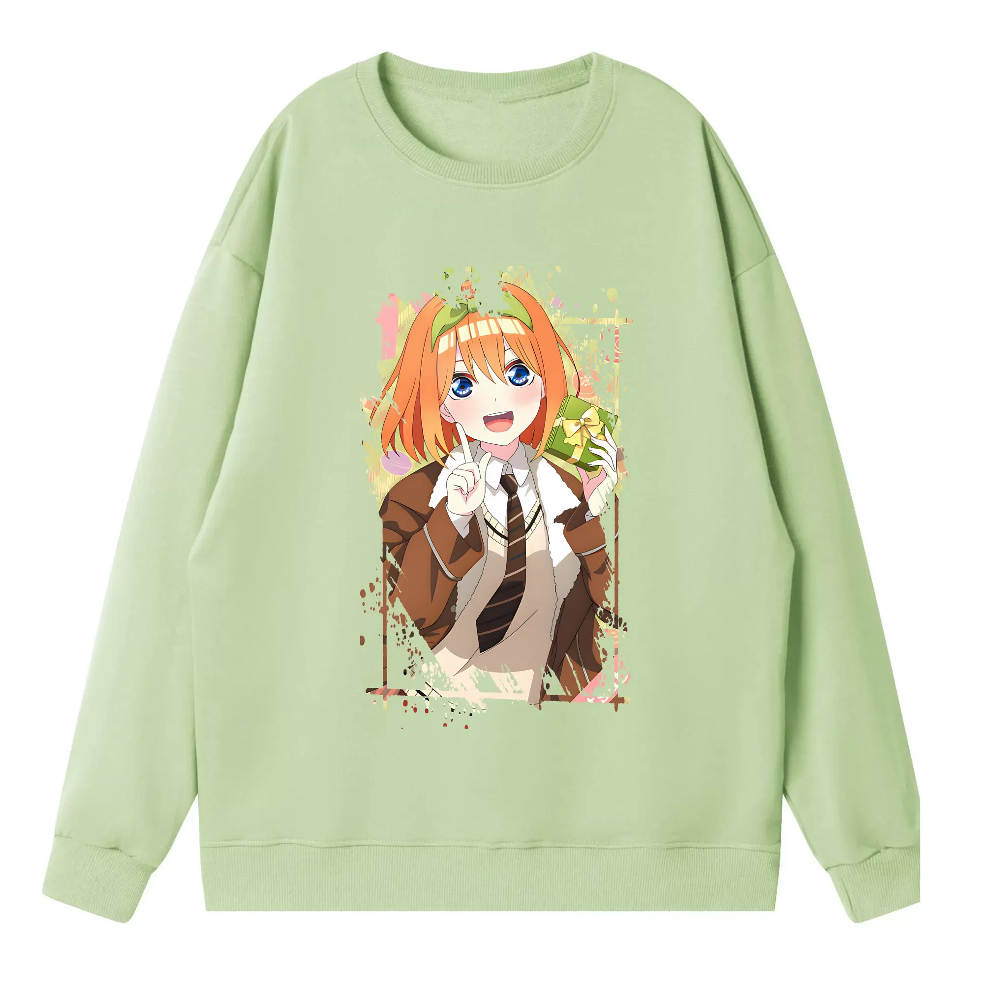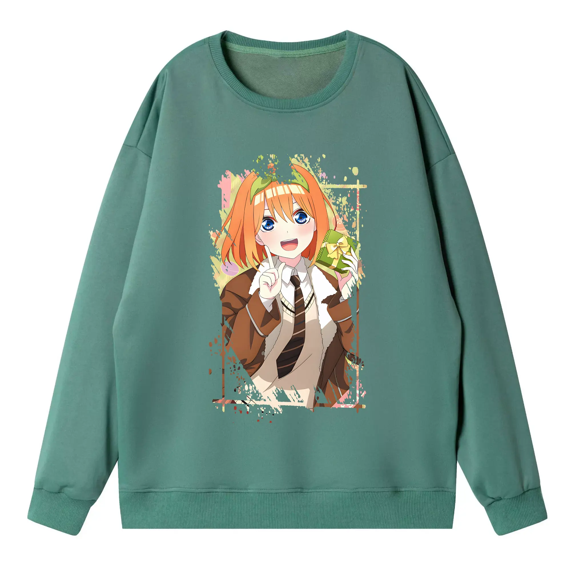 五等分の花嫁 グッズ 中野 四葉 - 高品質 クルーネック スウェット ・ コットン59% ポリエステル41% ・ ユニセックス 長袖 トレーナー ・ カジュアル デイリー スポーツ 散歩用