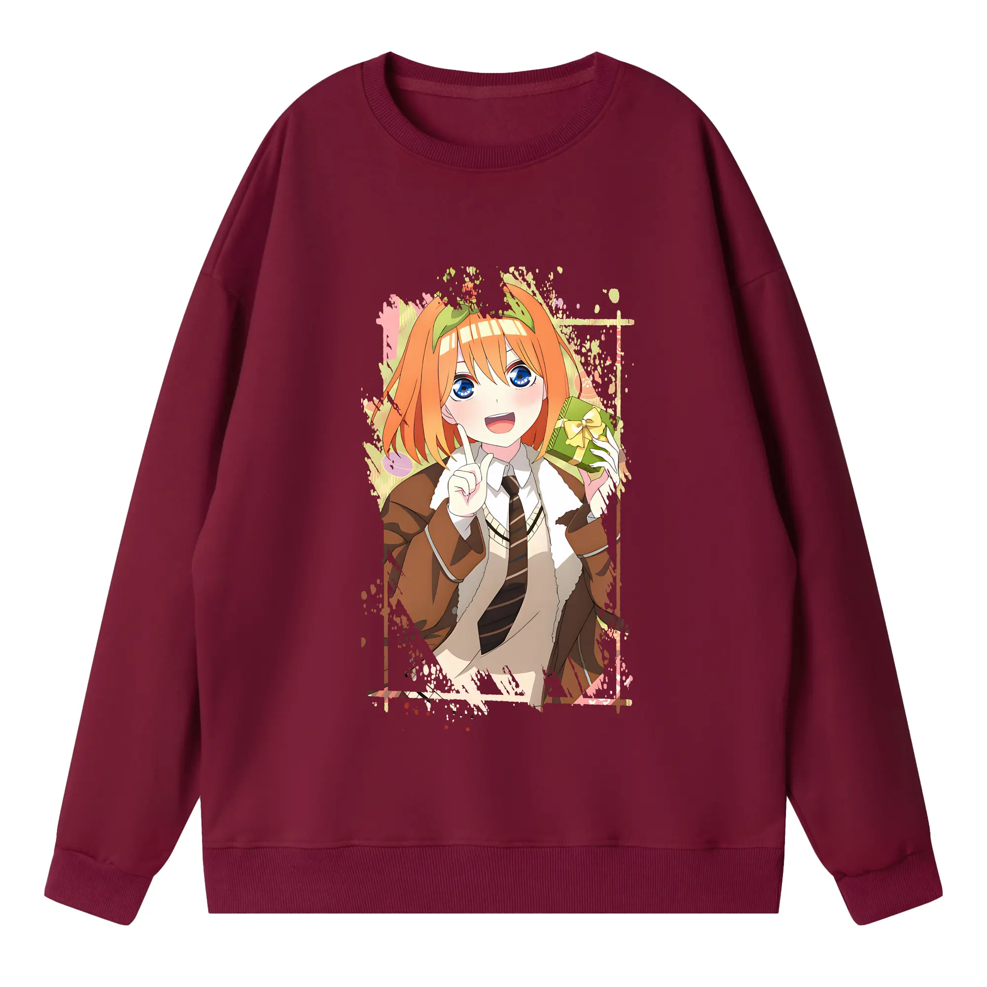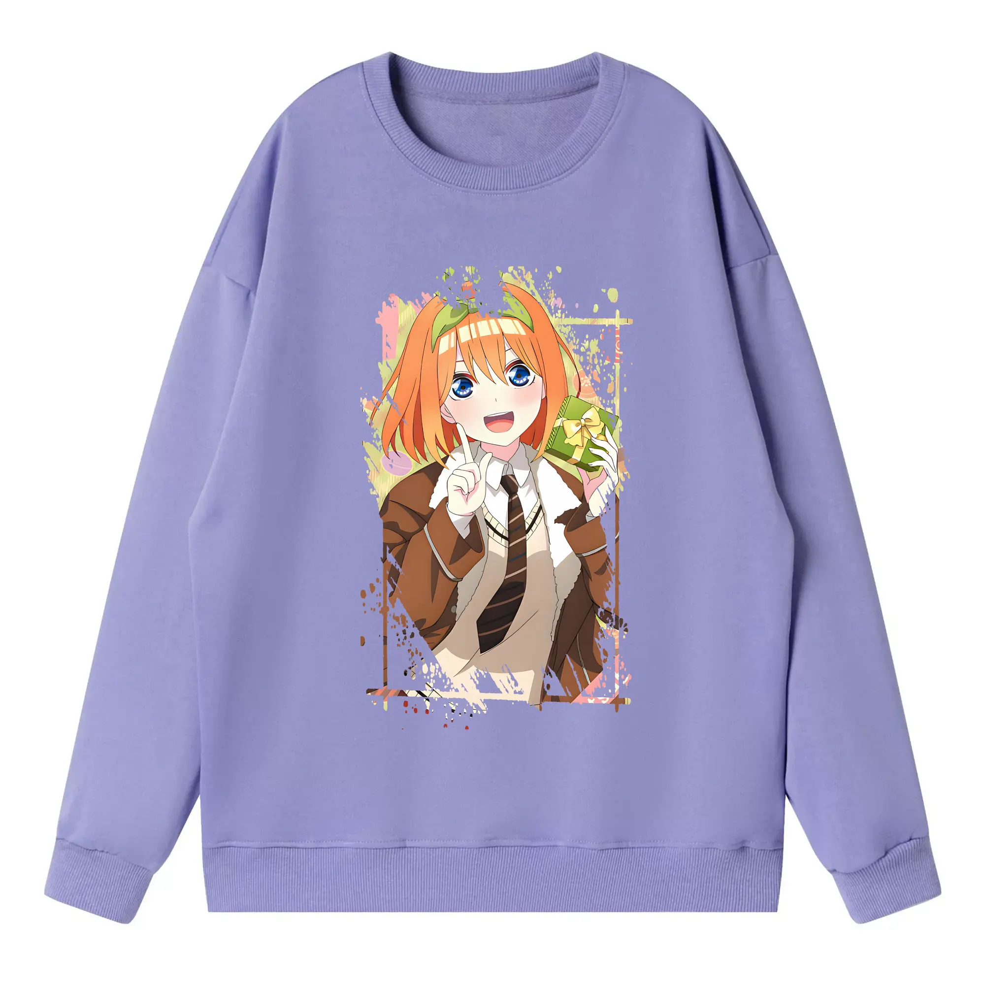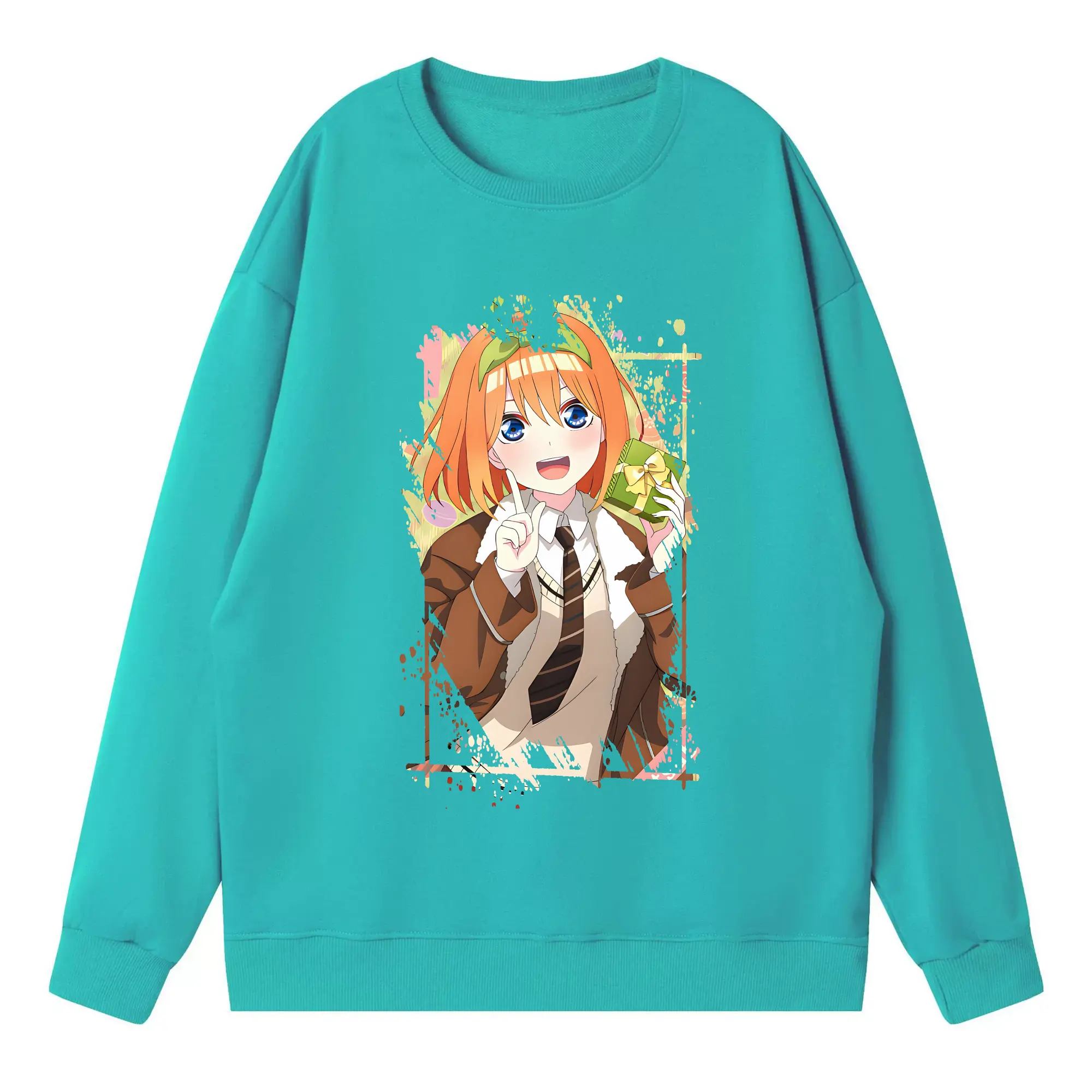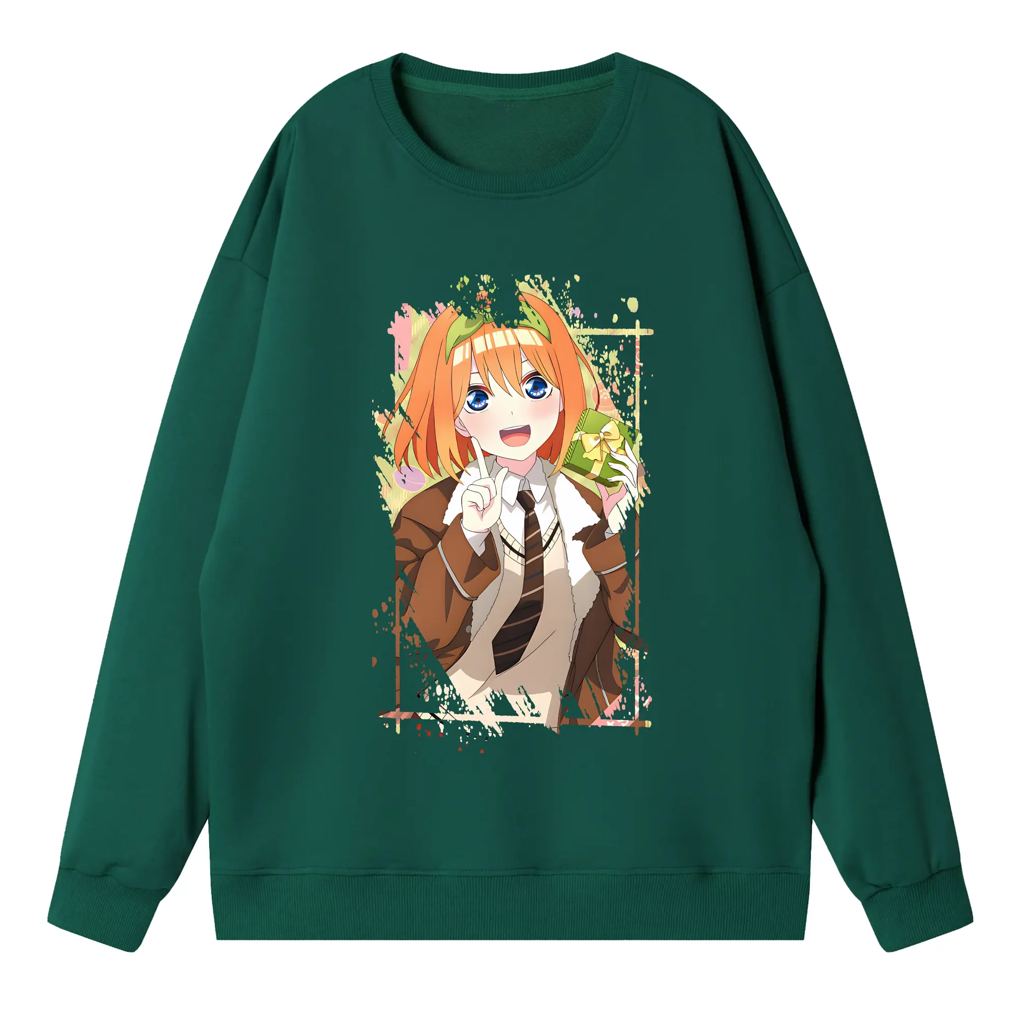 五等分の花嫁 グッズ 中野 四葉 - 高品質 クルーネック スウェット ・ コットン59% ポリエステル41% ・ ユニセックス 長袖 トレーナー ・ カジュアル デイリー スポーツ 散歩用