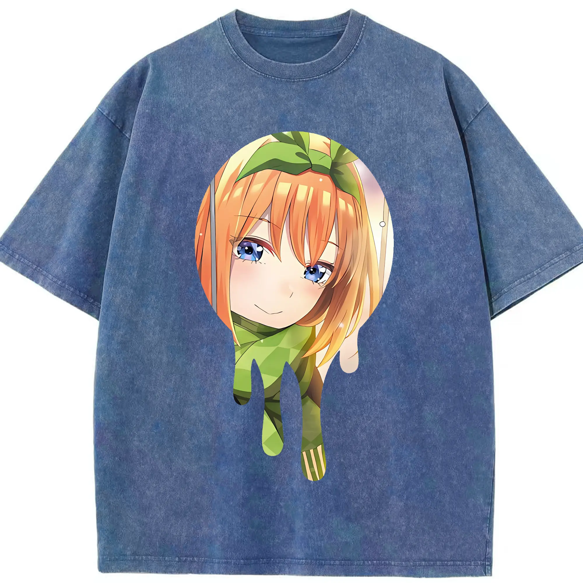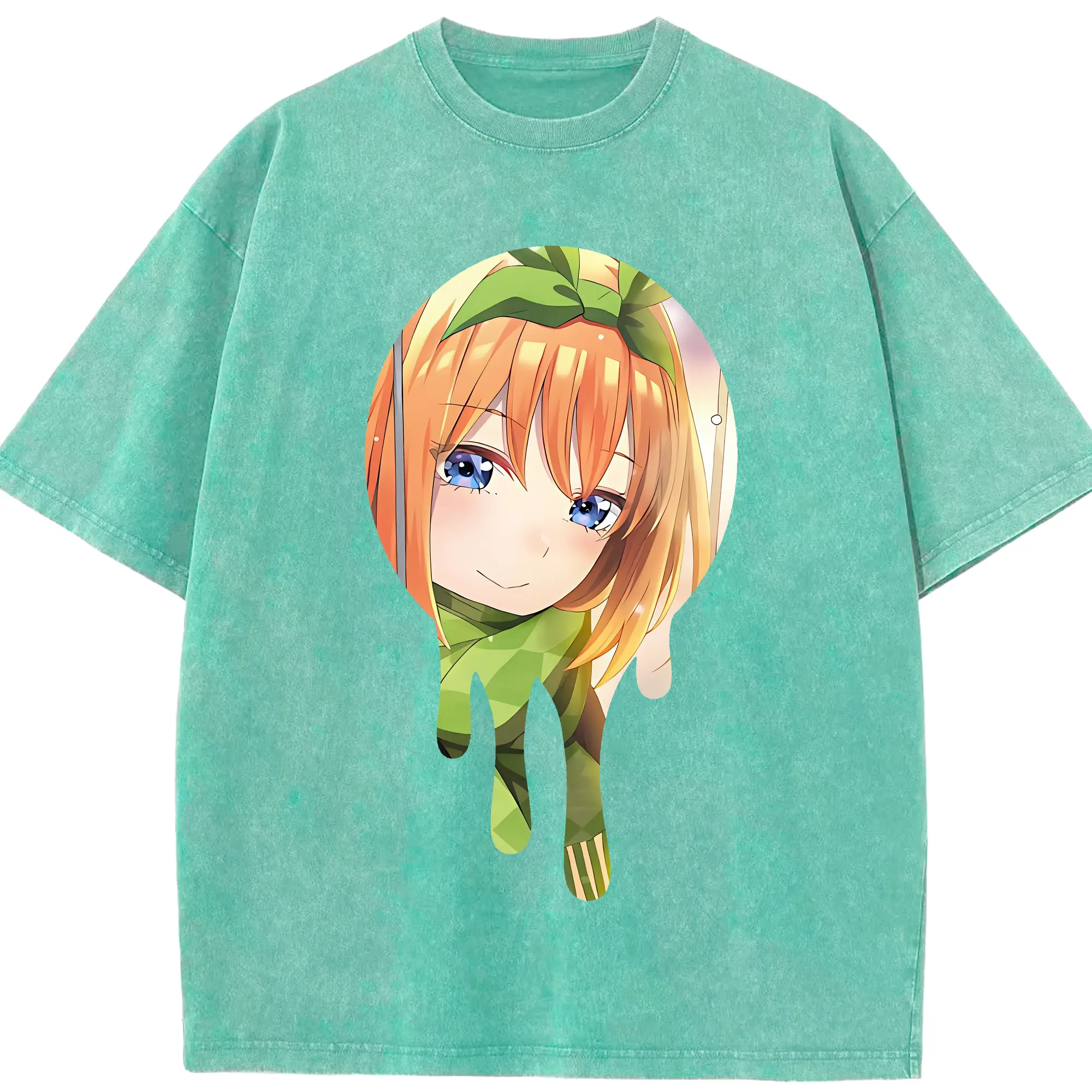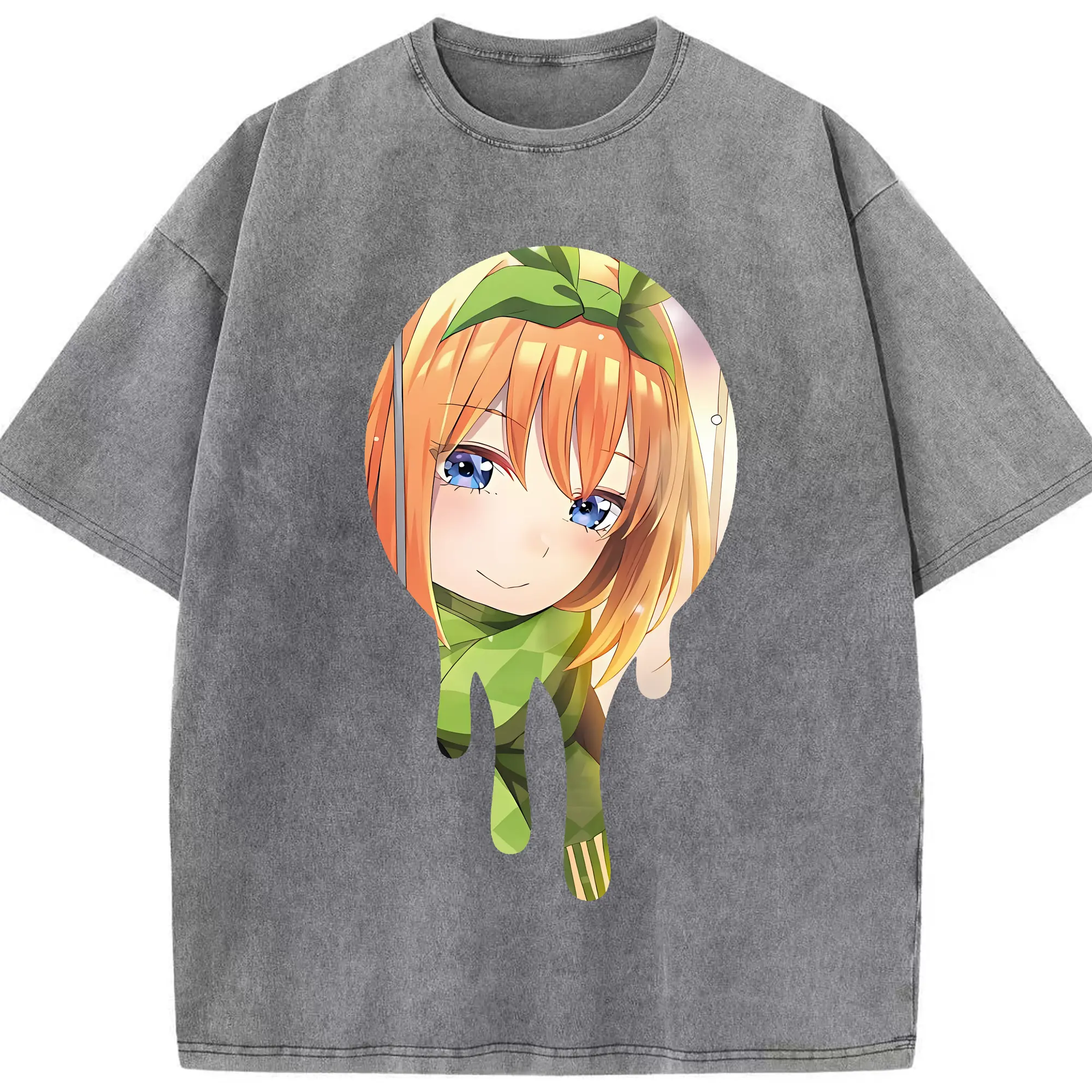 五等分の花嫁 グッズ 中野 四葉 - 綿100% ヴィンテージ風 半袖Tシャツ ・ 背面プリント ・ 柔らか肌触り ・ 通気性 快適 ・ スポーツ カジュアル 外出用