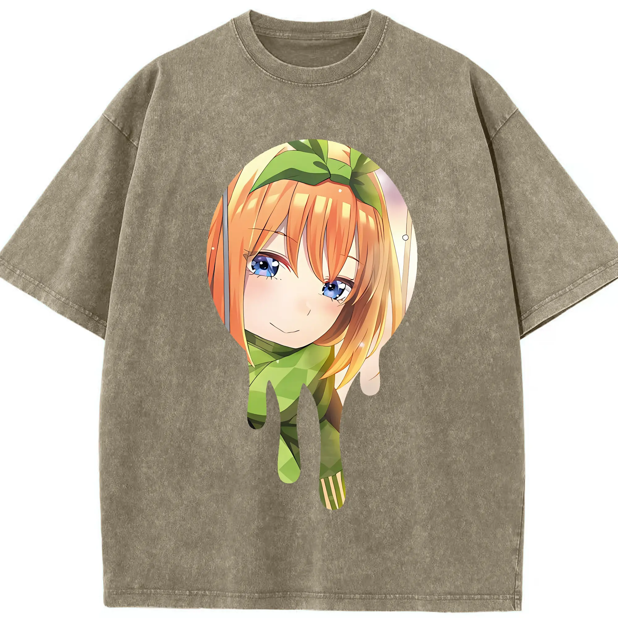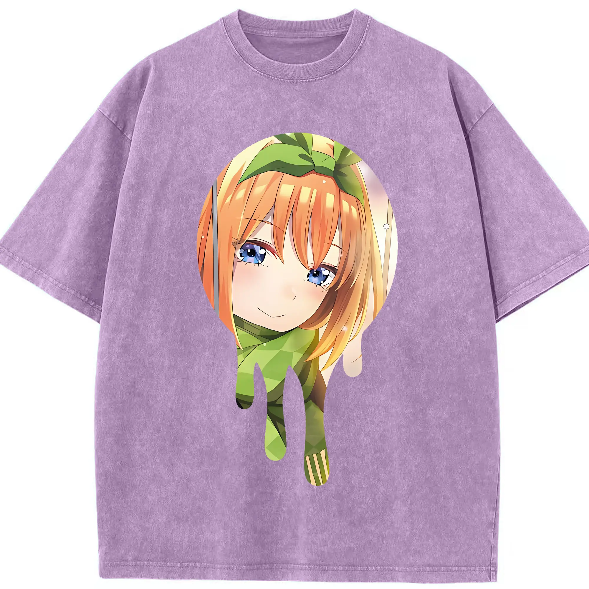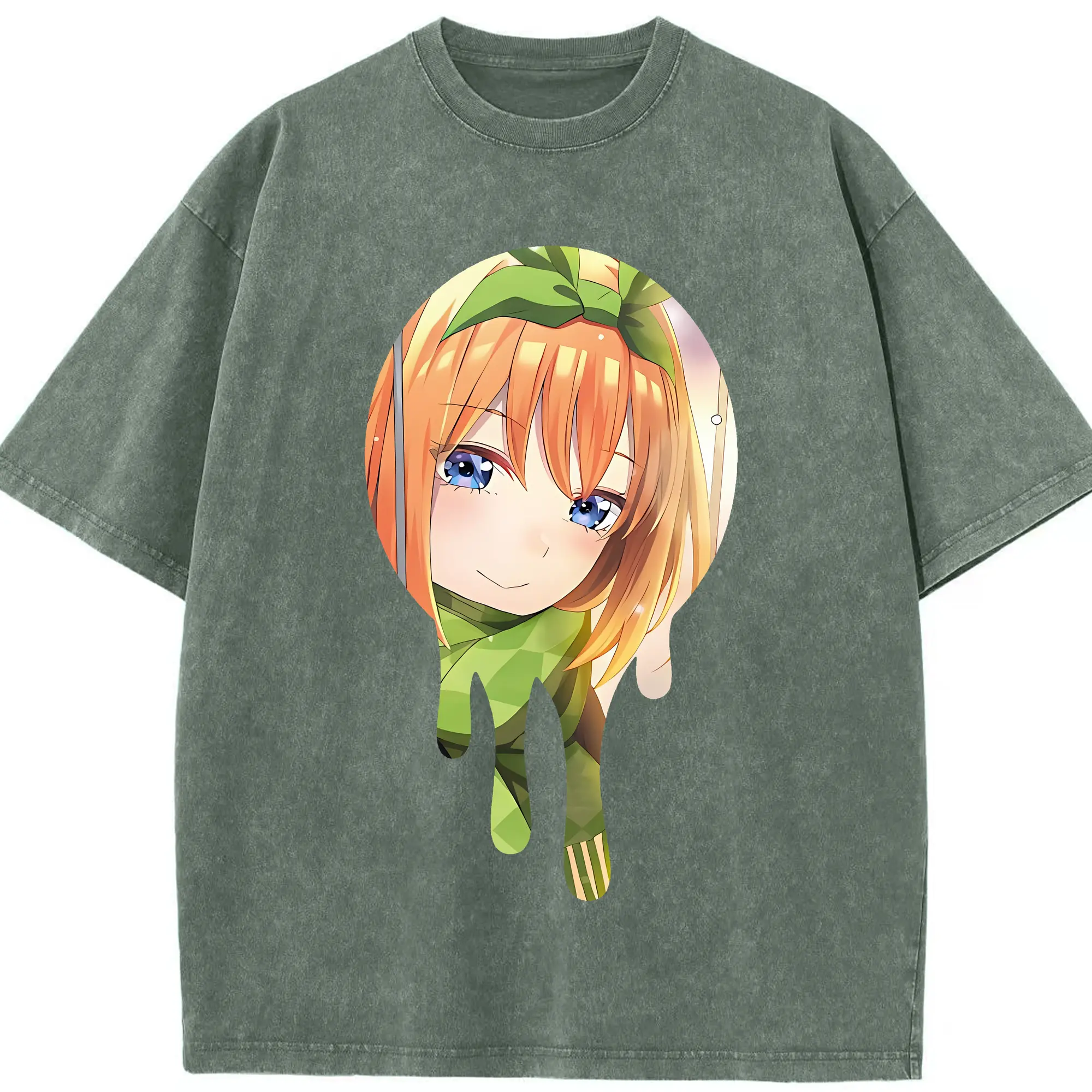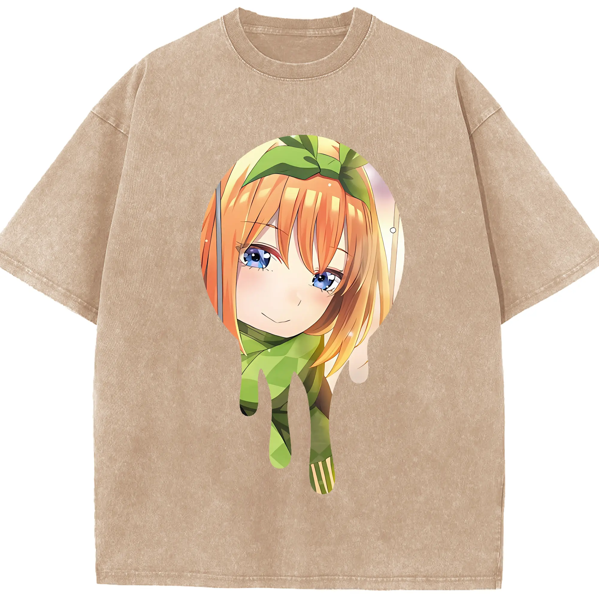 五等分の花嫁 グッズ 中野 四葉 - 綿100% ヴィンテージ風 半袖Tシャツ ・ 背面プリント ・ 柔らか肌触り ・ 通気性 快適 ・ スポーツ カジュアル 外出用