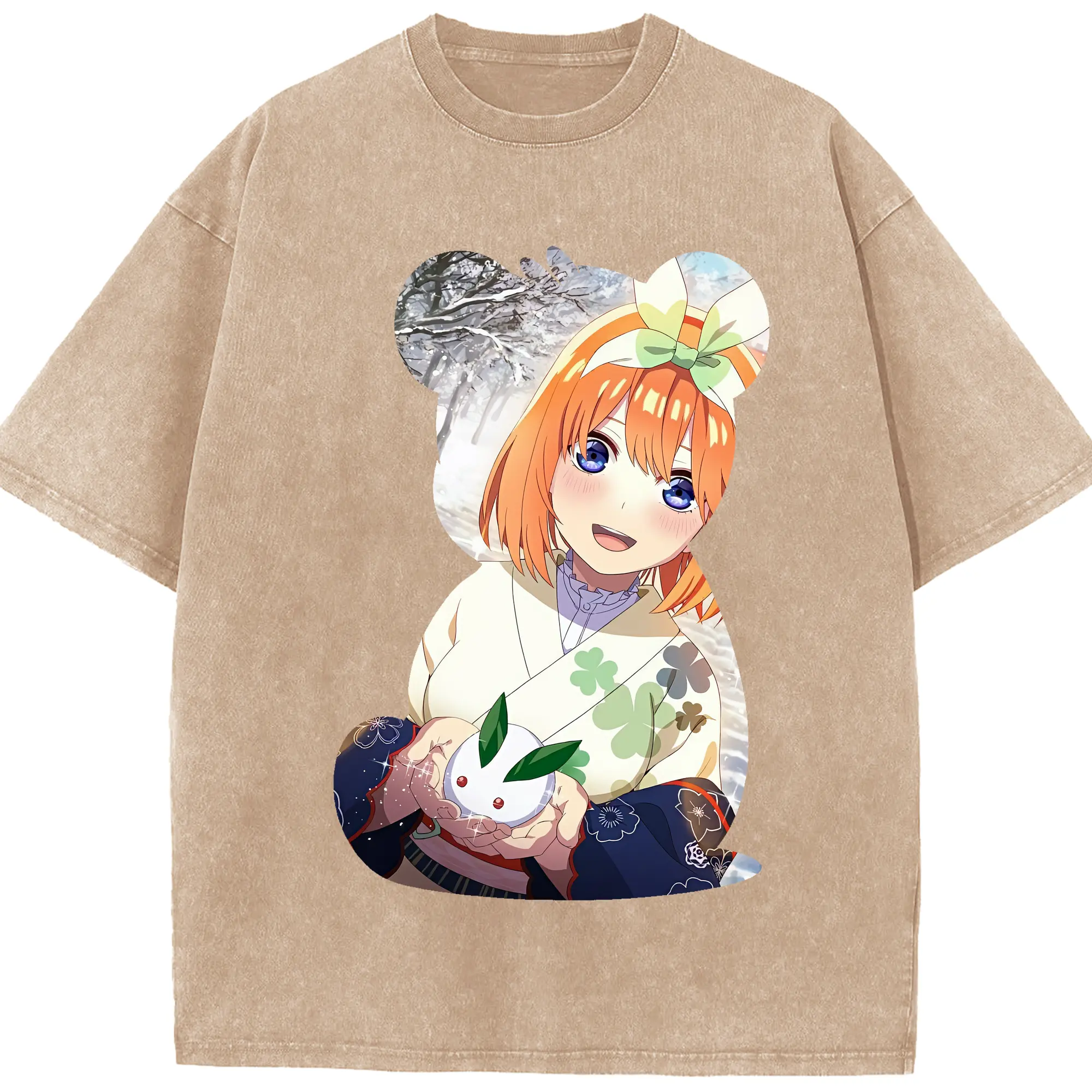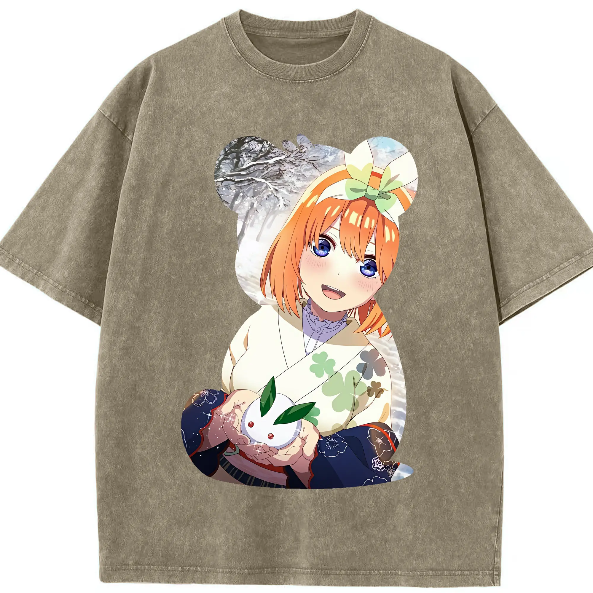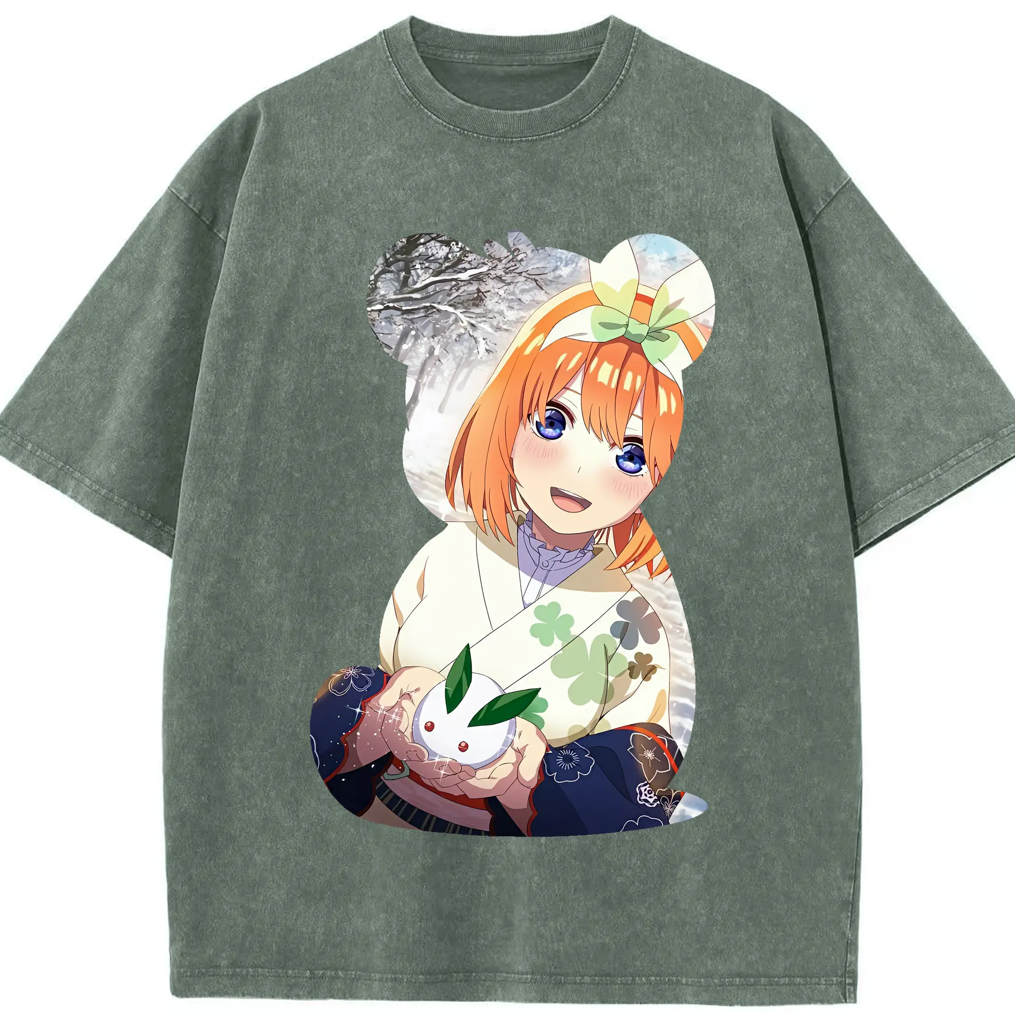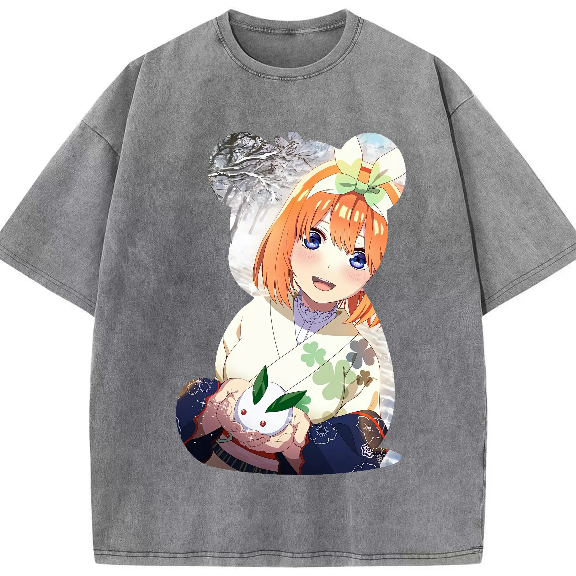 五等分の花嫁 グッズ 中野 四葉 - 綿100% ヴィンテージ風 半袖Tシャツ ・ 背面プリント ・ 柔らか肌触り ・ 通気性 快適 ・ スポーツ カジュアル 外出用