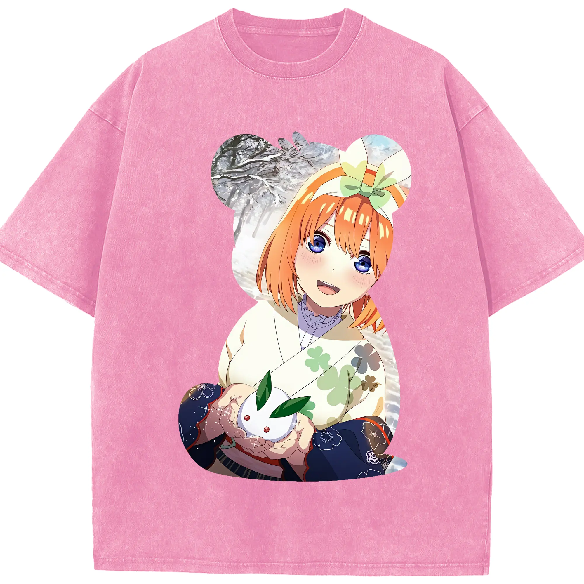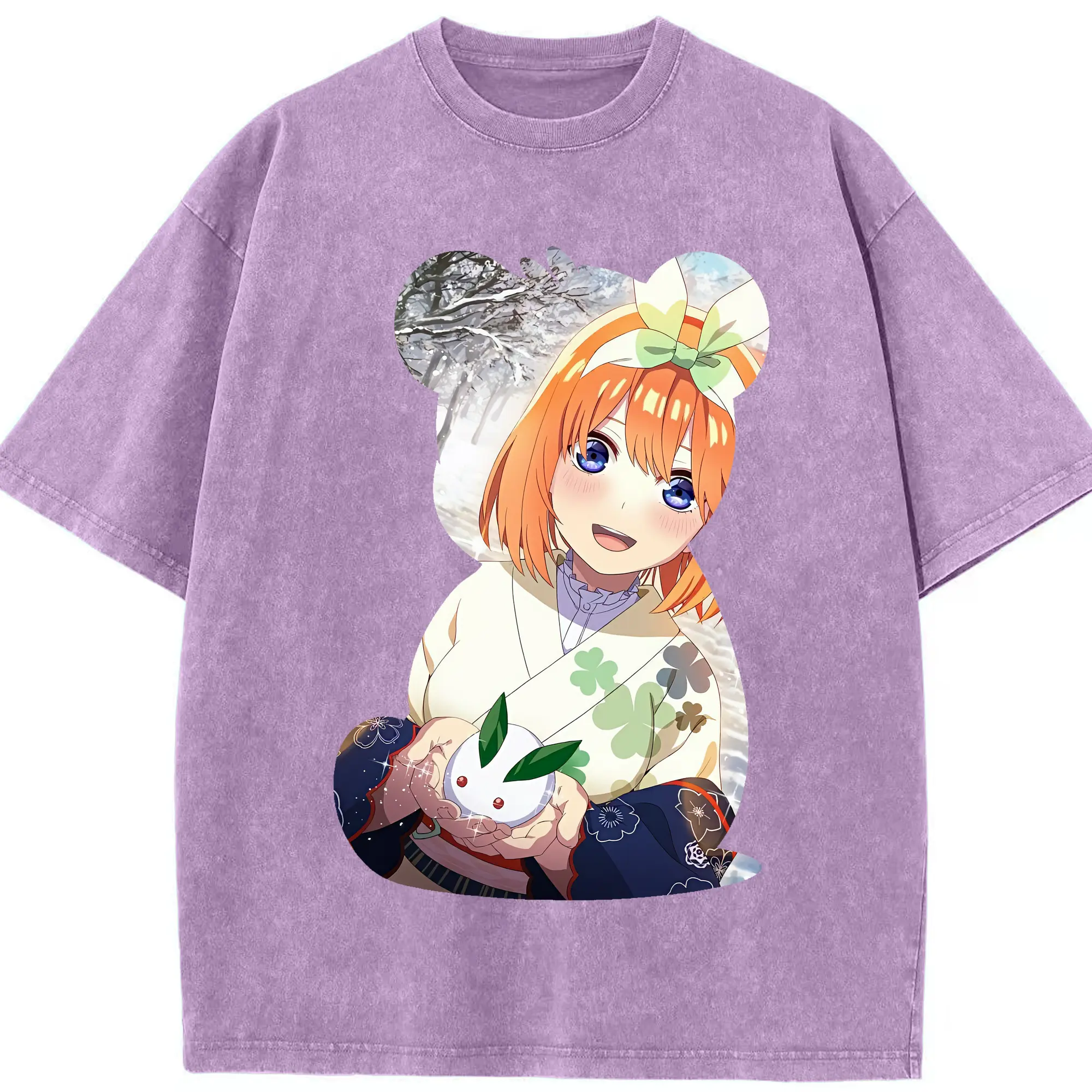 五等分の花嫁 グッズ 中野 四葉 - 綿100% 半袖Tシャツ ・ フロントプリント ・ 快適 通気性 ・ 日常使い 散歩 スポーツ用
