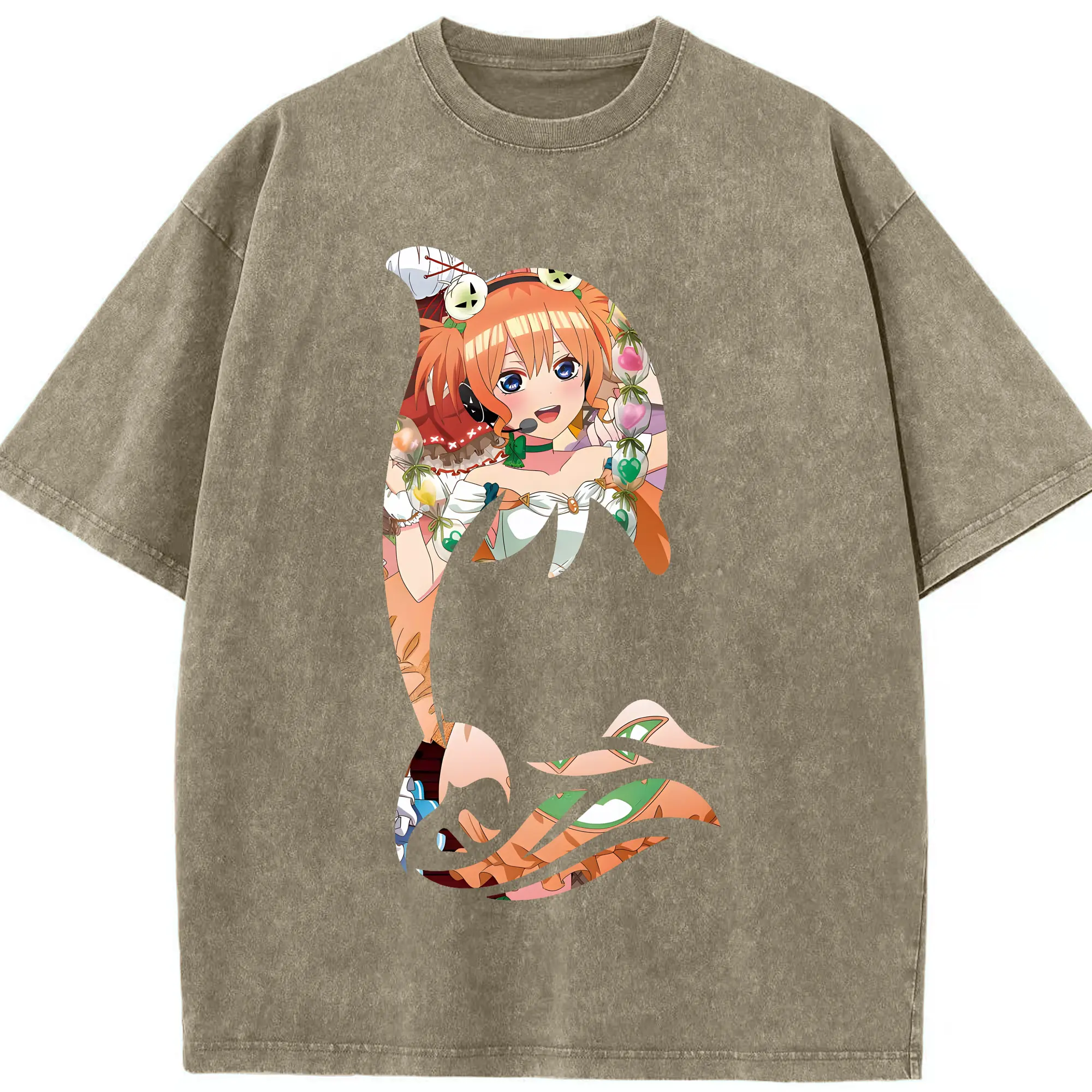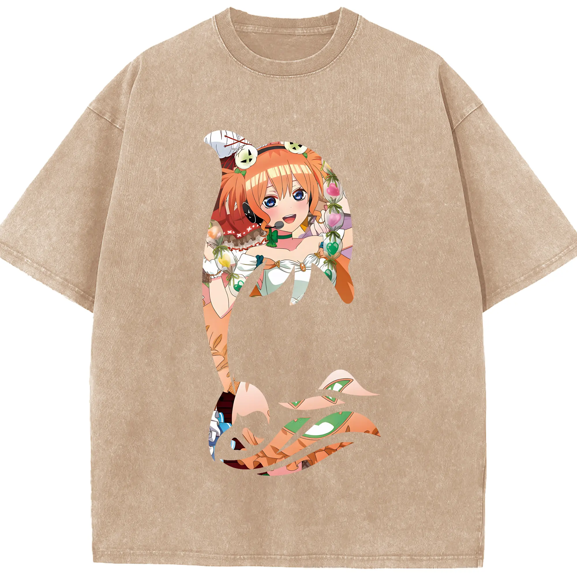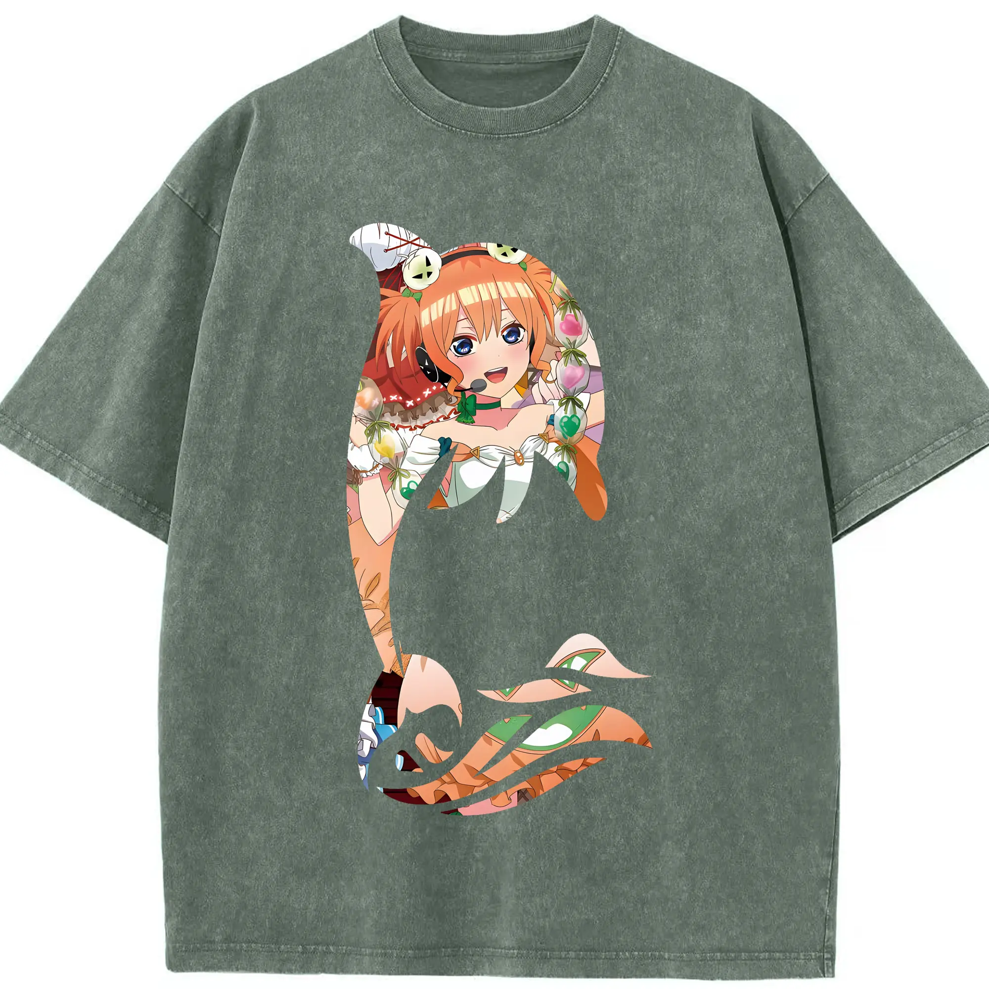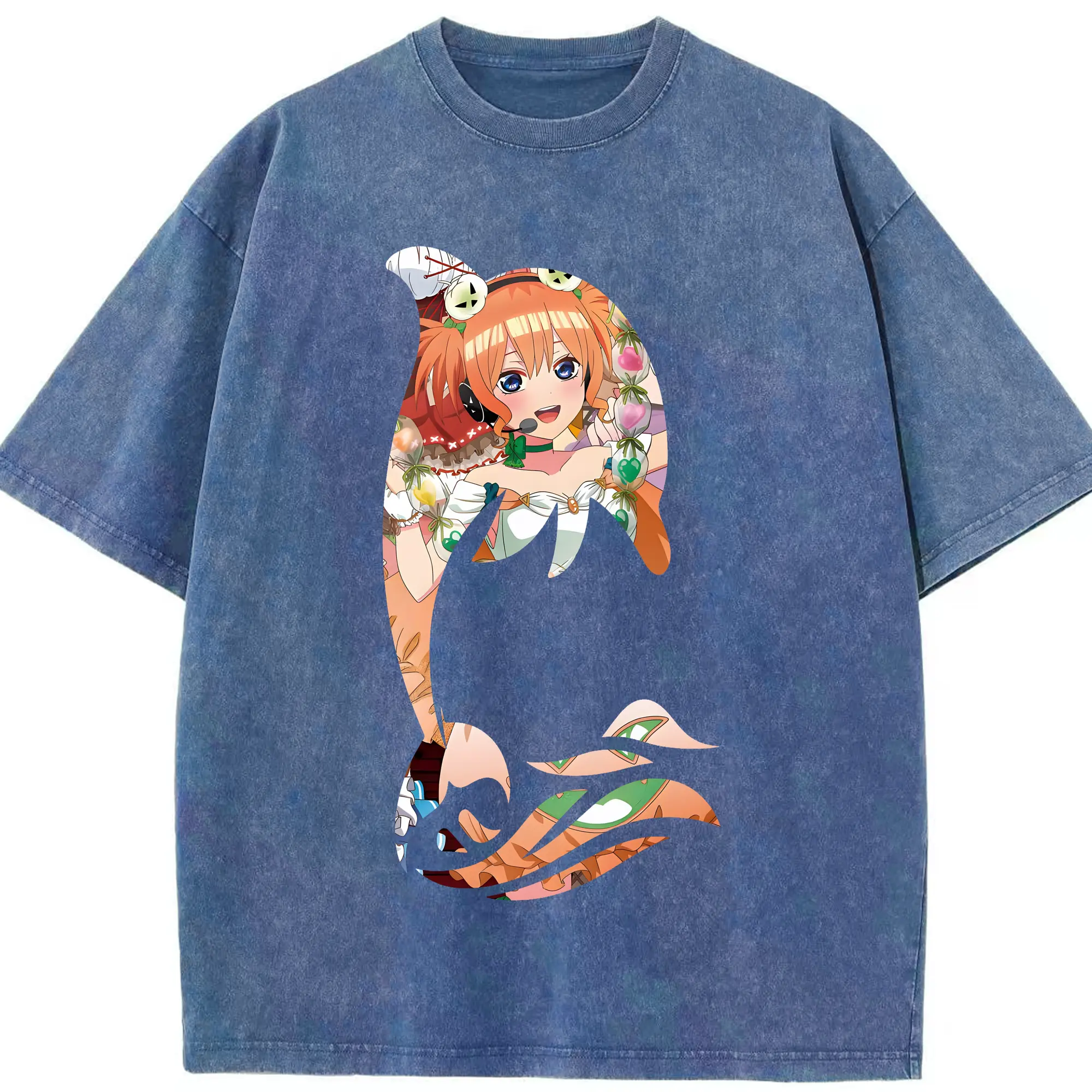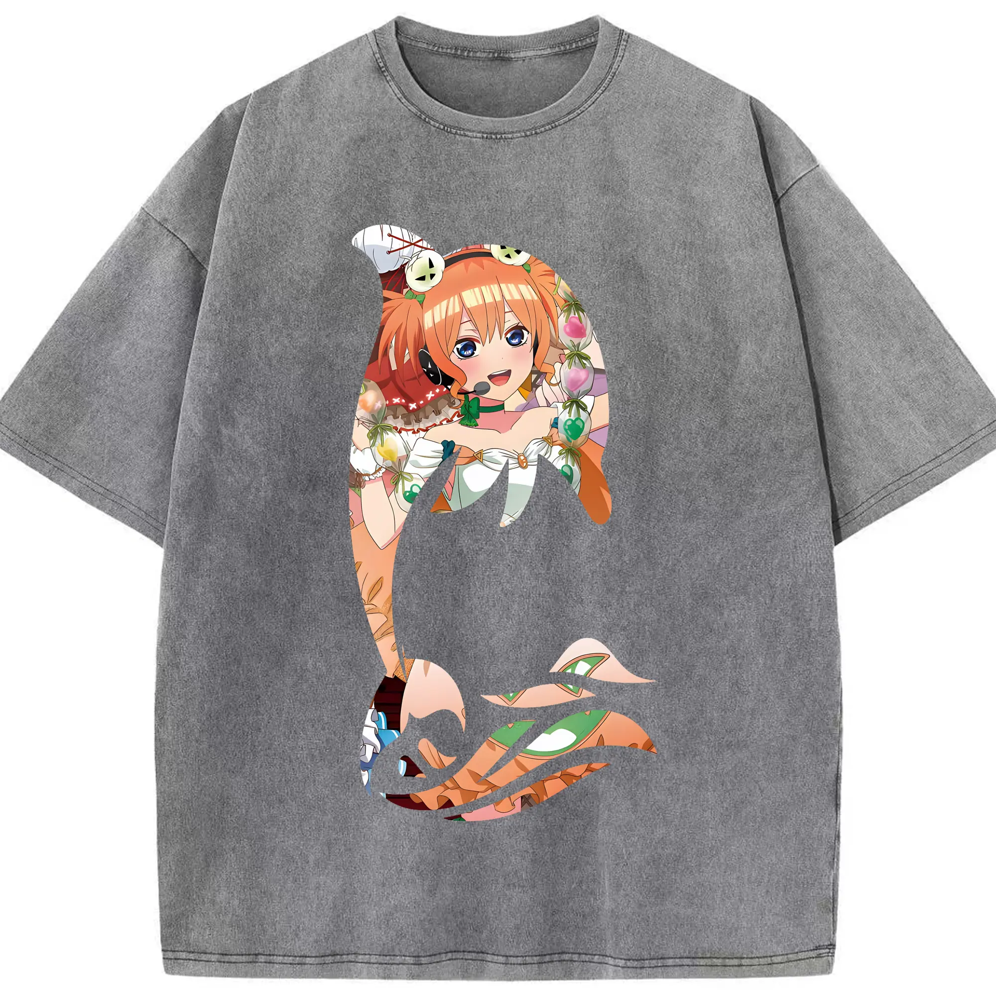 五等分の花嫁 グッズ 中野 四葉 - 綿100% ヴィンテージ風 半袖Tシャツ ・ 背面プリント ・ 柔らか肌触り ・ 通気性 快適 ・ スポーツ カジュアル 外出用