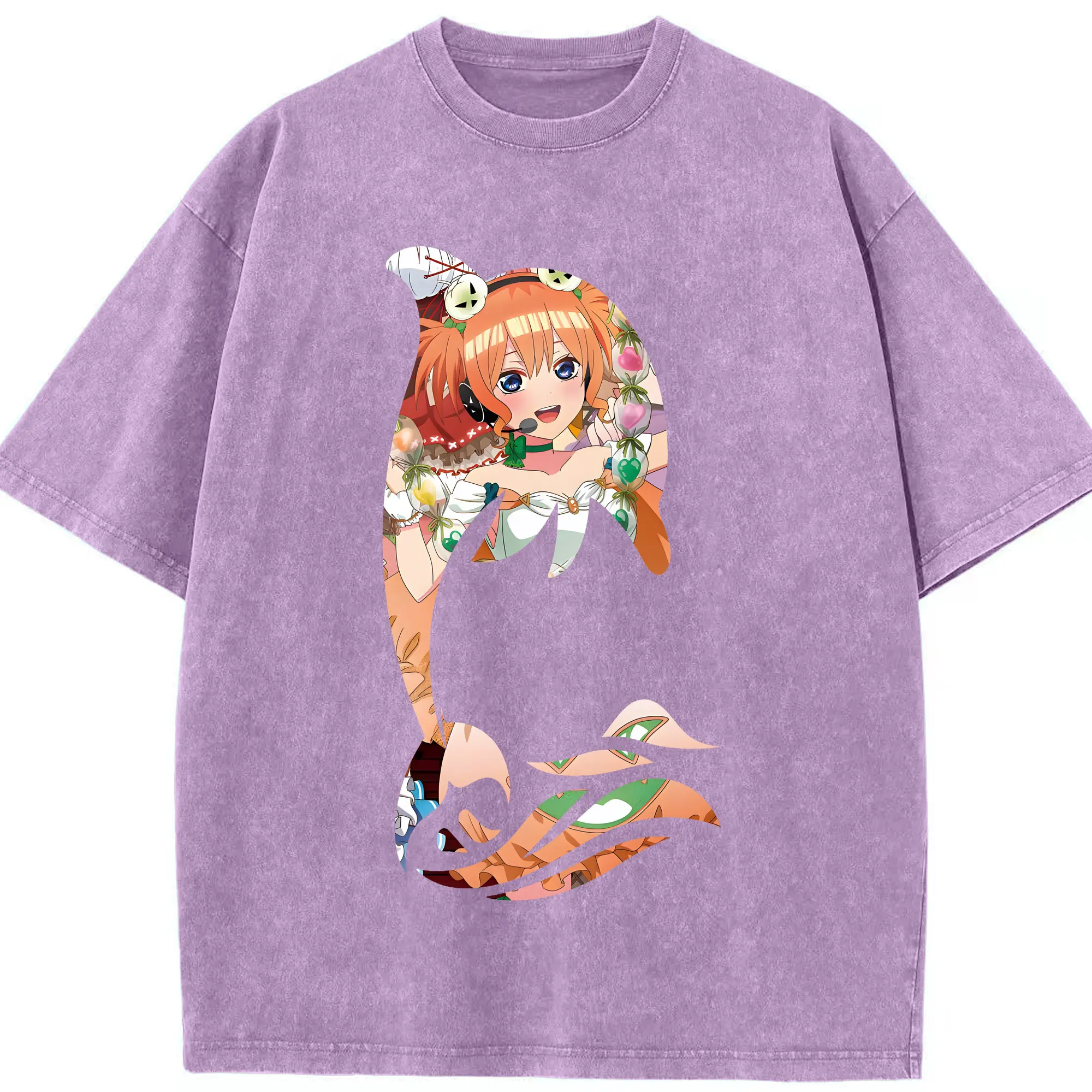 五等分の花嫁 グッズ 中野 四葉 - 綿100% 半袖Tシャツ ・ フロントプリント ・ 快適 通気性 ・ 日常使い 散歩 スポーツ用