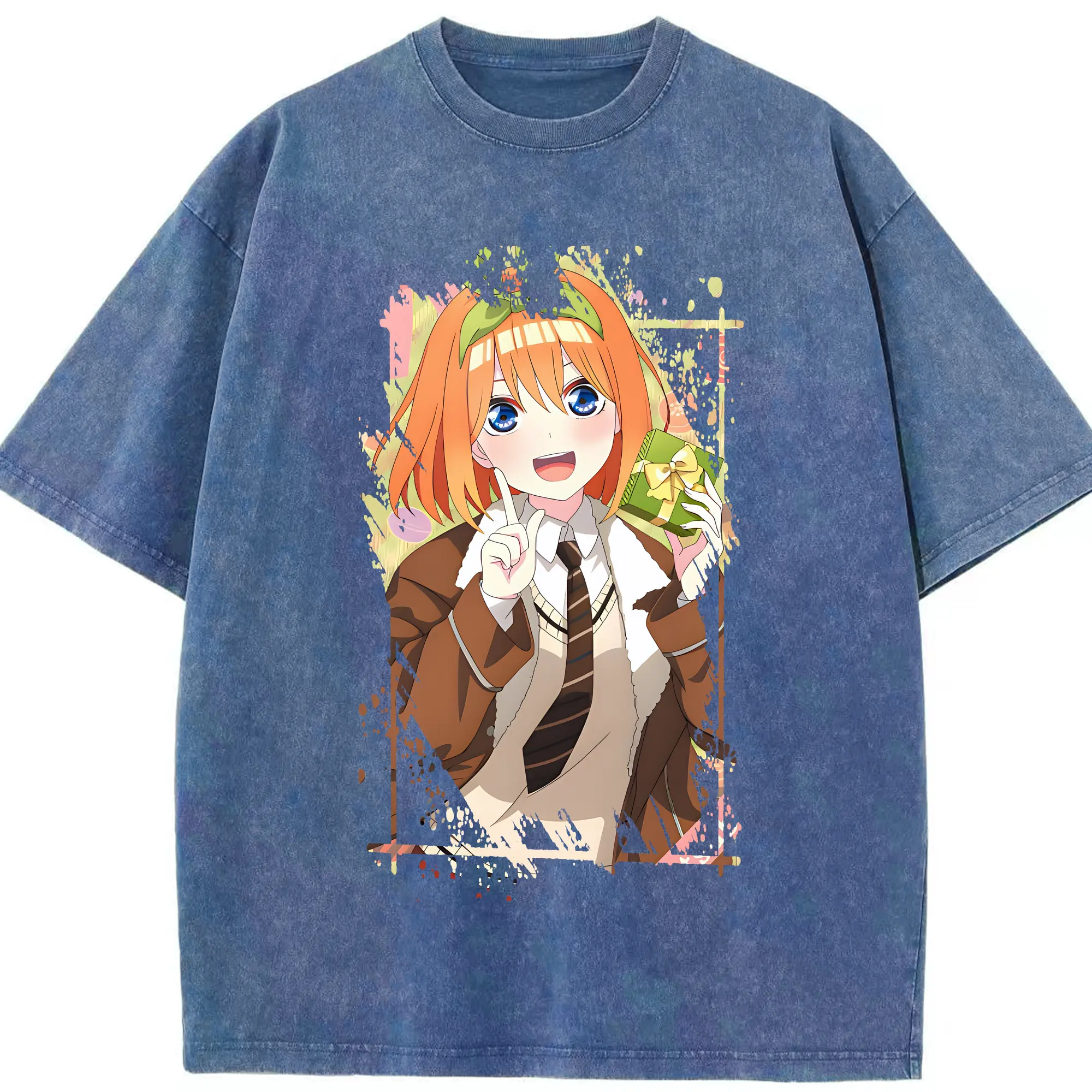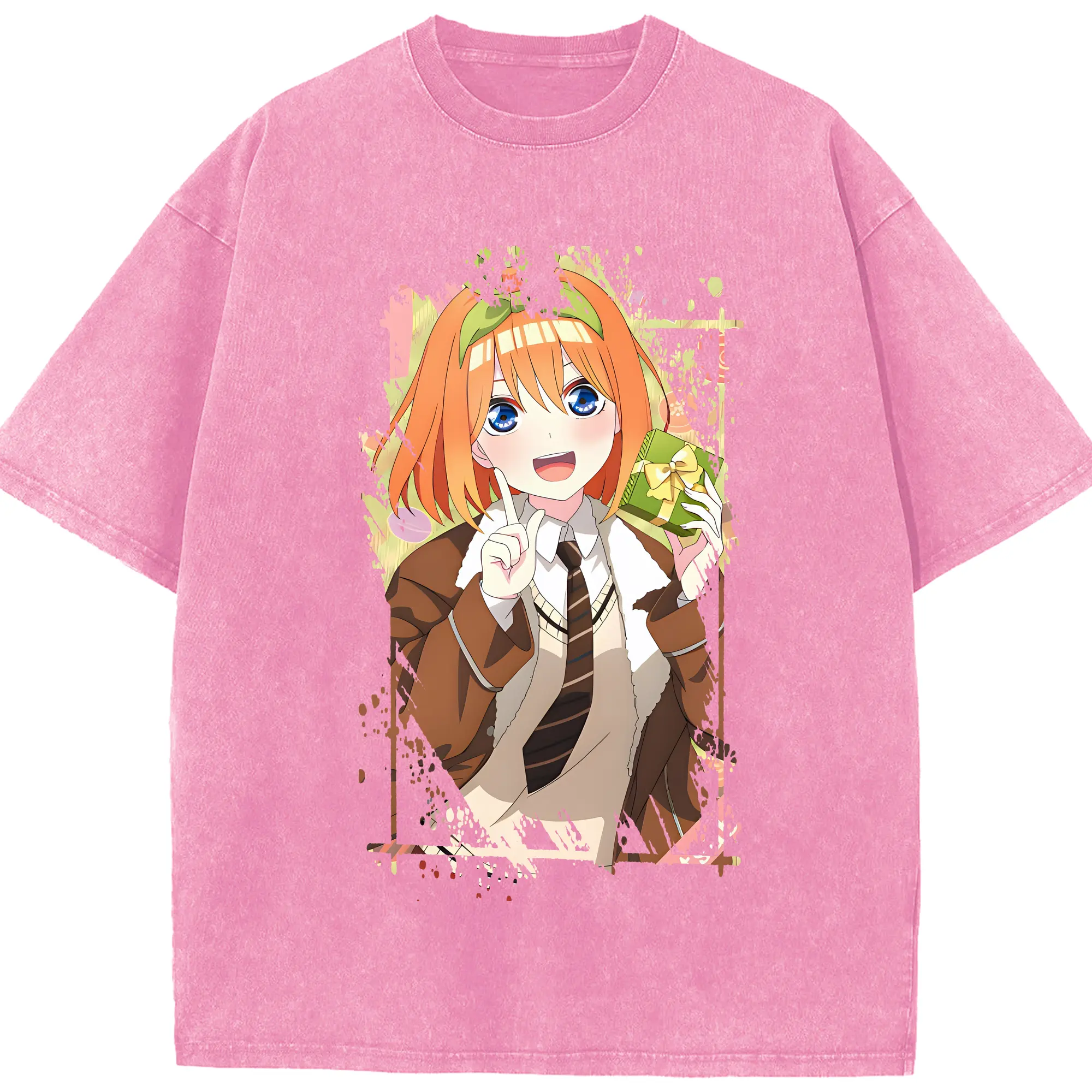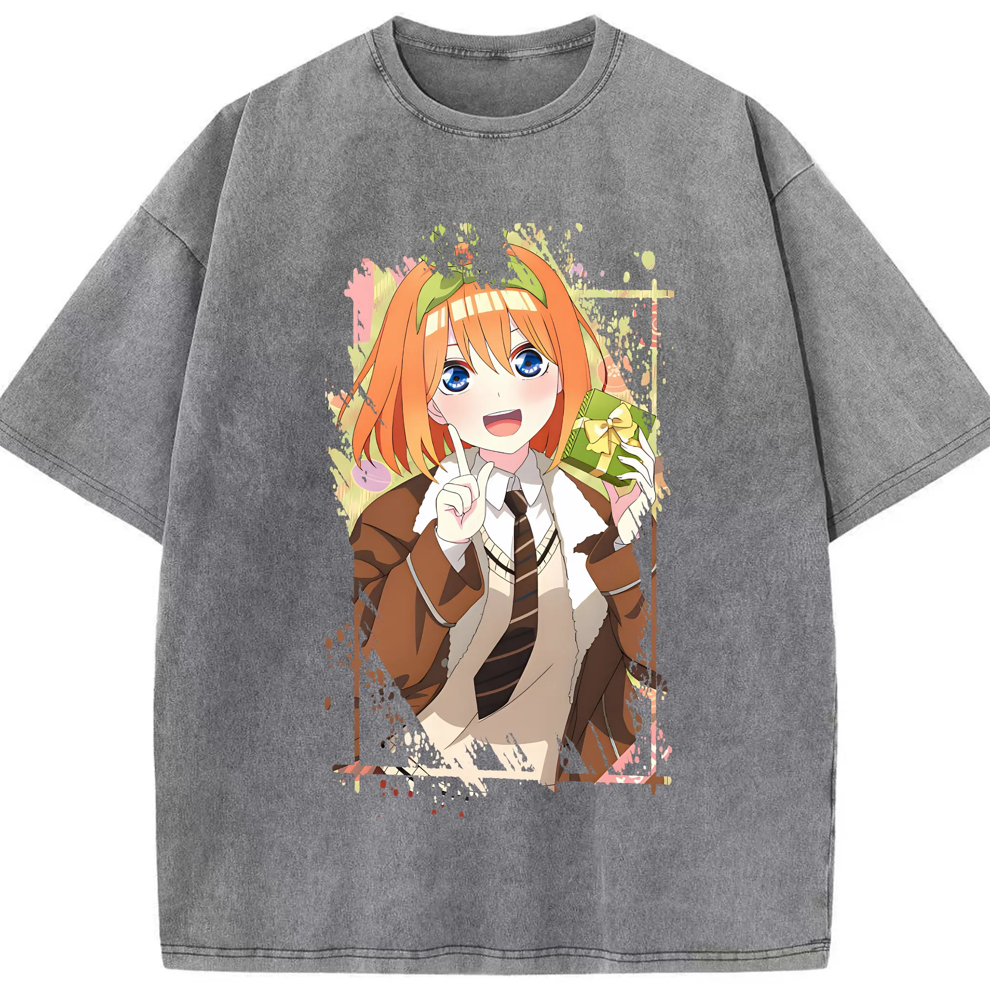 五等分の花嫁 グッズ 中野 四葉 - 綿100% ヴィンテージ風 半袖Tシャツ ・ 背面プリント ・ 柔らか肌触り ・ 通気性 快適 ・ スポーツ カジュアル 外出用