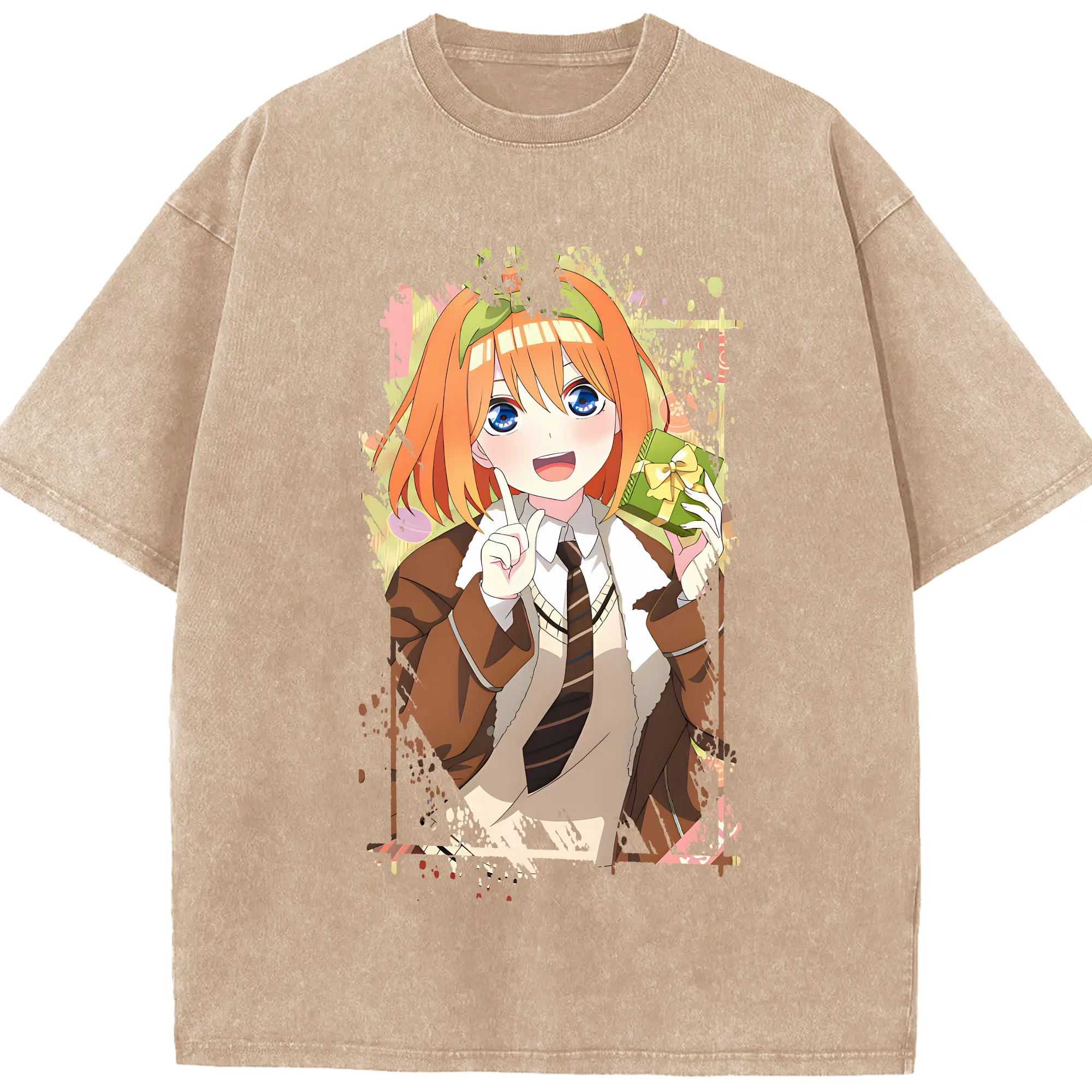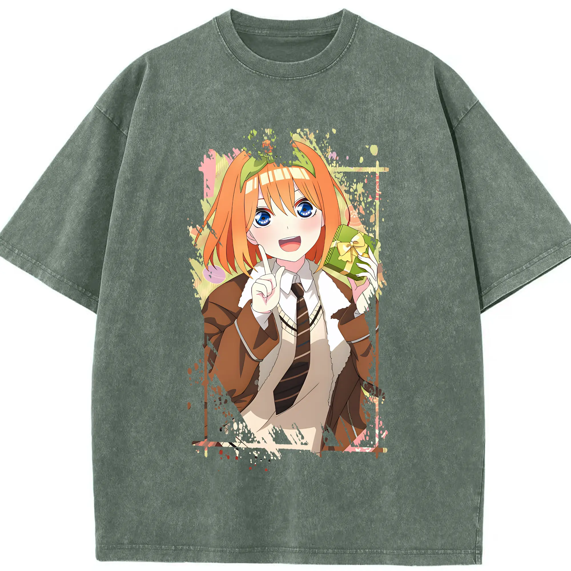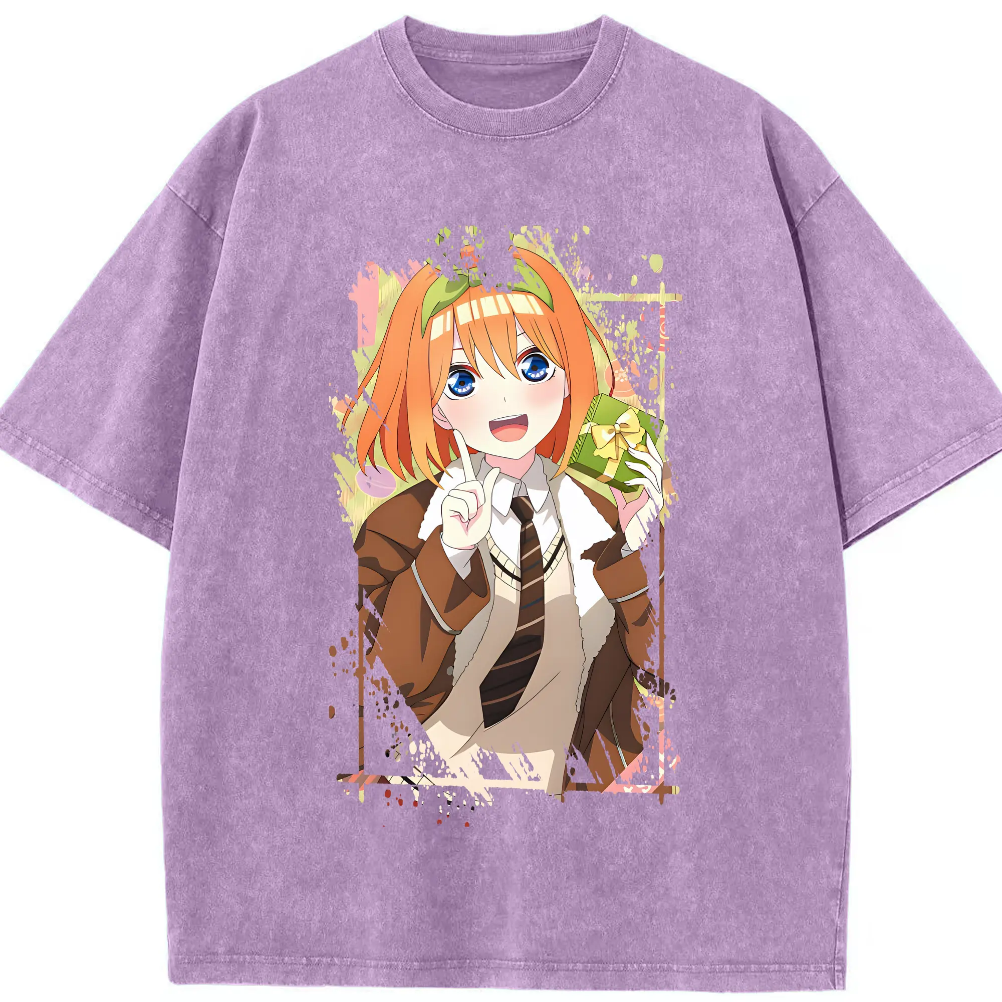 五等分の花嫁 グッズ 中野 四葉 - 綿100% ヴィンテージ風 半袖Tシャツ ・ 背面プリント ・ 柔らか肌触り ・ 通気性 快適 ・ スポーツ カジュアル 外出用