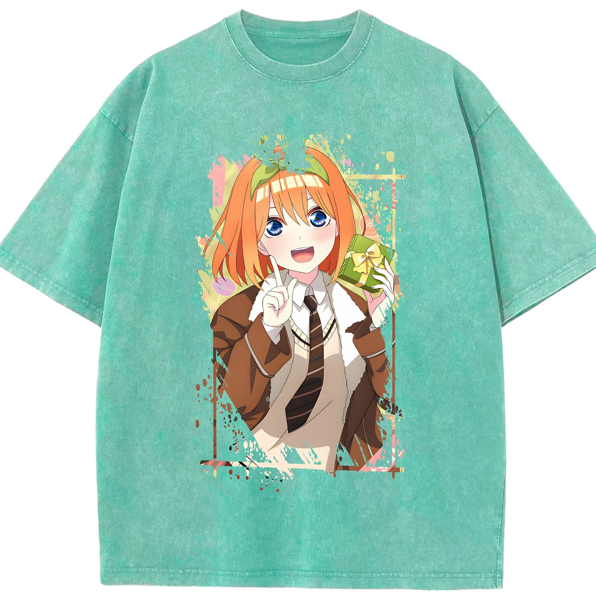 五等分の花嫁 グッズ 中野 四葉 - 綿100% 半袖Tシャツ ・ フロントプリント ・ 快適 通気性 ・ 日常使い 散歩 スポーツ用