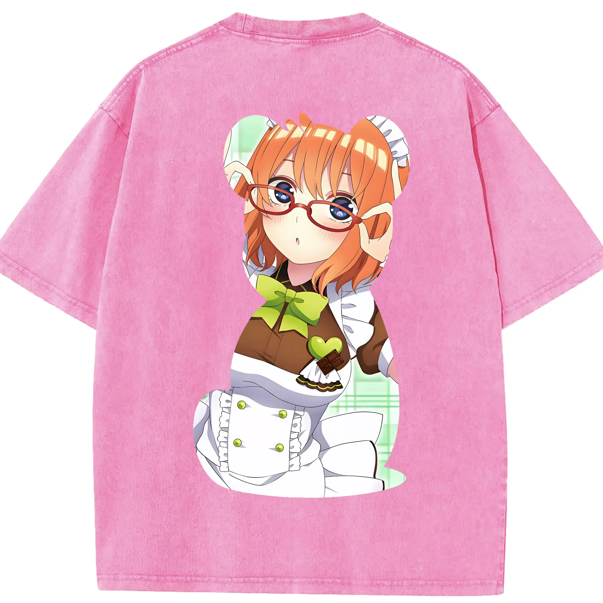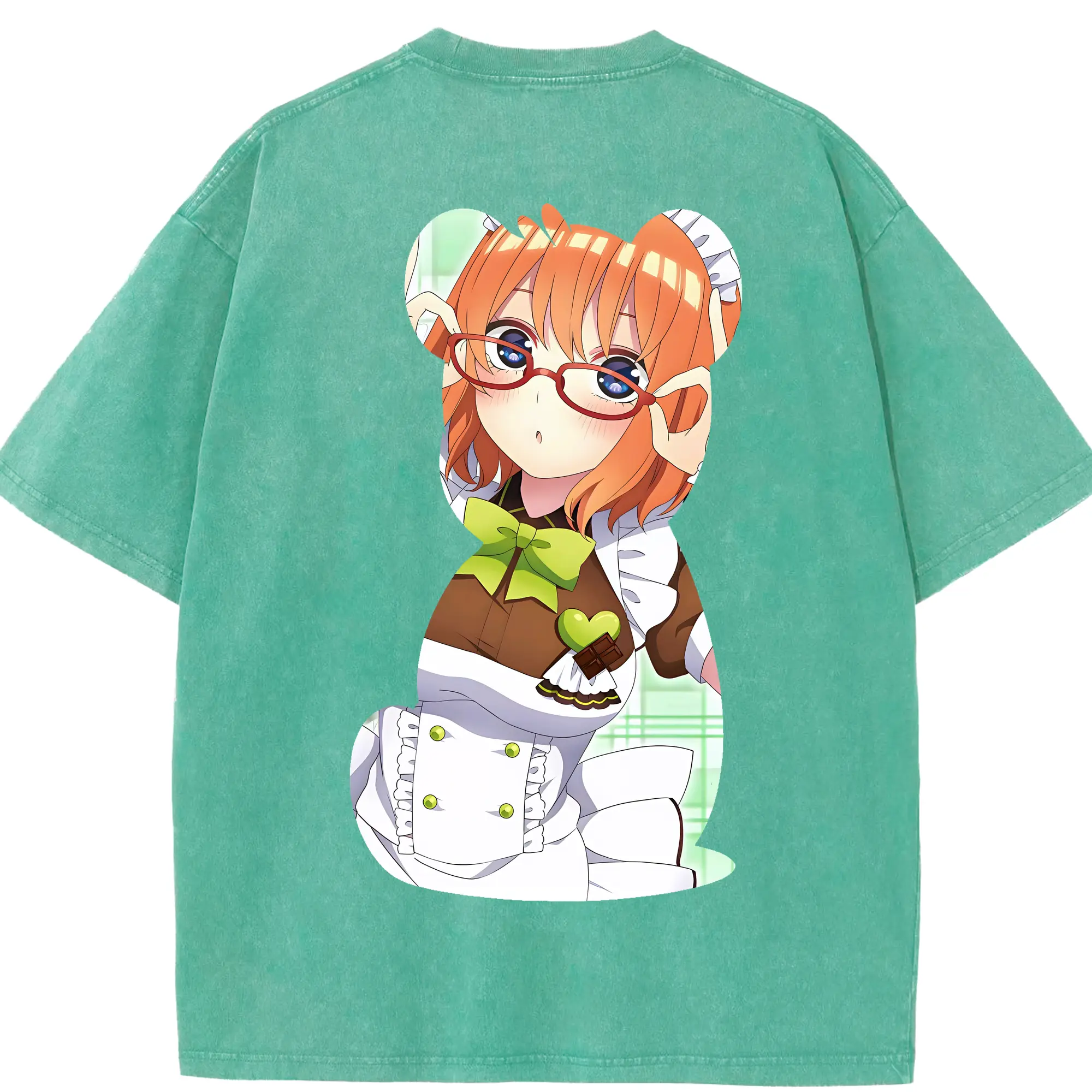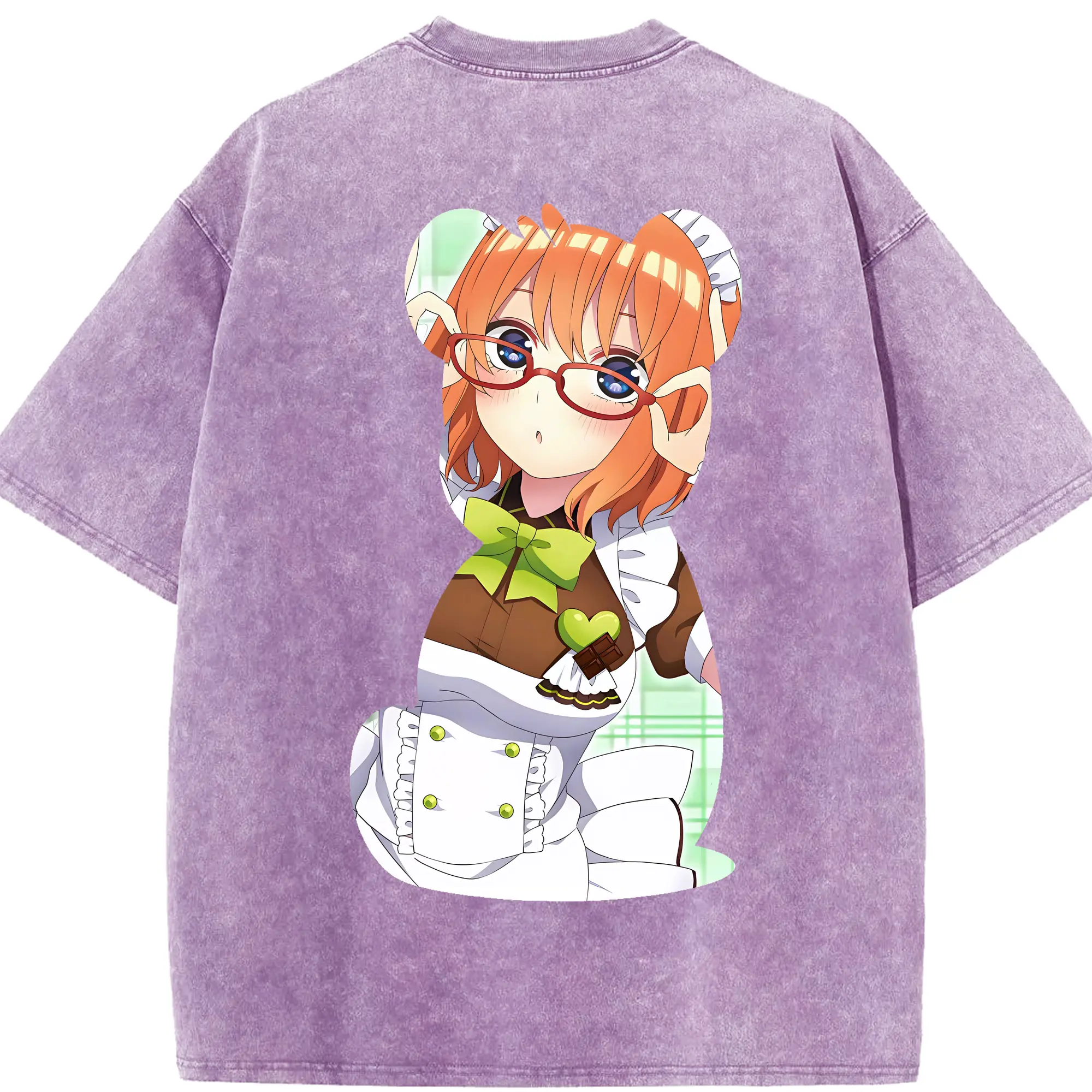 五等分の花嫁 グッズ 中野 四葉 - 綿100% ヴィンテージ風 半袖Tシャツ ・ フロントプリント ・ 柔らか肌触り ・ 通気性 快適 ・ スポーツ カジュアル 外出用