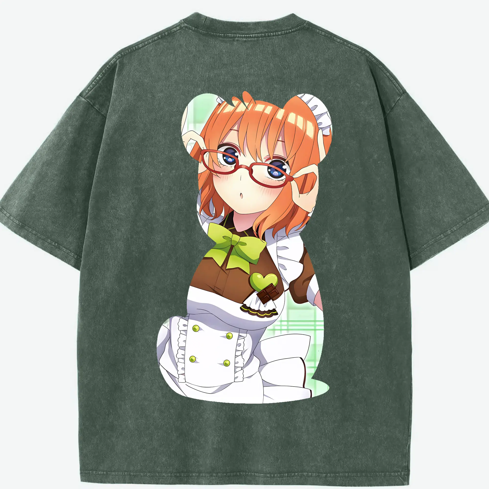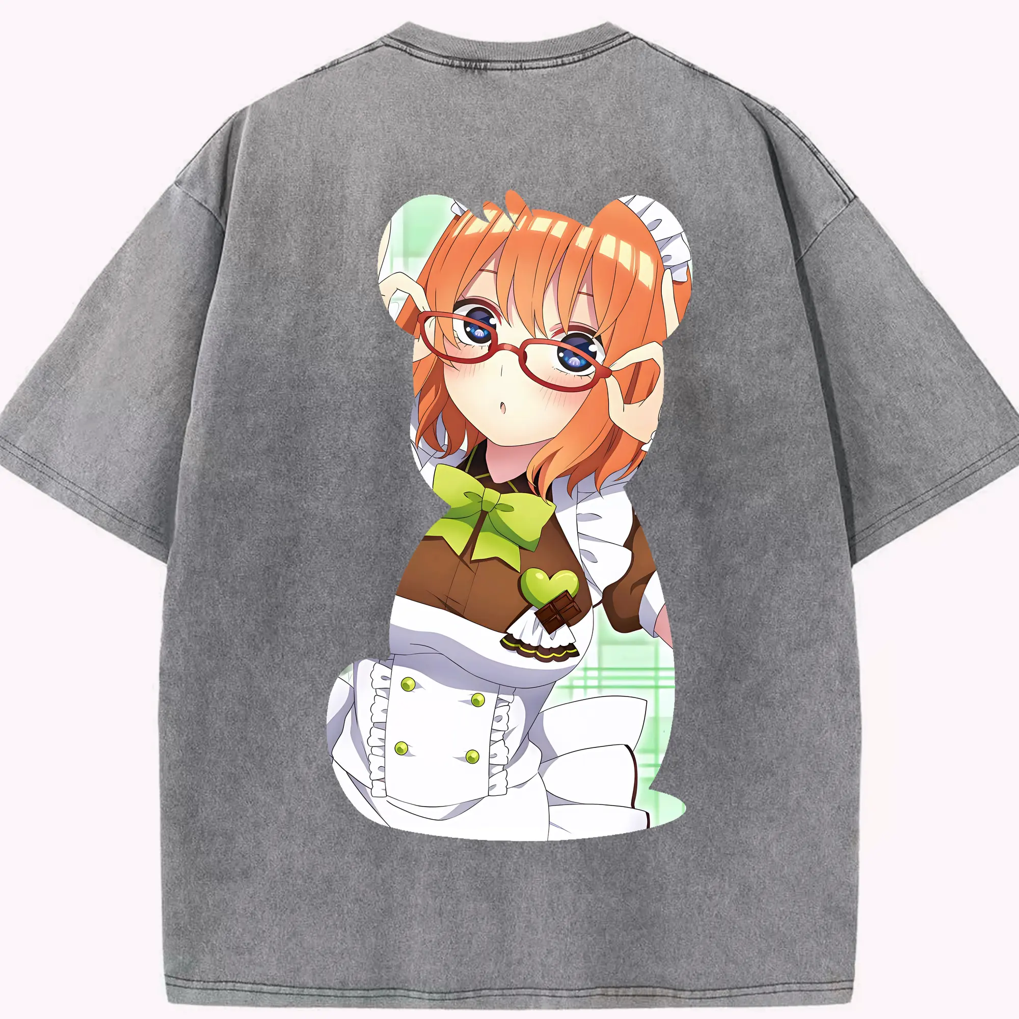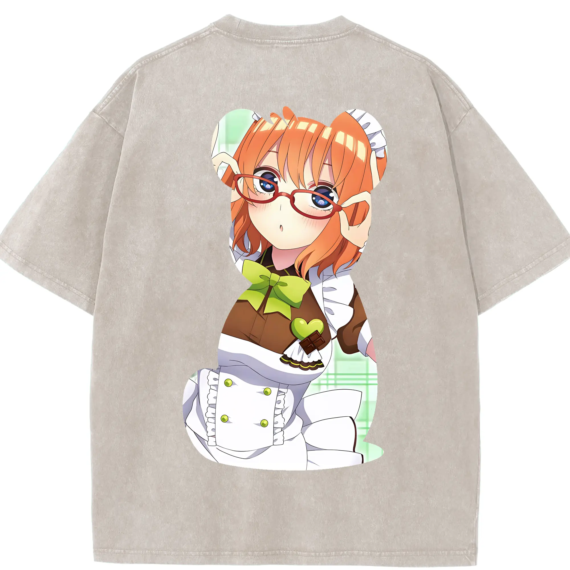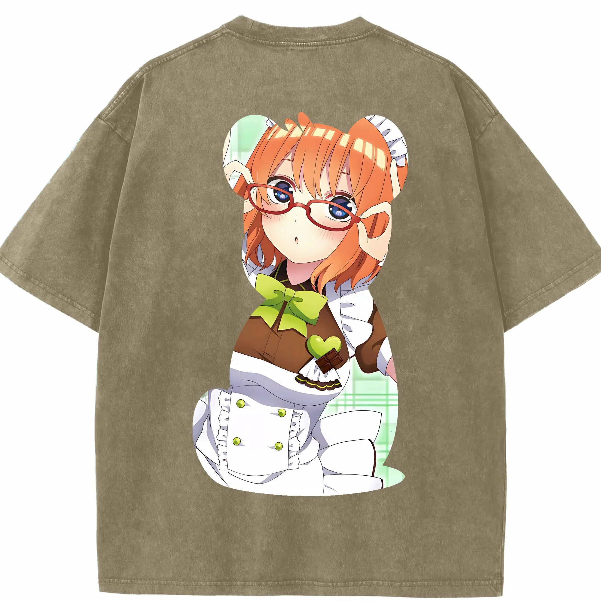 五等分の花嫁 グッズ 中野 四葉 - 綿100% ヴィンテージ風 半袖Tシャツ ・ フロントプリント ・ 柔らか肌触り ・ 通気性 快適 ・ スポーツ カジュアル 外出用