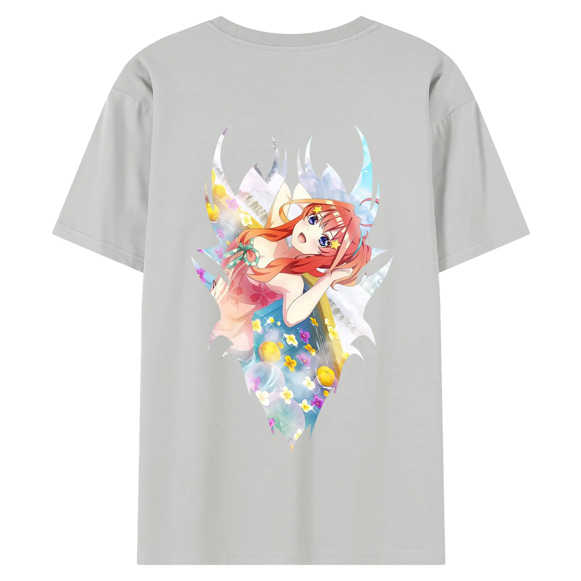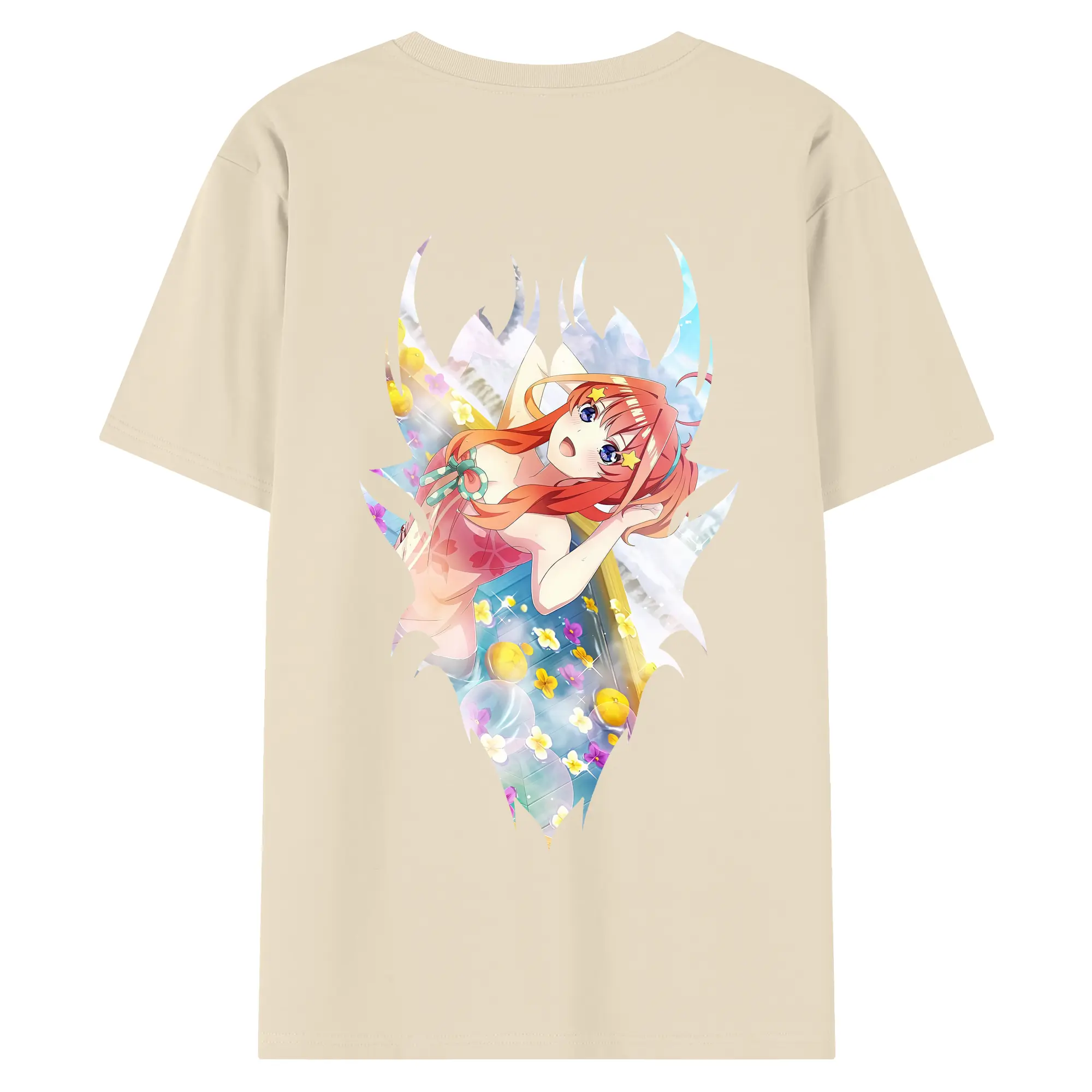 五等分の花嫁 グッズ 中野 五月 - 綿100% ヴィンテージ風 半袖Tシャツ ・ 背面プリント ・ 柔らか肌触り ・ 通気性 快適 ・ スポーツ カジュアル 外出用