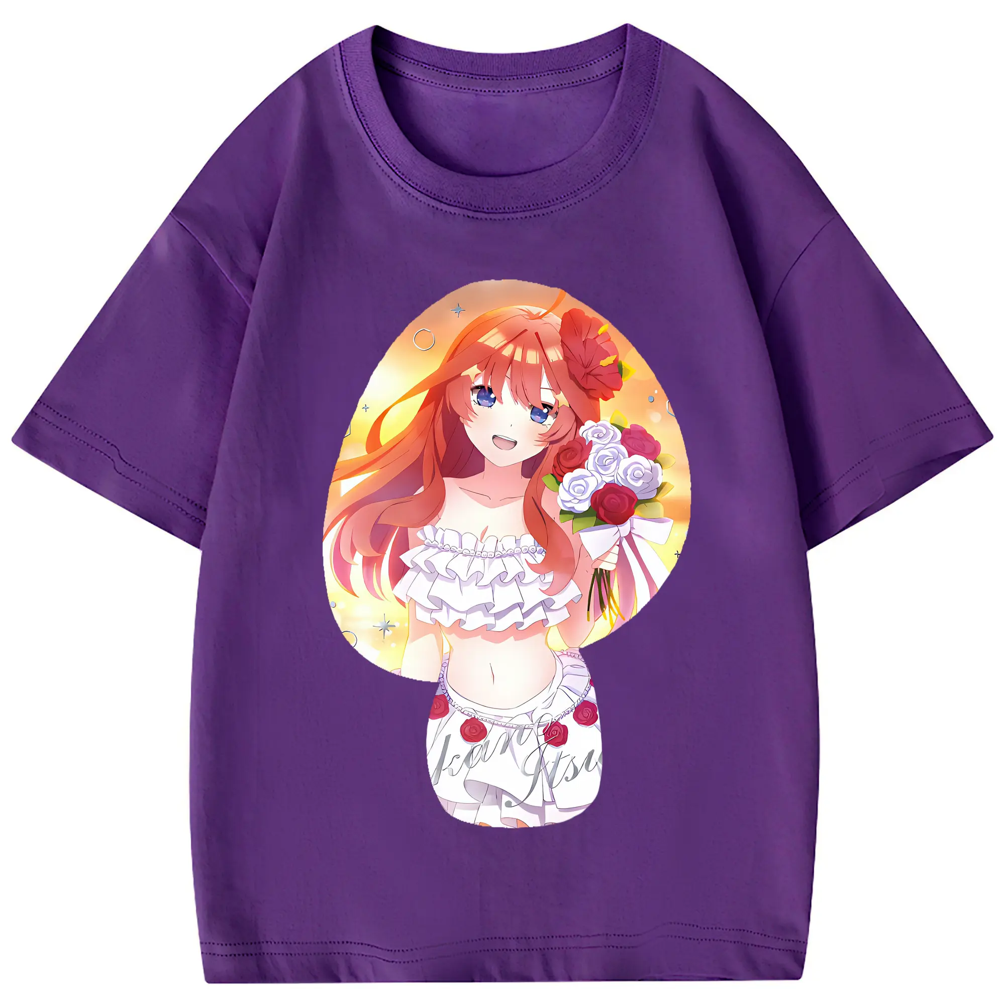 五等分の花嫁 グッズ 中野 五月 - 綿100% 半袖Tシャツ ・ フロントプリント ・ 快適 通気性 ・ 日常使い 散歩 スポーツ用