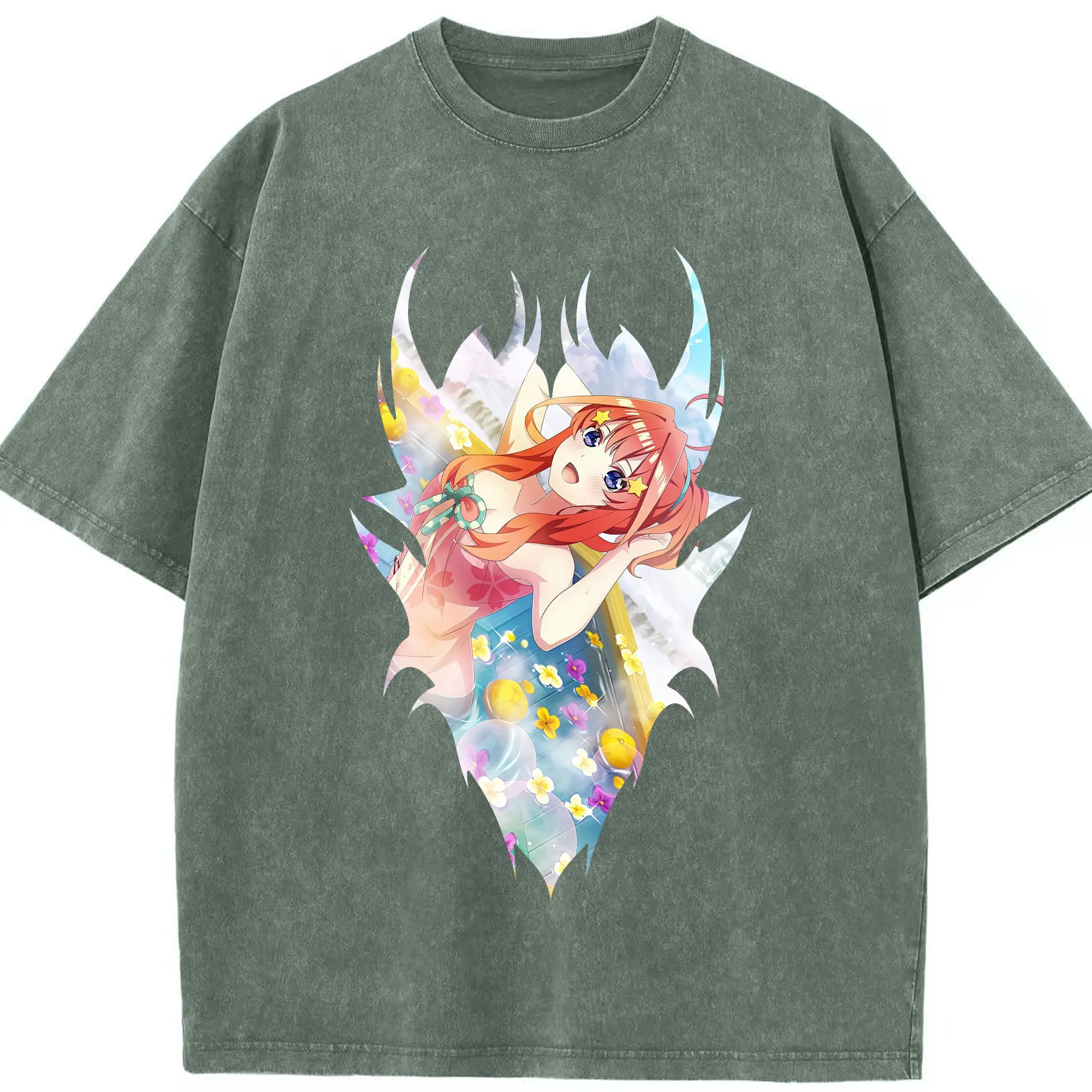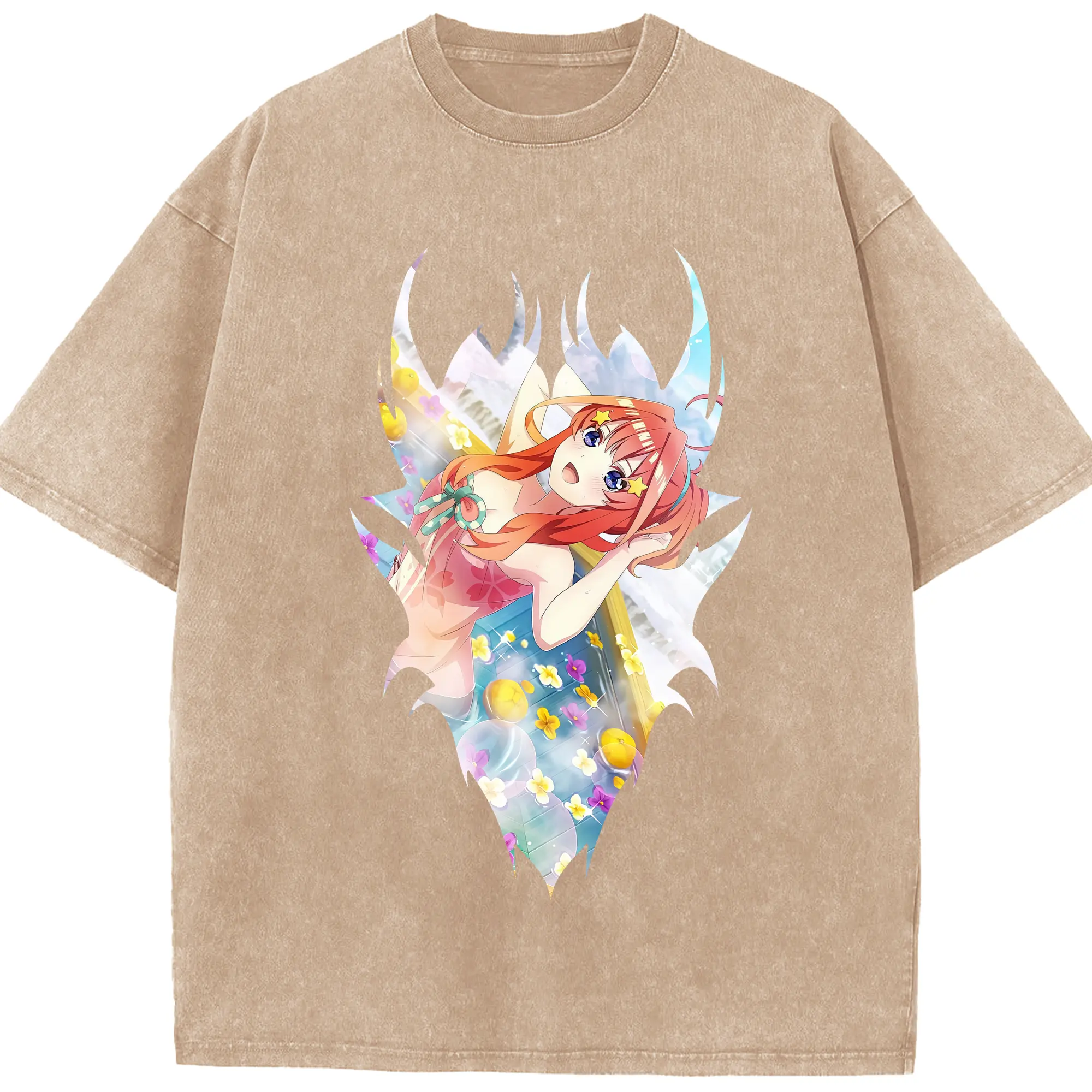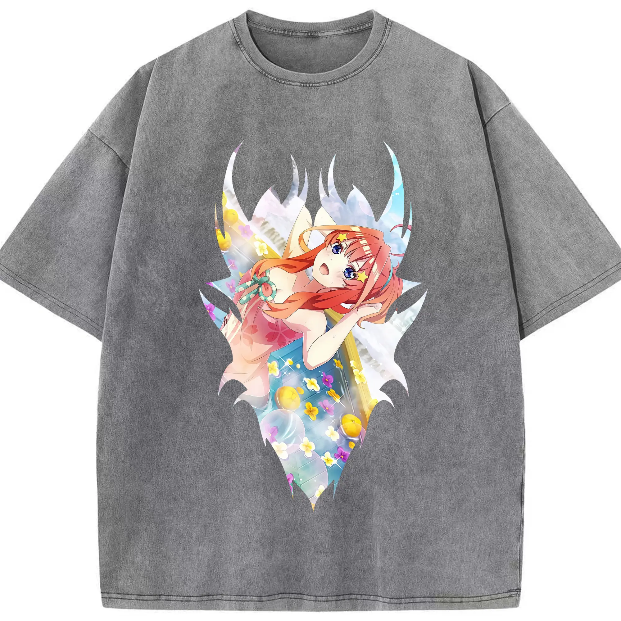五等分の花嫁 グッズ 中野 五月 - 綿100% ヴィンテージ風 半袖Tシャツ ・ 背面プリント ・ 柔らか肌触り ・ 通気性 快適 ・ スポーツ カジュアル 外出用