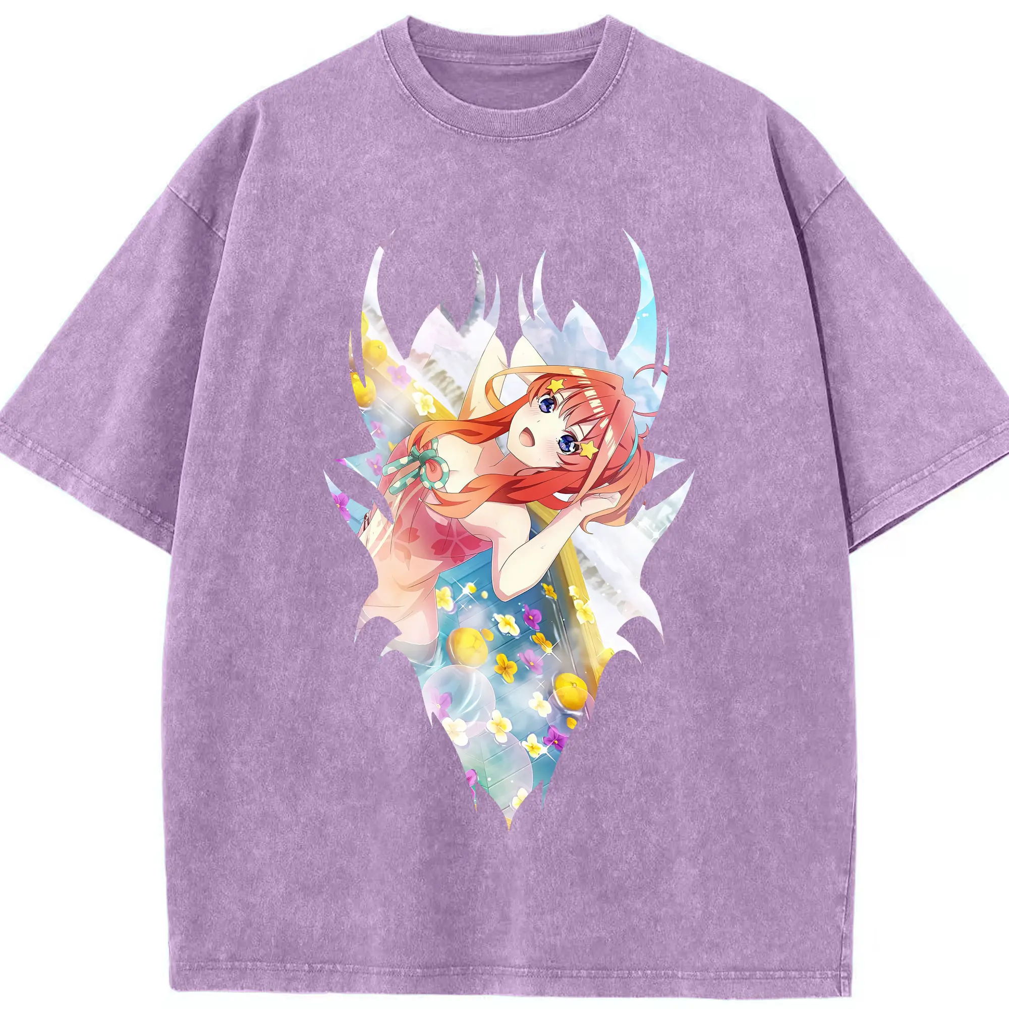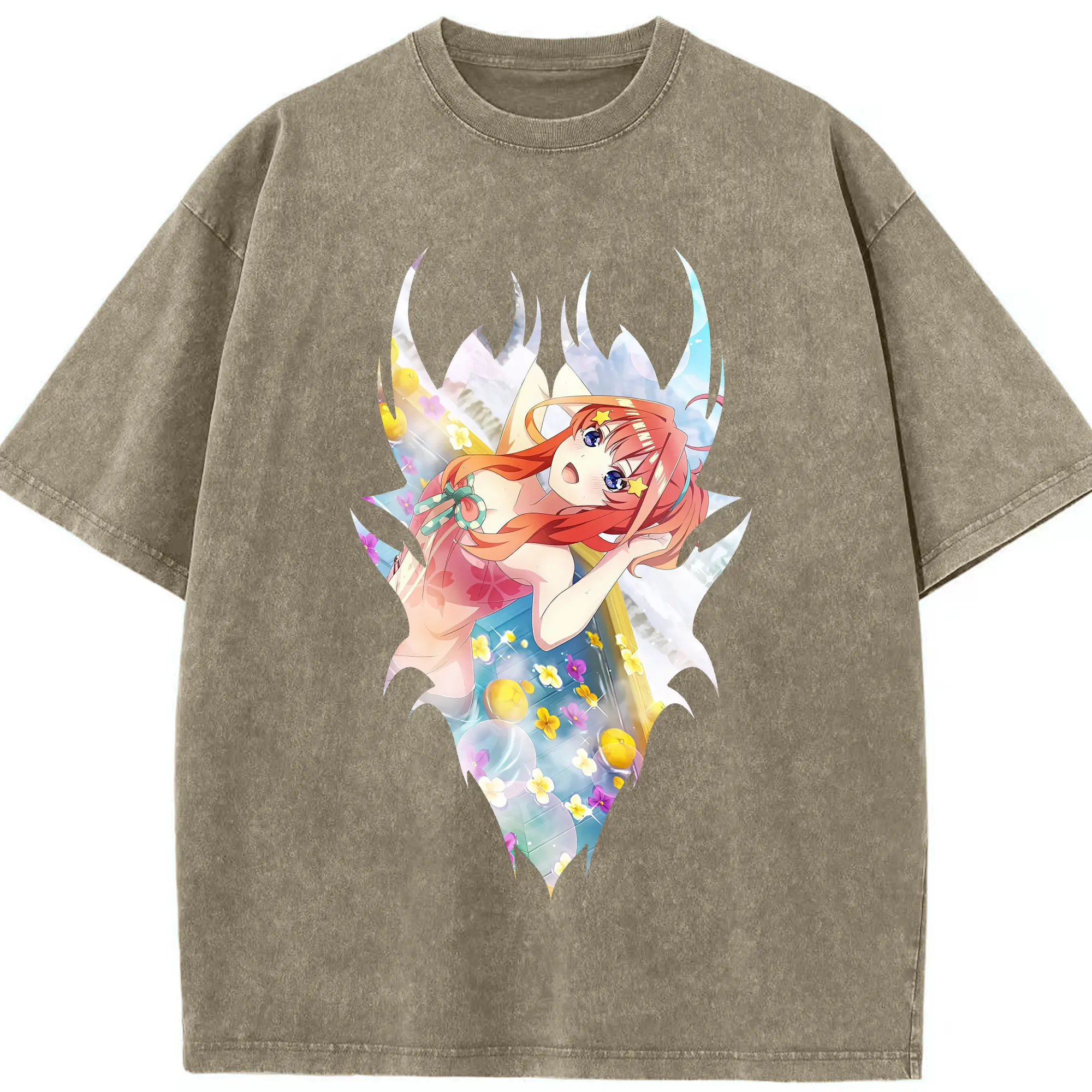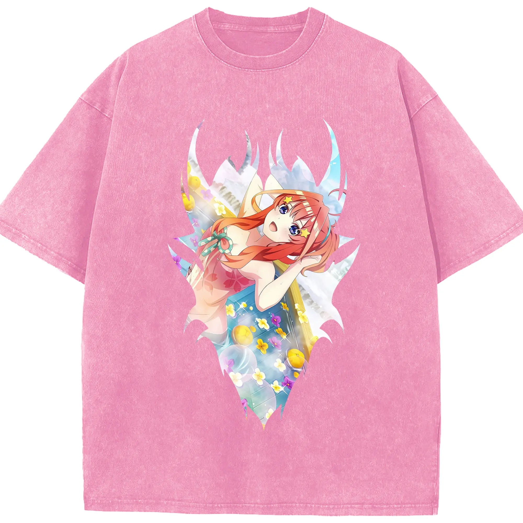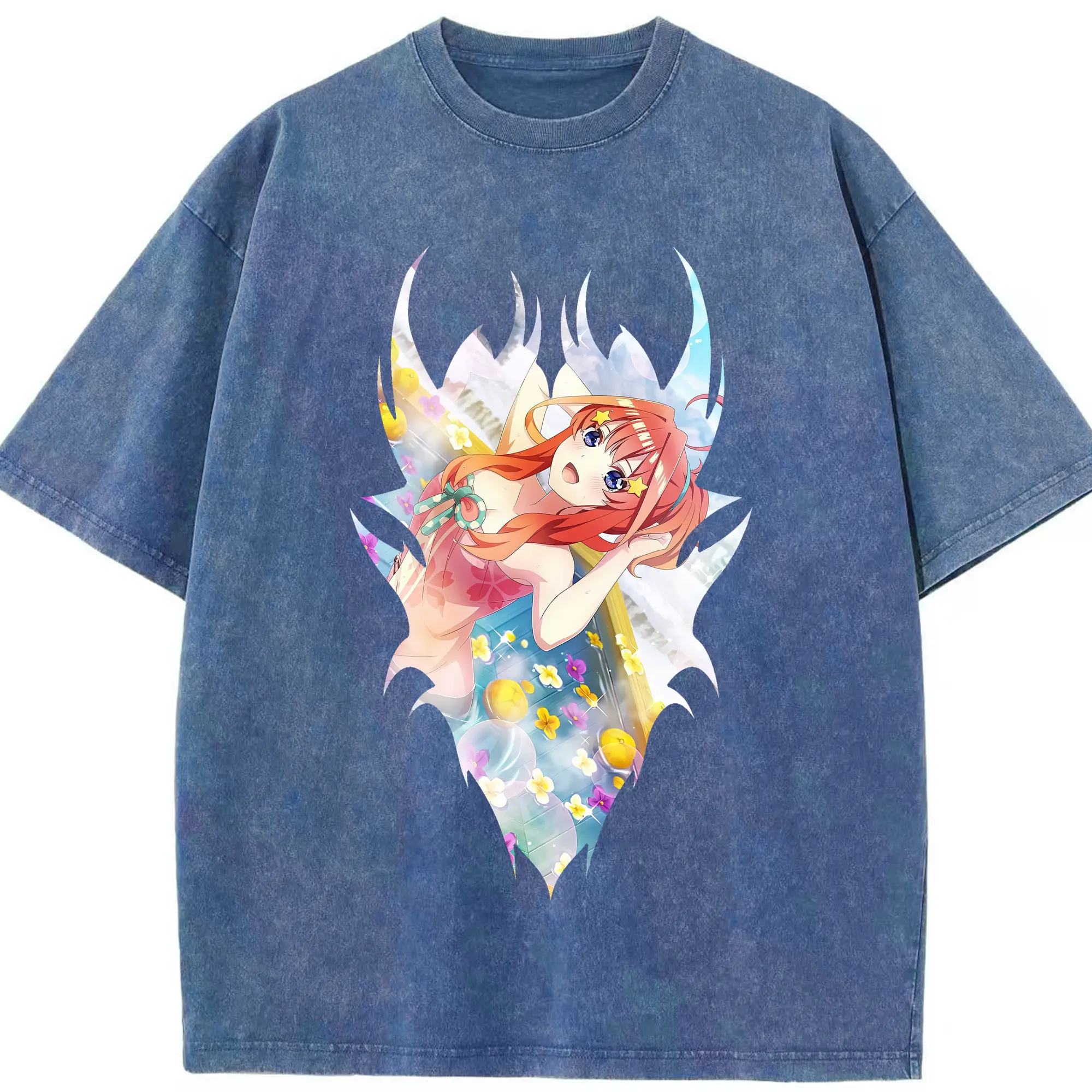 五等分の花嫁 グッズ 中野 五月 - 綿100% ヴィンテージ風 半袖Tシャツ ・ 背面プリント ・ 柔らか肌触り ・ 通気性 快適 ・ スポーツ カジュアル 外出用