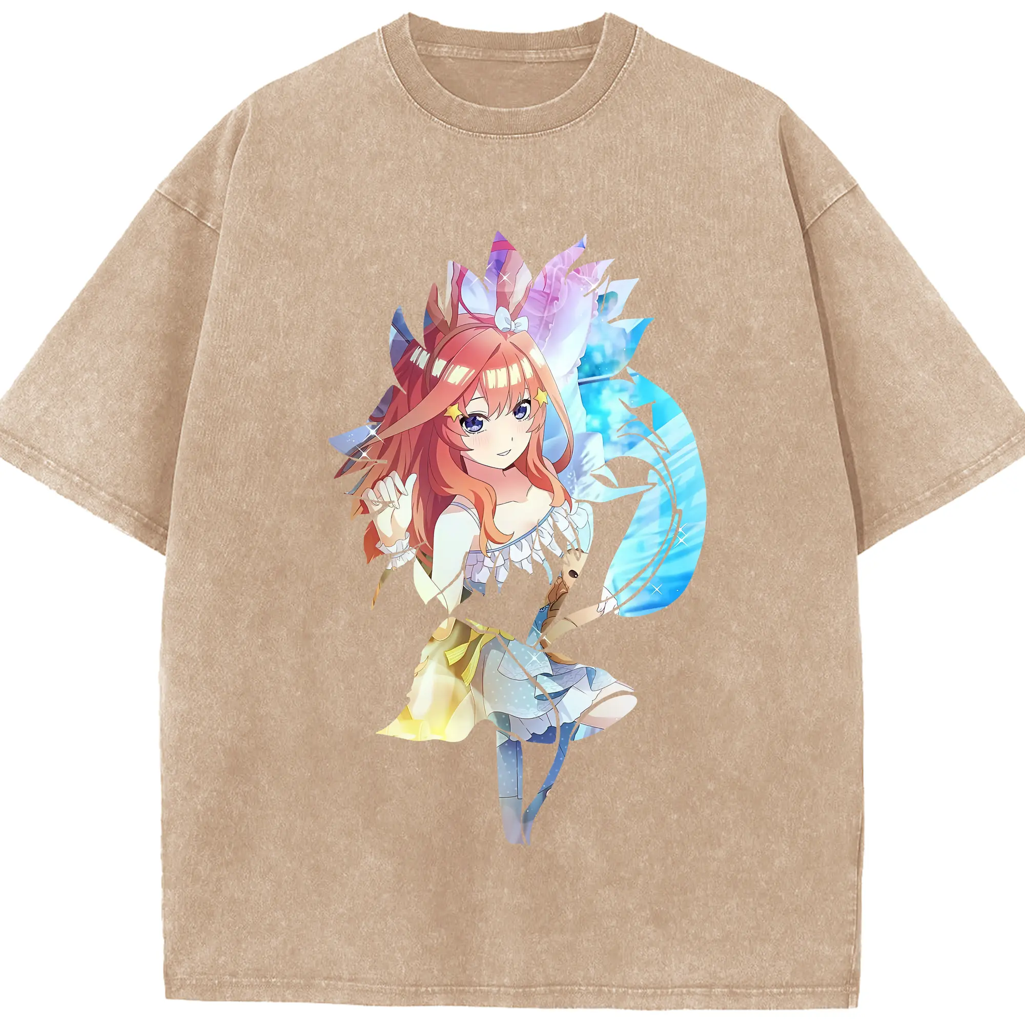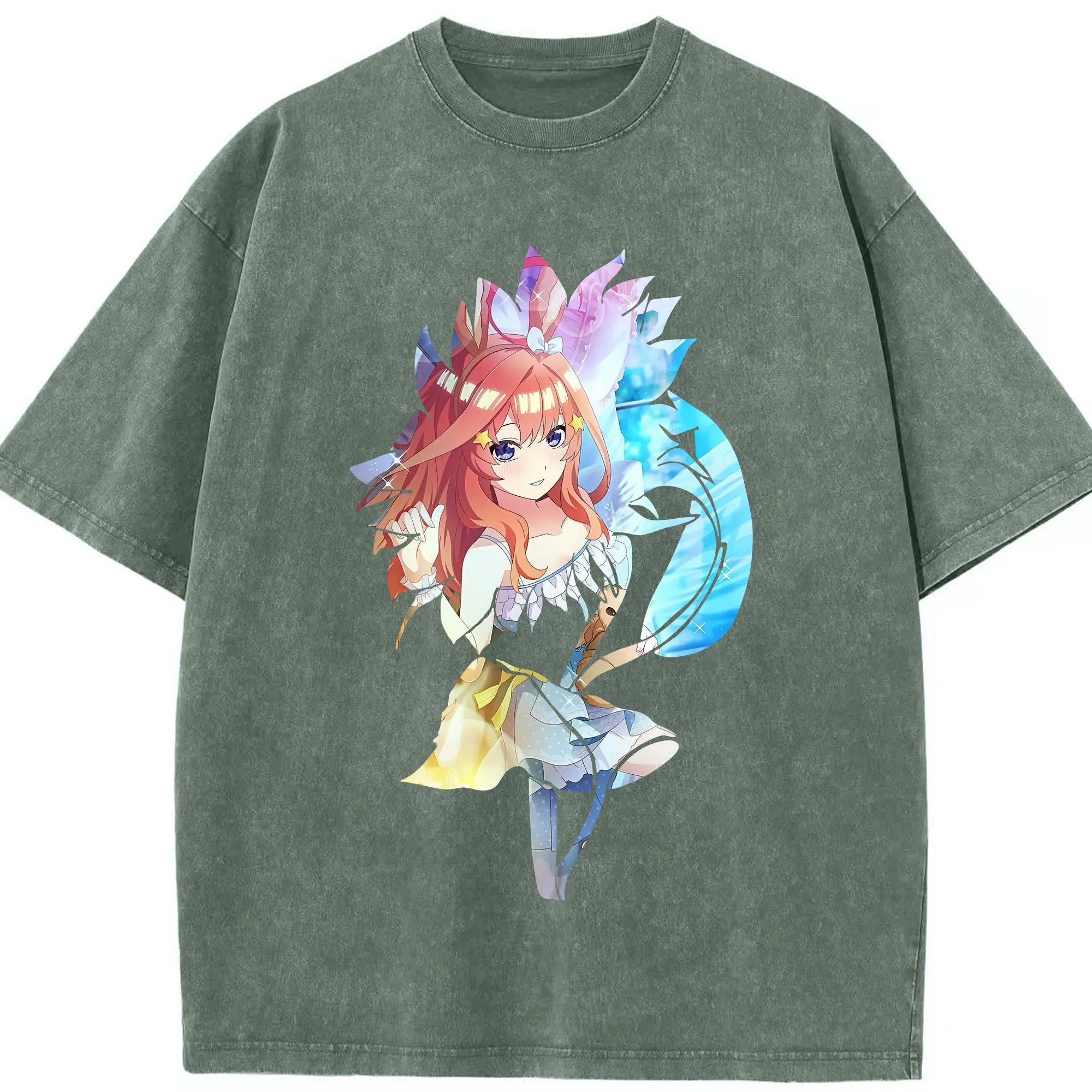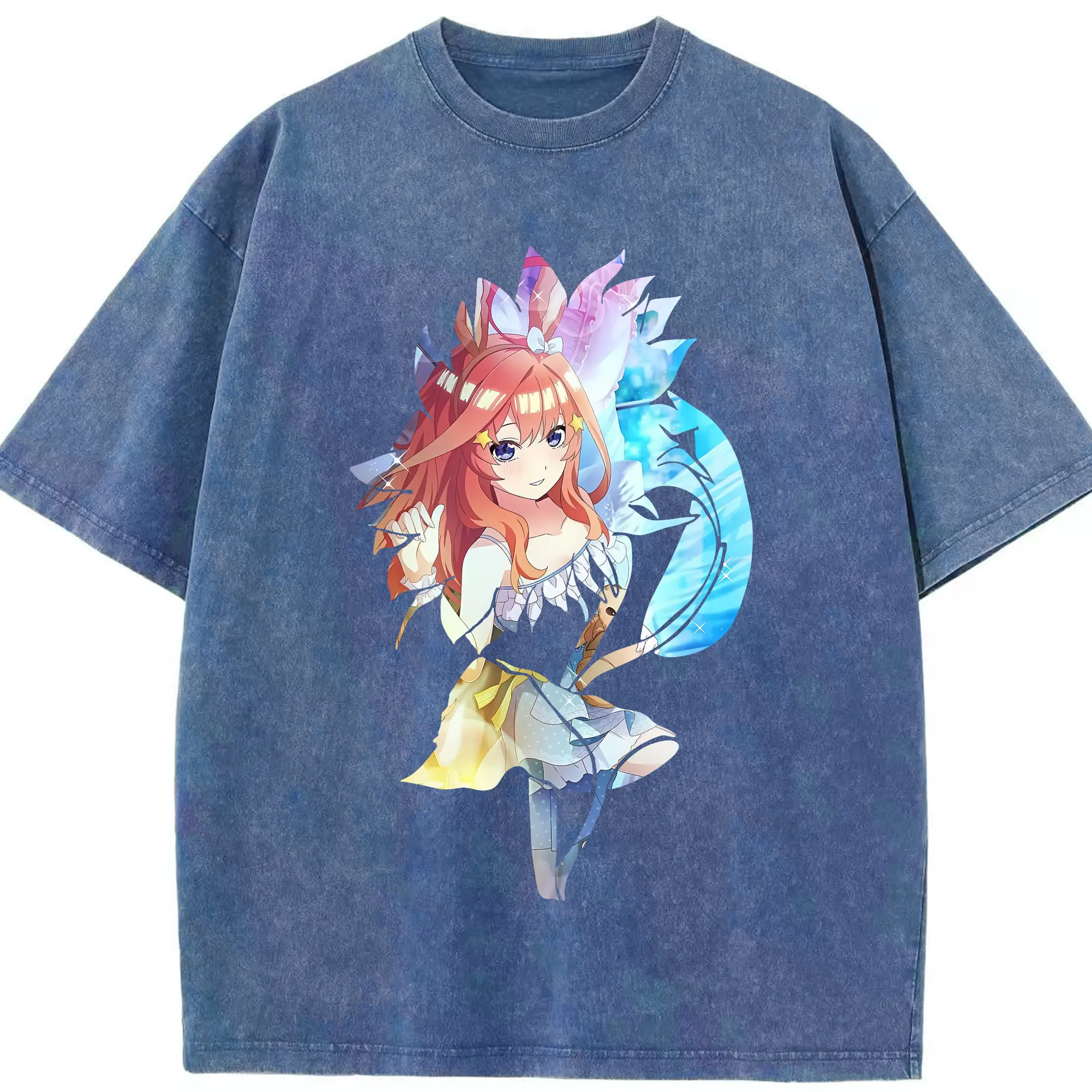 五等分の花嫁 グッズ 中野 五月 - 綿100% ヴィンテージ風 半袖Tシャツ ・ 背面プリント ・ 柔らか肌触り ・ 通気性 快適 ・ スポーツ カジュアル 外出用