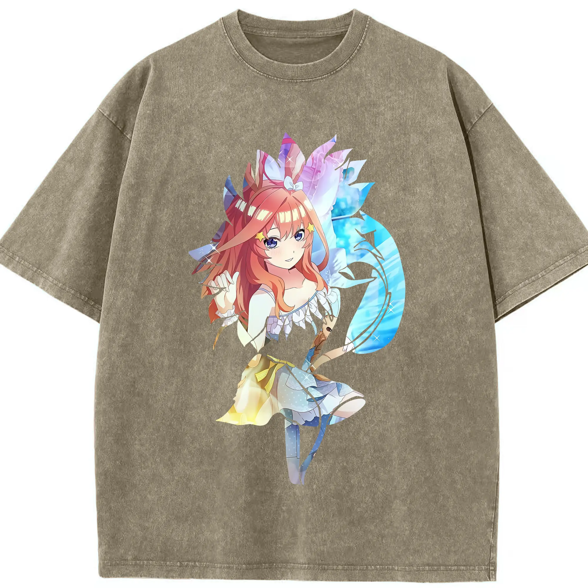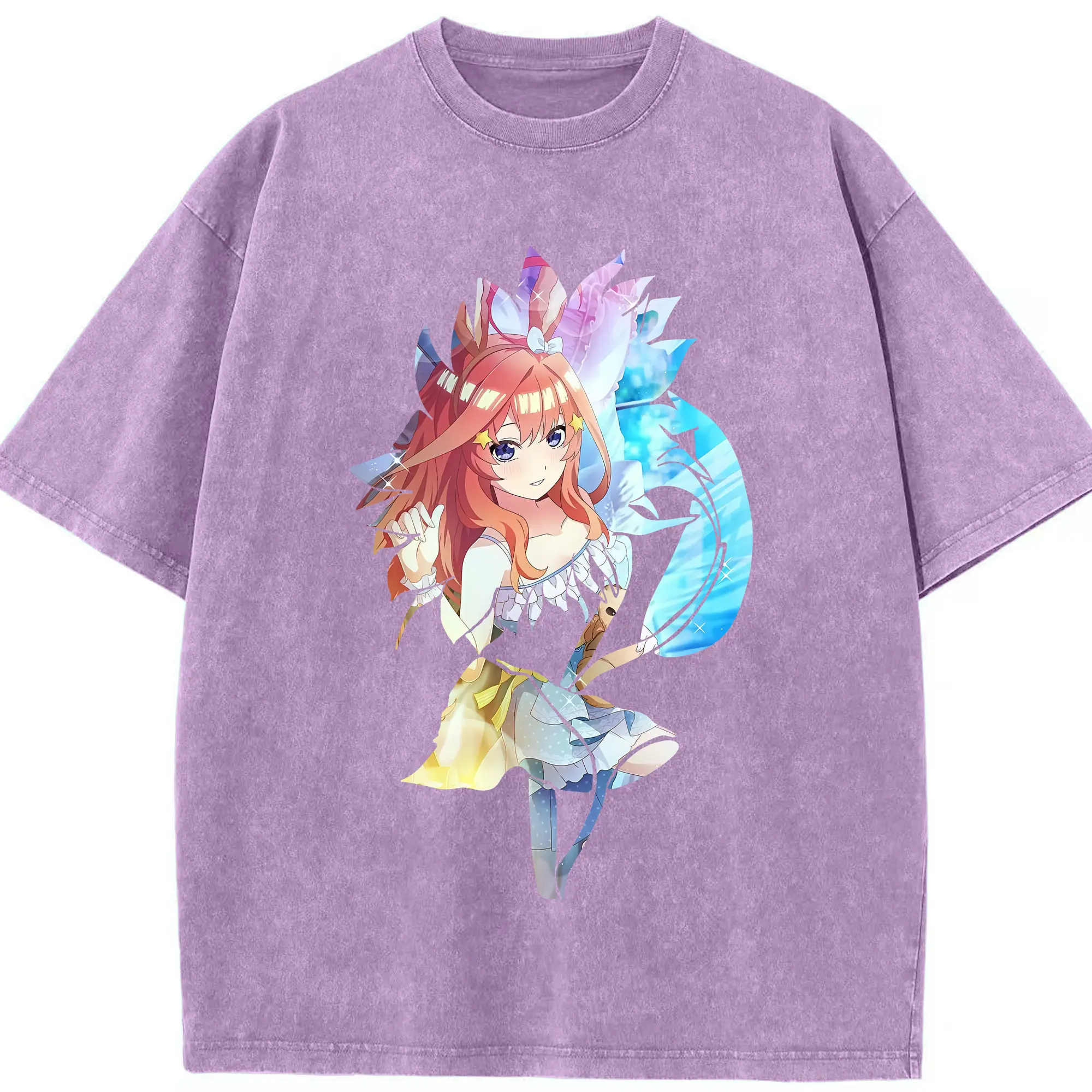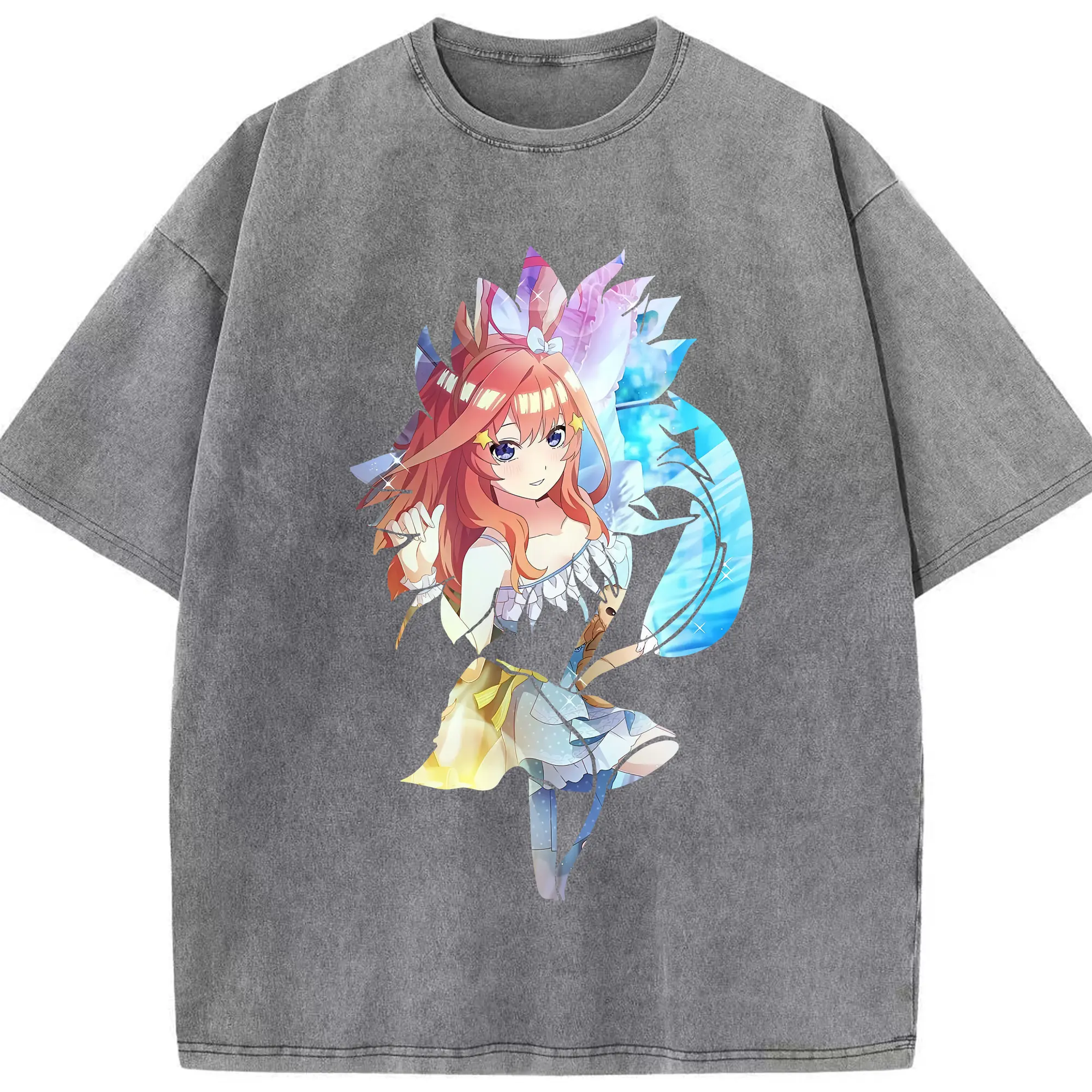 五等分の花嫁 グッズ 中野 五月 - 綿100% ヴィンテージ風 半袖Tシャツ ・ 背面プリント ・ 柔らか肌触り ・ 通気性 快適 ・ スポーツ カジュアル 外出用