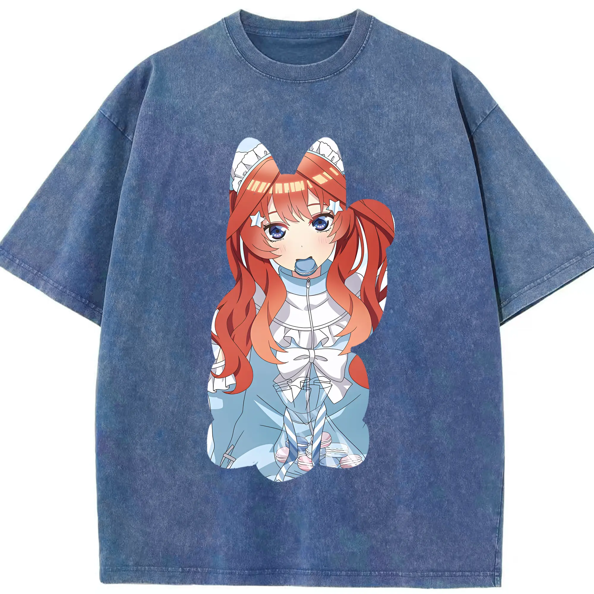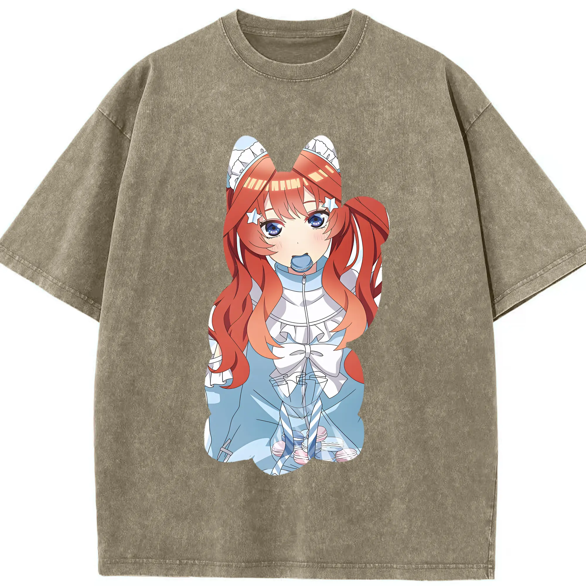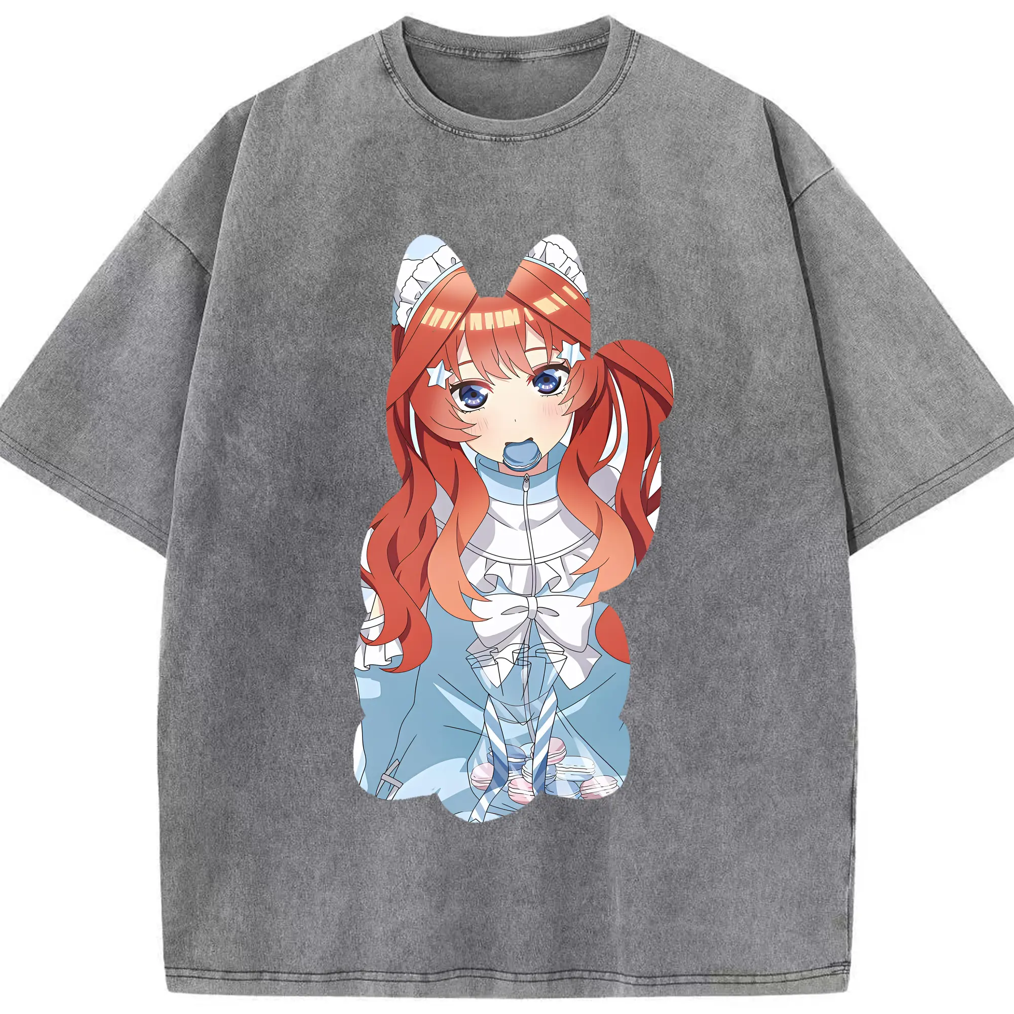 五等分の花嫁 グッズ 中野 五月 - 綿100% ヴィンテージ風 半袖Tシャツ ・ 背面プリント ・ 柔らか肌触り ・ 通気性 快適 ・ スポーツ カジュアル 外出用