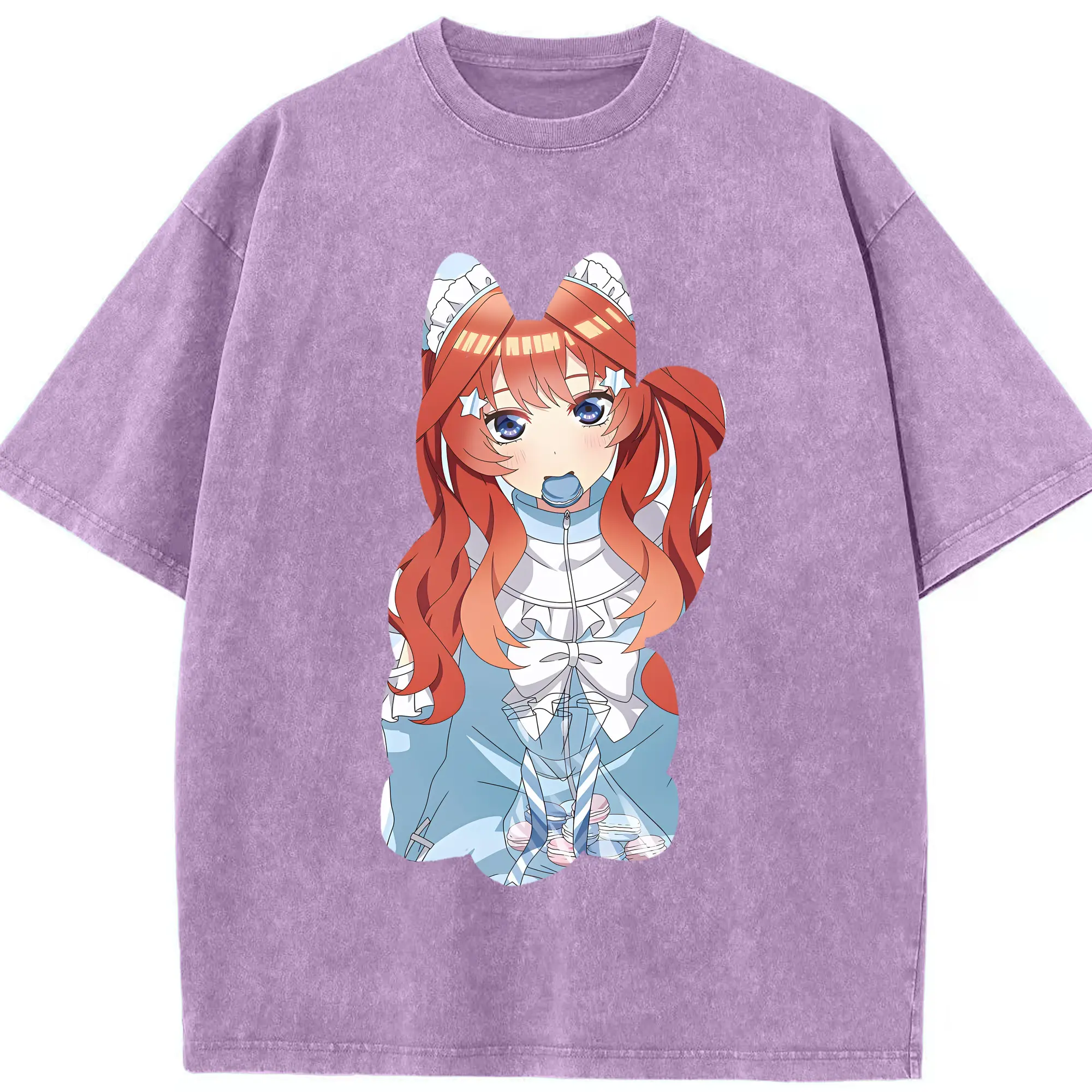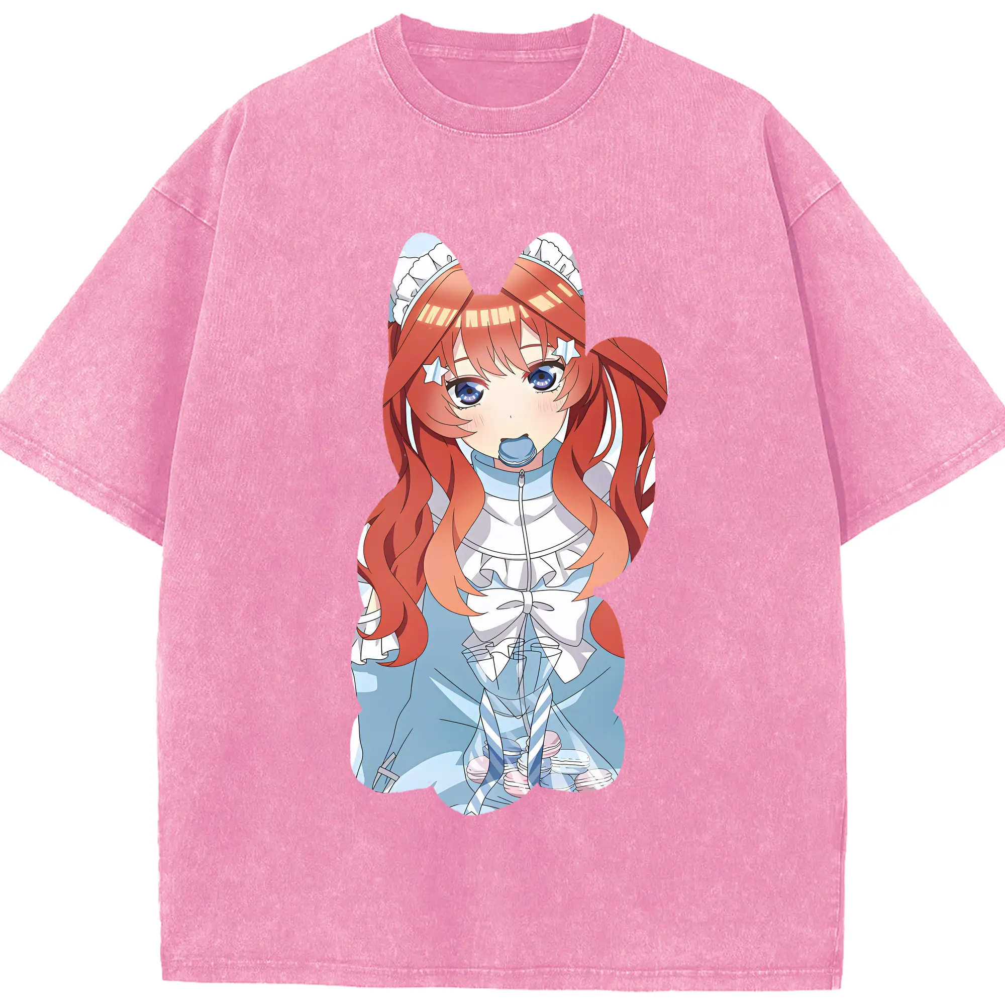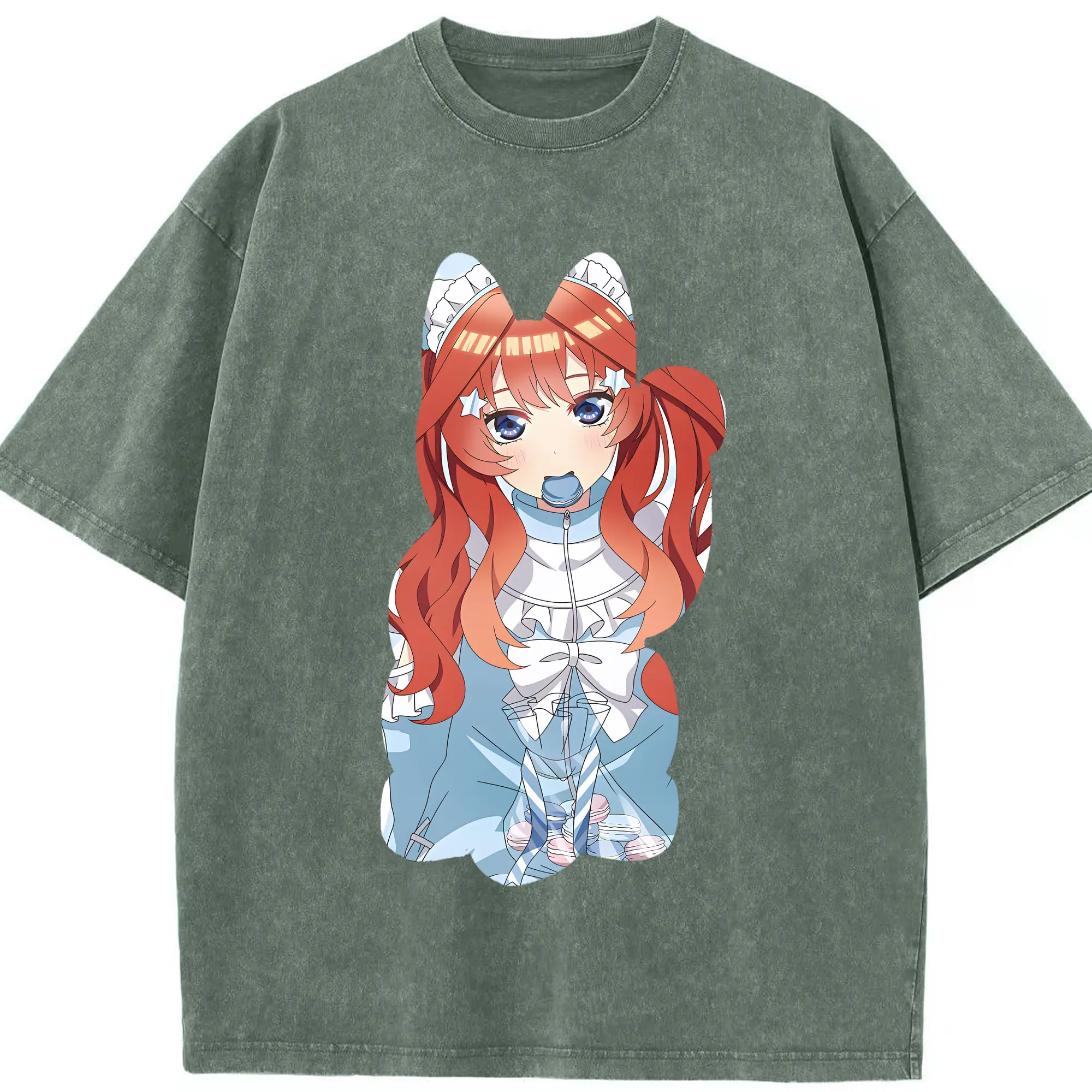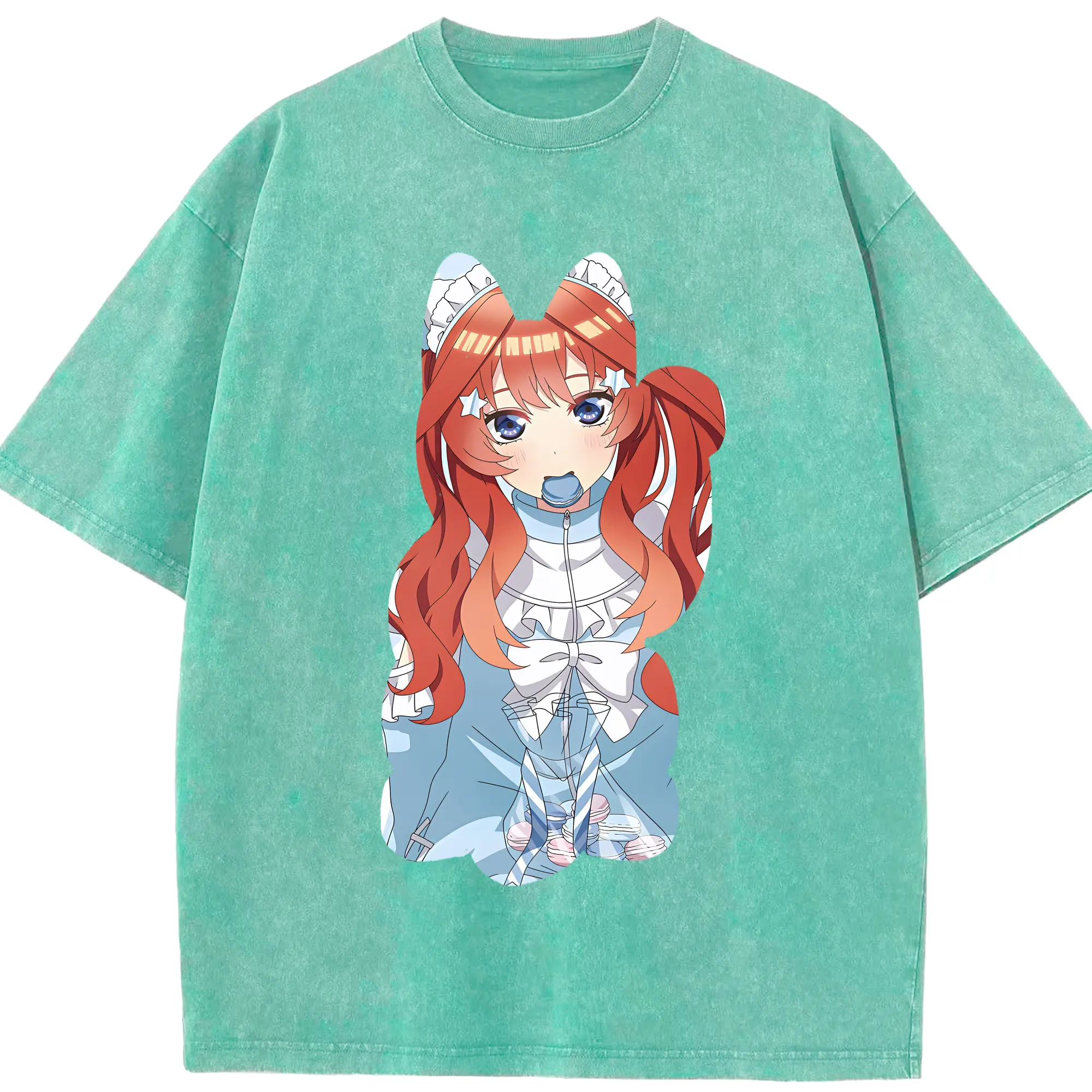 五等分の花嫁 グッズ 中野 五月 - 綿100% ヴィンテージ風 半袖Tシャツ ・ 背面プリント ・ 柔らか肌触り ・ 通気性 快適 ・ スポーツ カジュアル 外出用