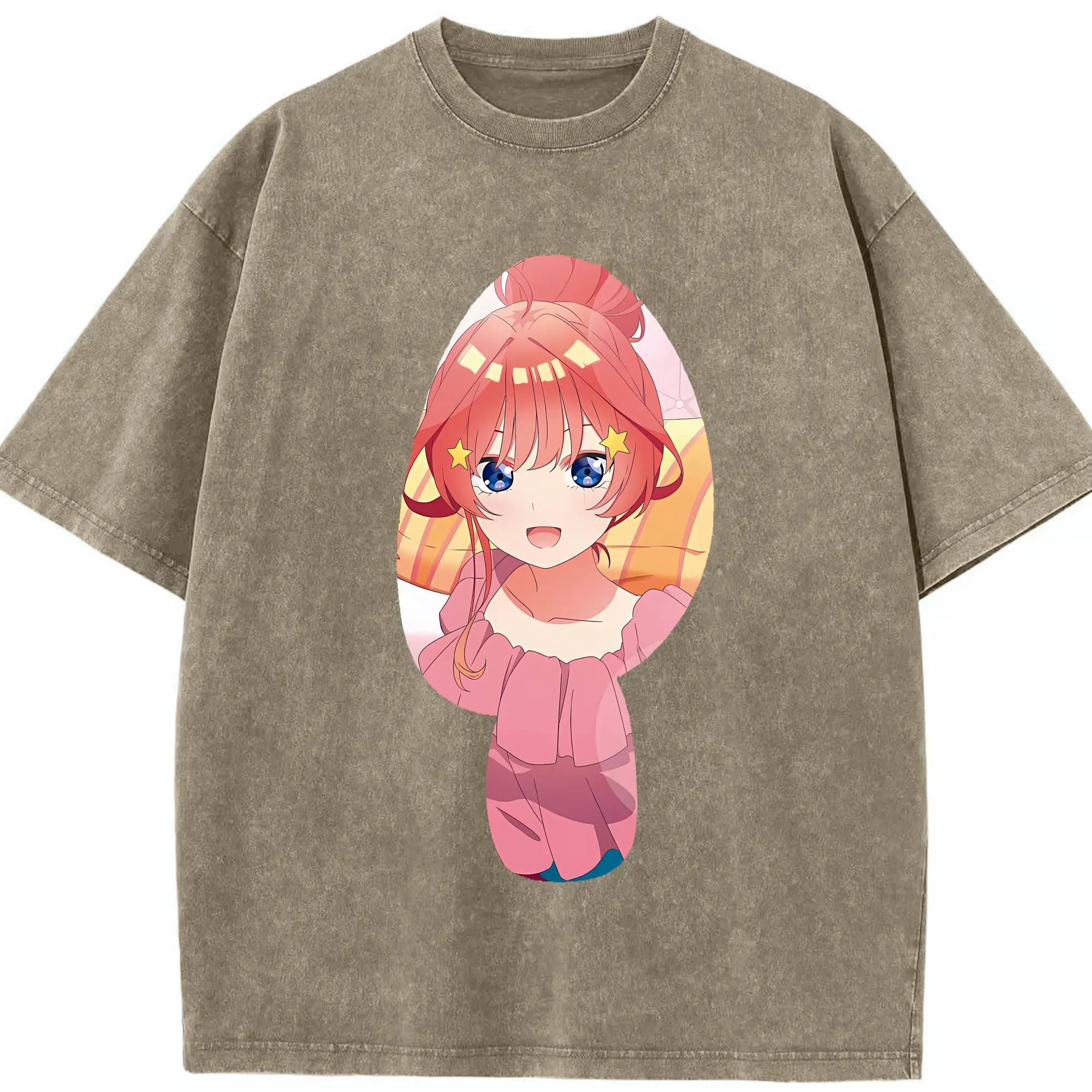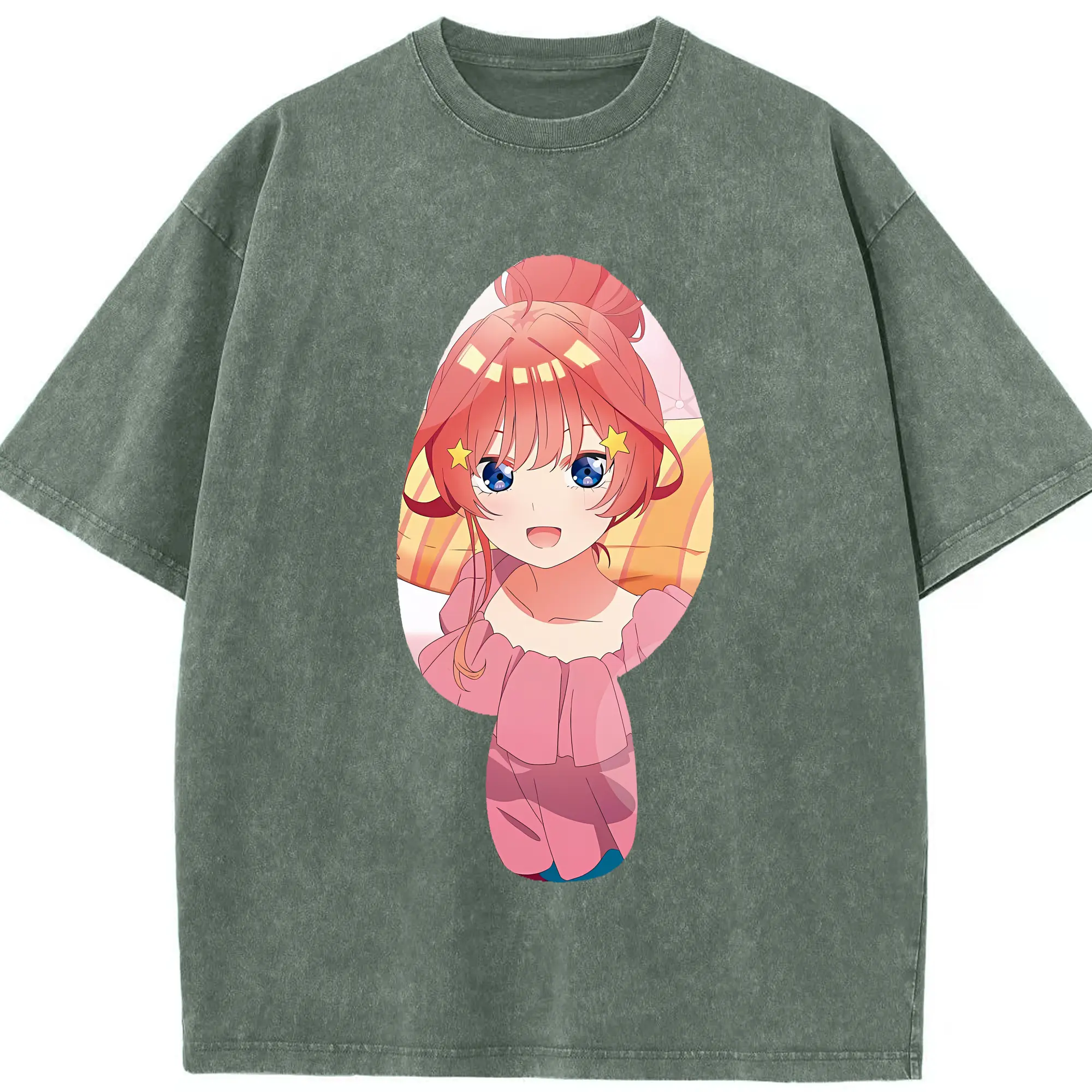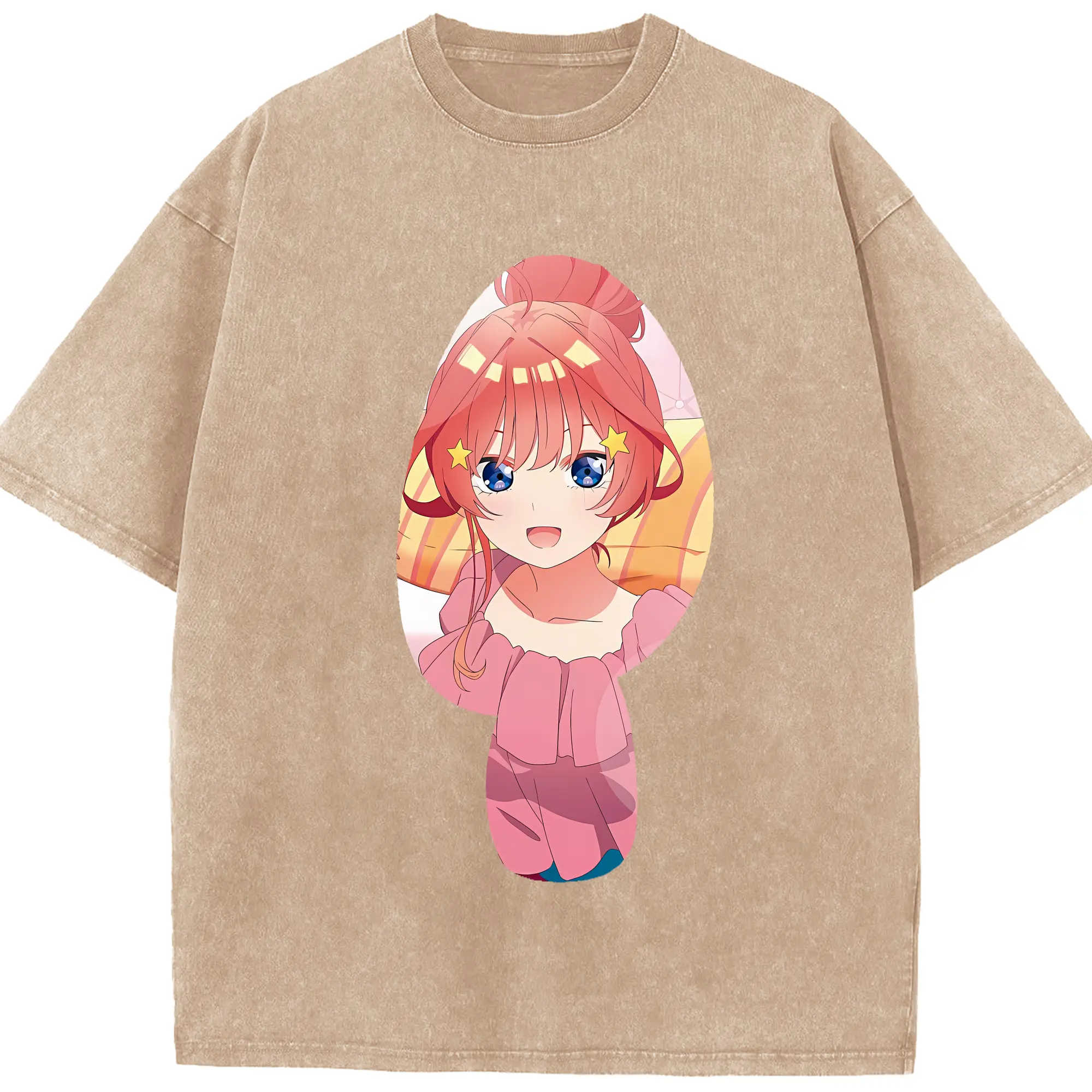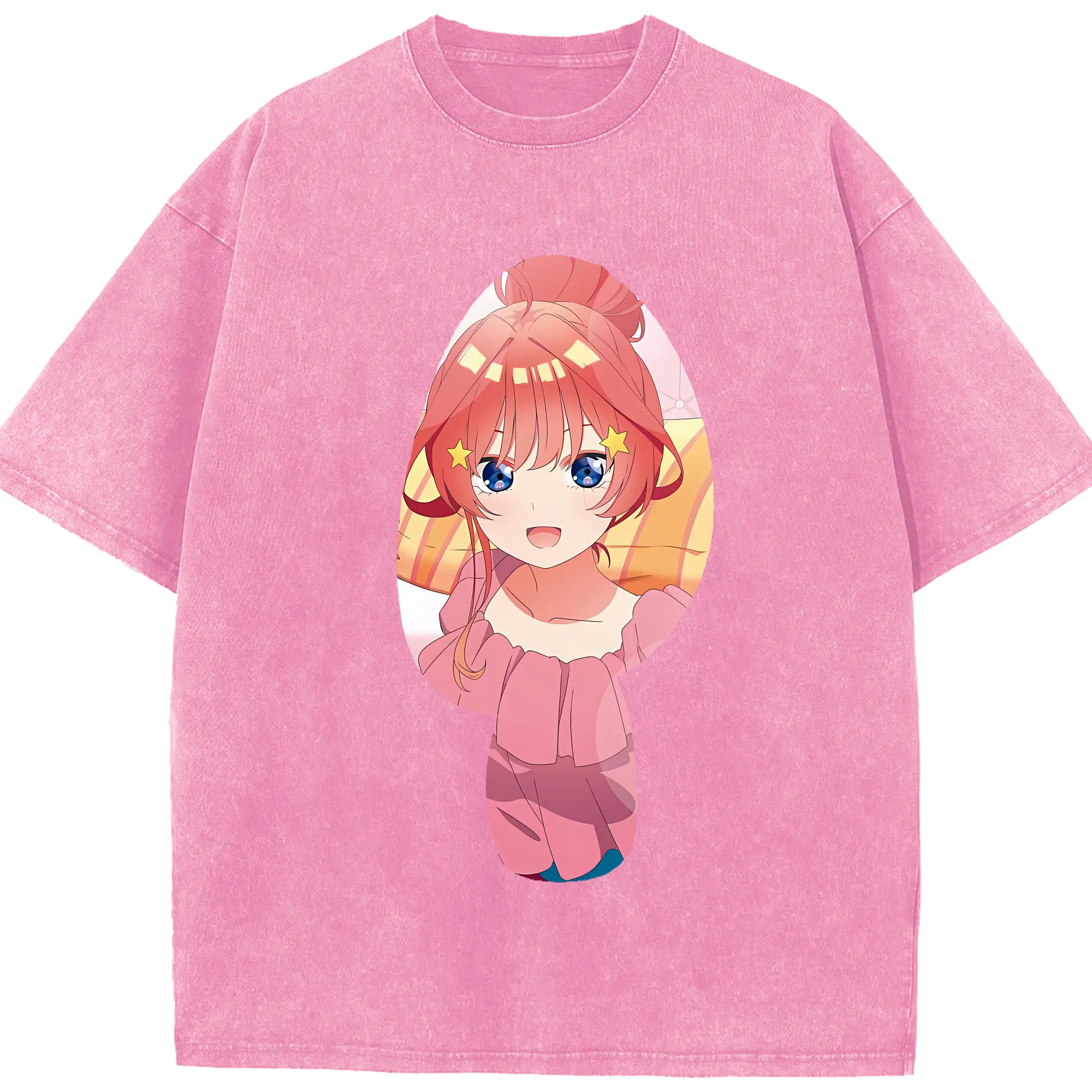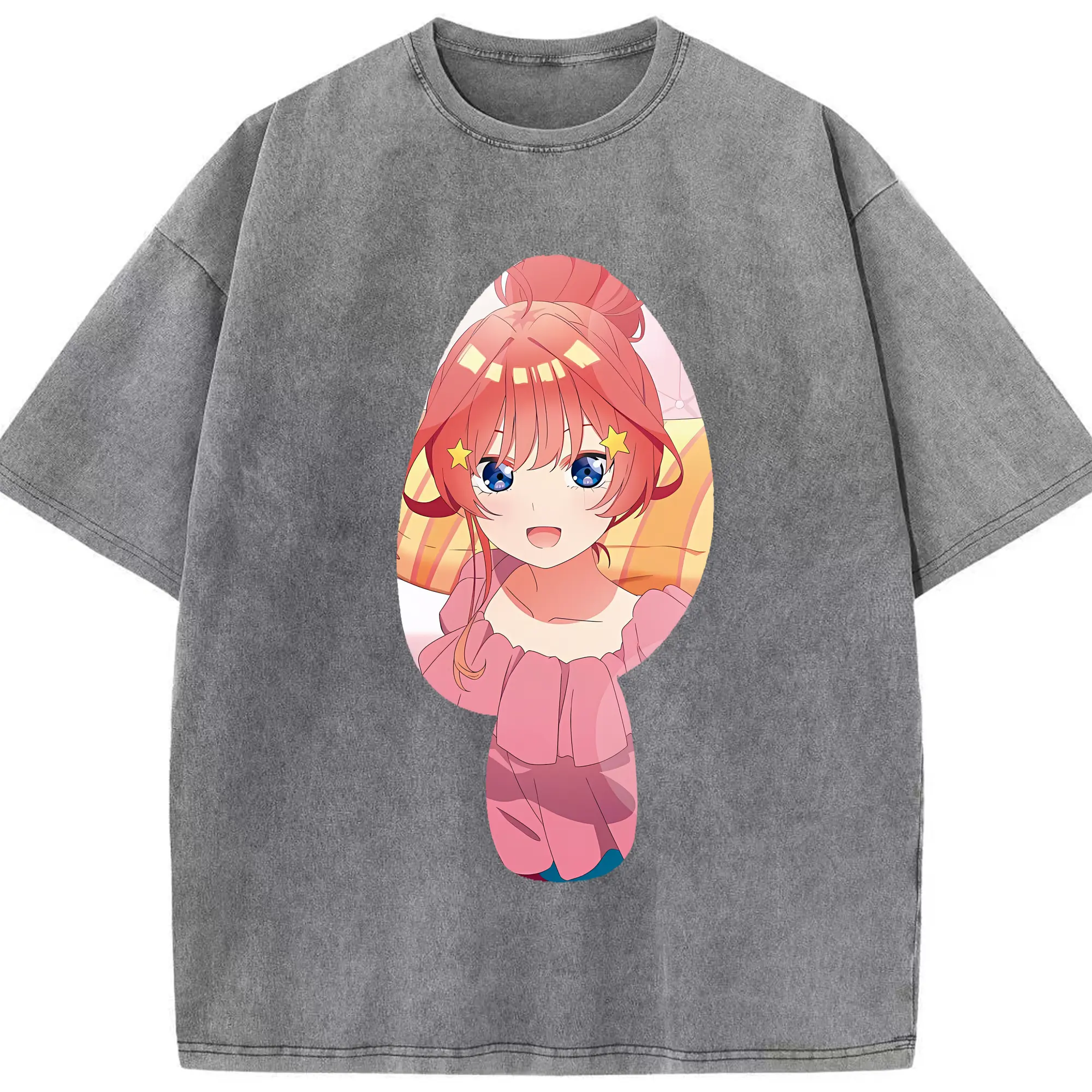 五等分の花嫁 グッズ 中野 五月 - 綿100% ヴィンテージ風 半袖Tシャツ ・ 背面プリント ・ 柔らか肌触り ・ 通気性 快適 ・ スポーツ カジュアル 外出用