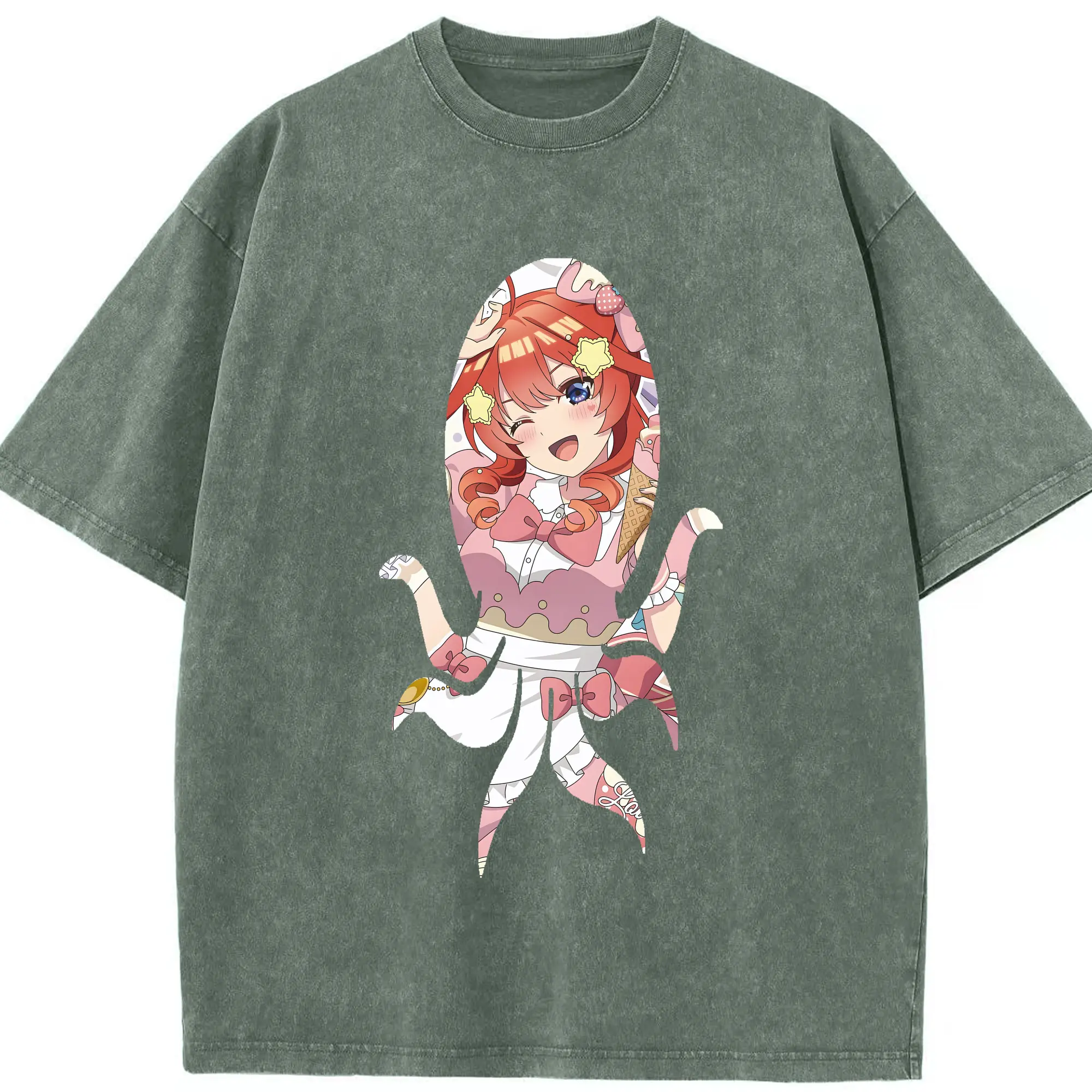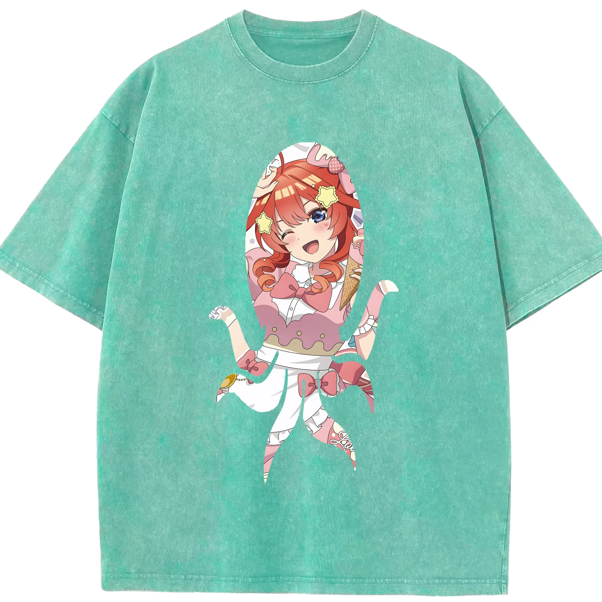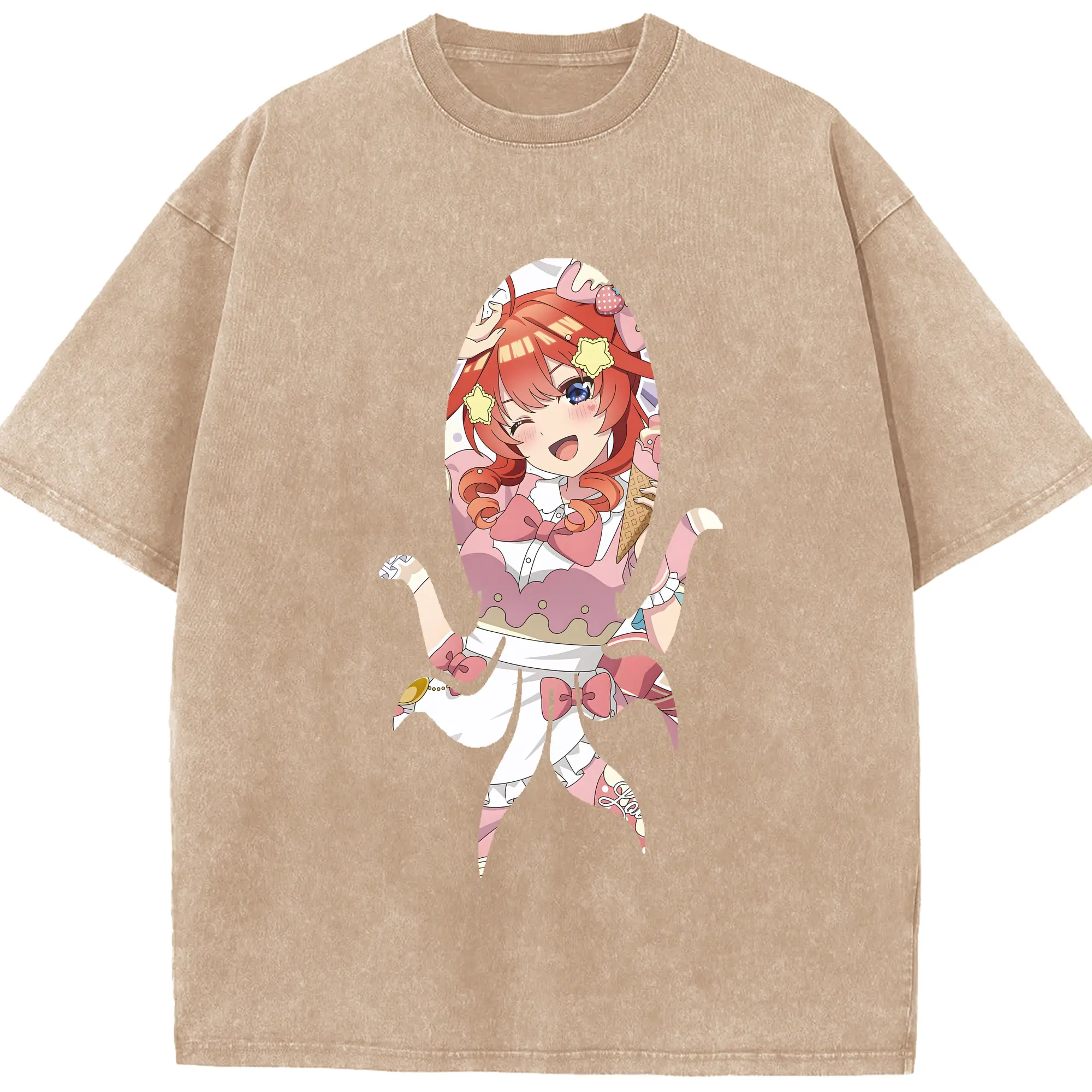 五等分の花嫁 グッズ 中野 二乃 - 綿100% ヴィンテージ風 半袖Tシャツ ・ フロントプリント ・ 柔らか肌触り ・ 通気性 快適 ・ スポーツ カジュアル 外出用