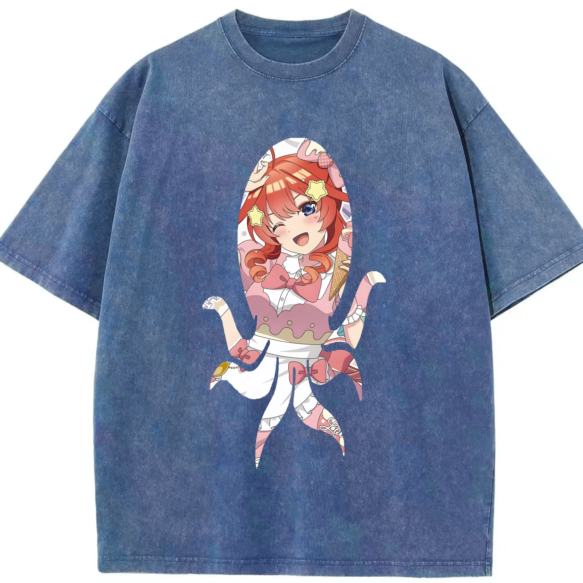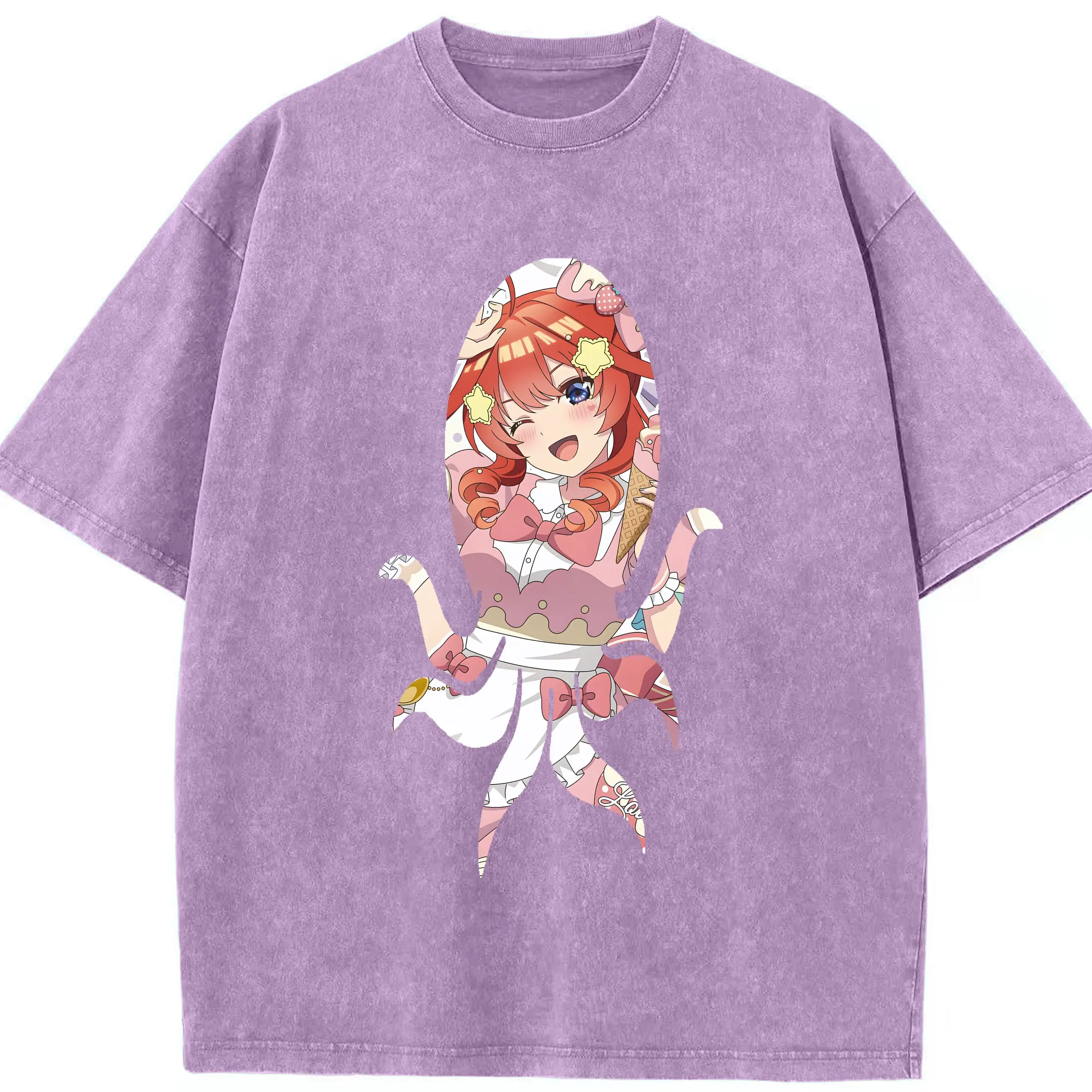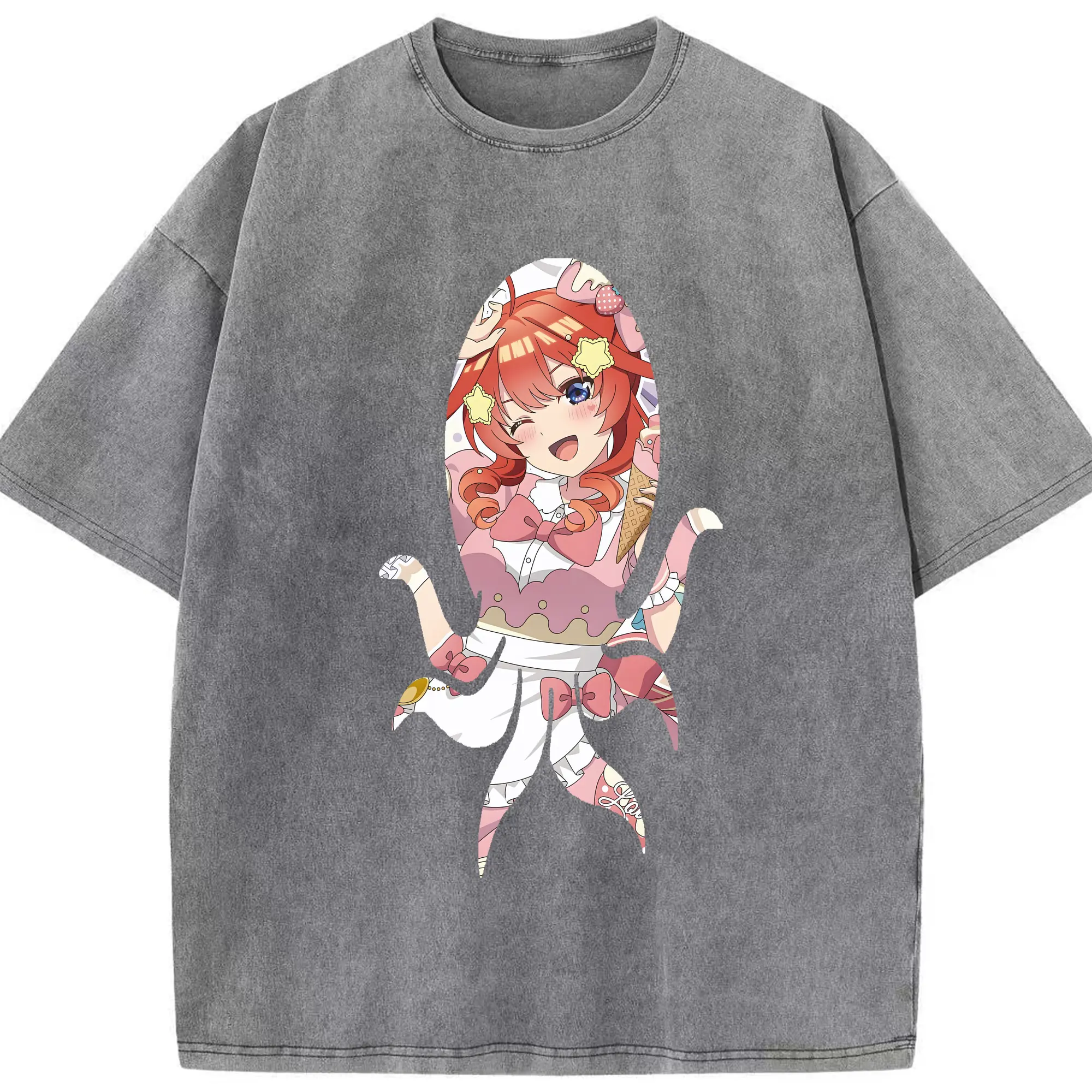 五等分の花嫁 グッズ 中野 二乃 - 綿100% ヴィンテージ風 半袖Tシャツ ・ フロントプリント ・ 柔らか肌触り ・ 通気性 快適 ・ スポーツ カジュアル 外出用