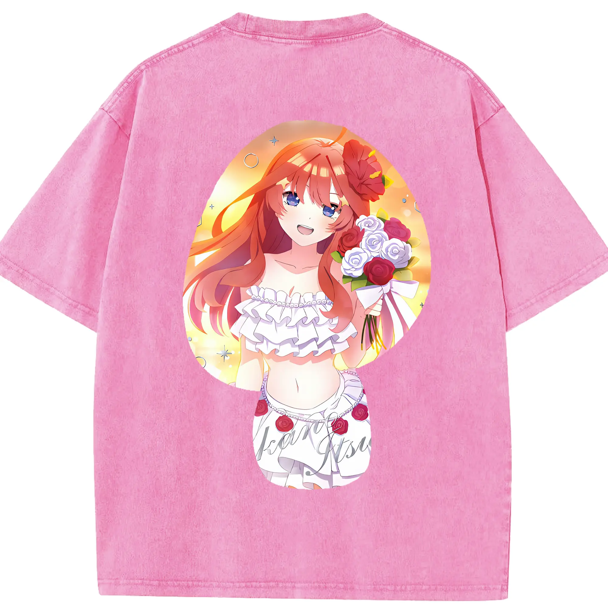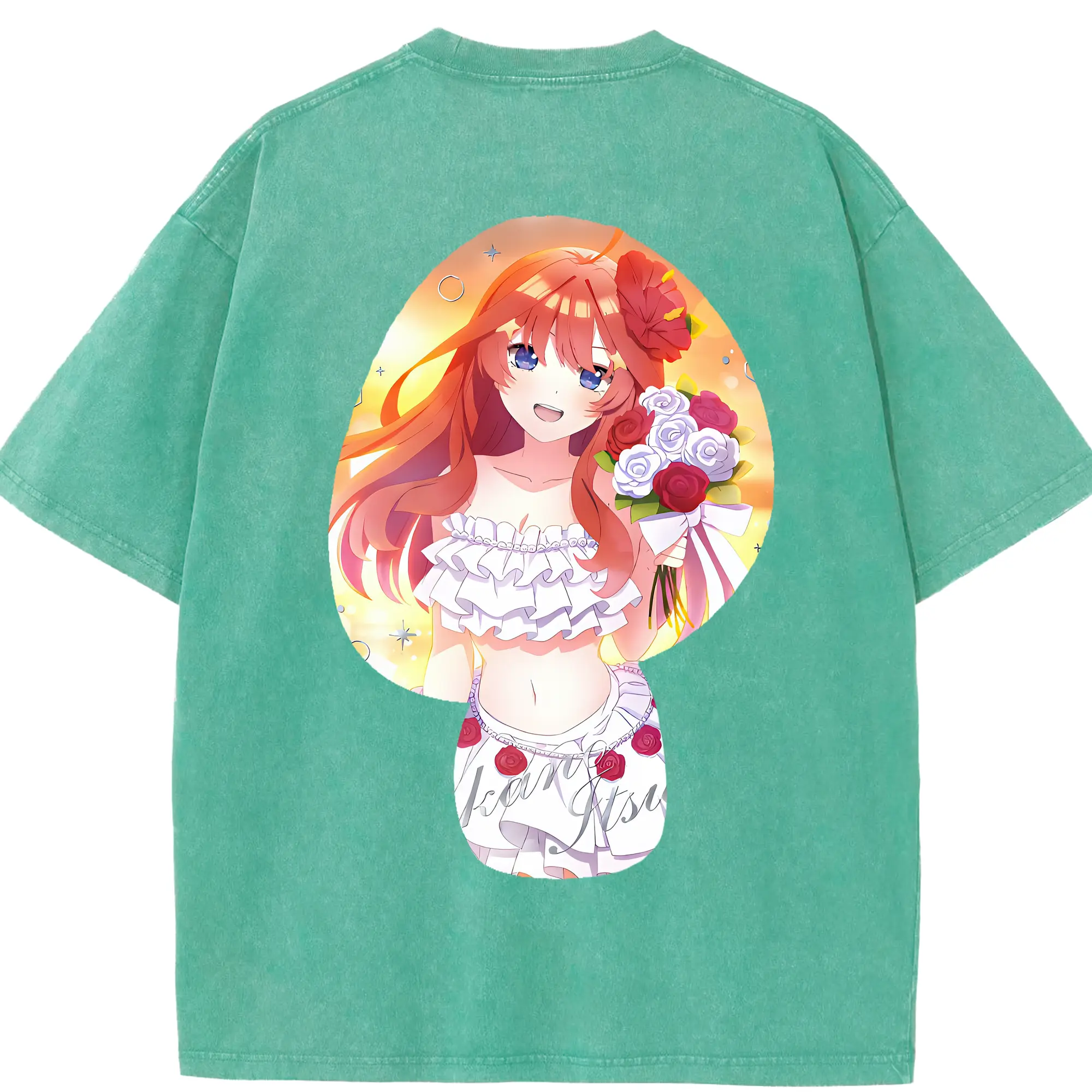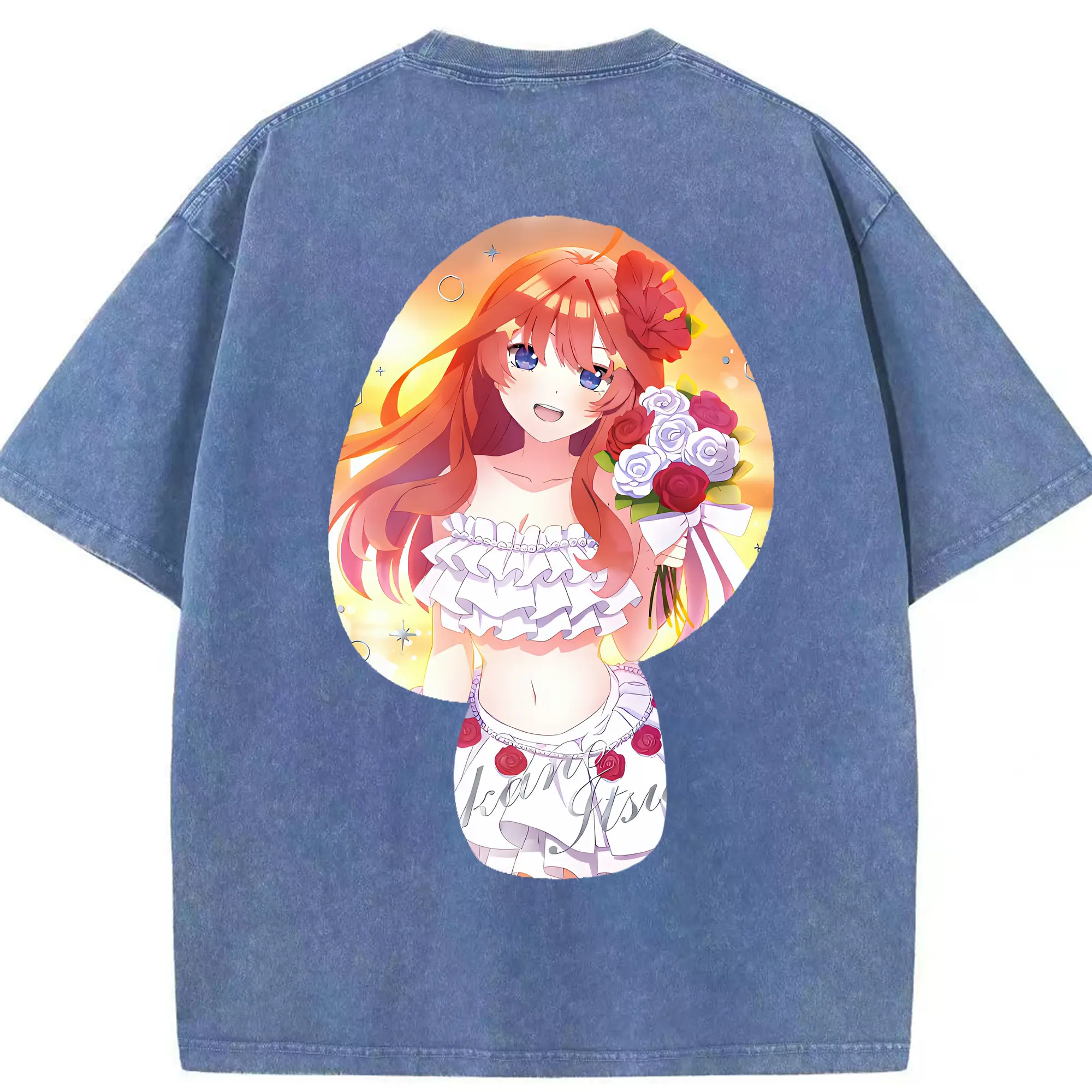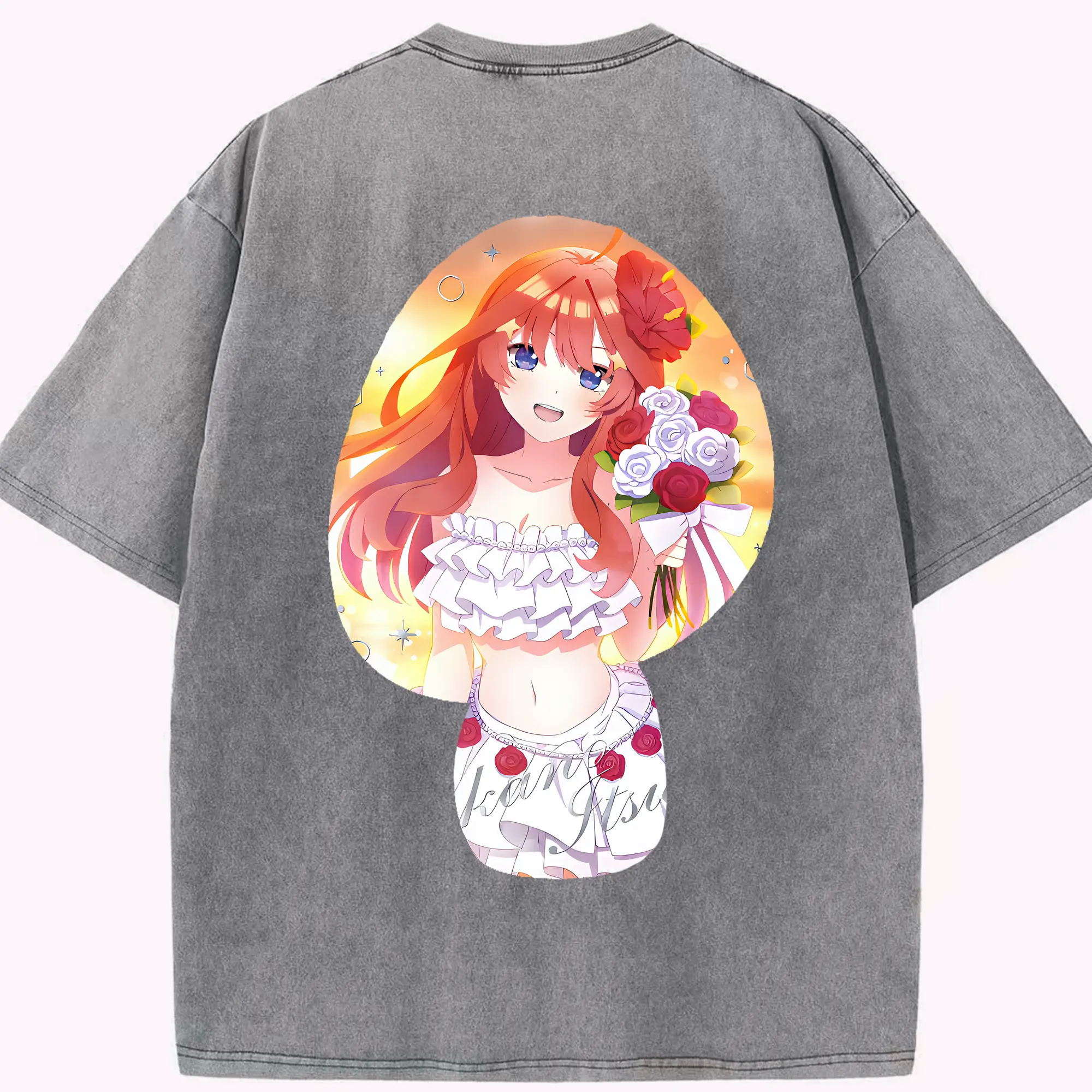 五等分の花嫁 グッズ 中野 五月 - 綿100% ヴィンテージ風 半袖Tシャツ ・ フロントプリント ・ 柔らか肌触り ・ 通気性 快適 ・ スポーツ カジュアル 外出用