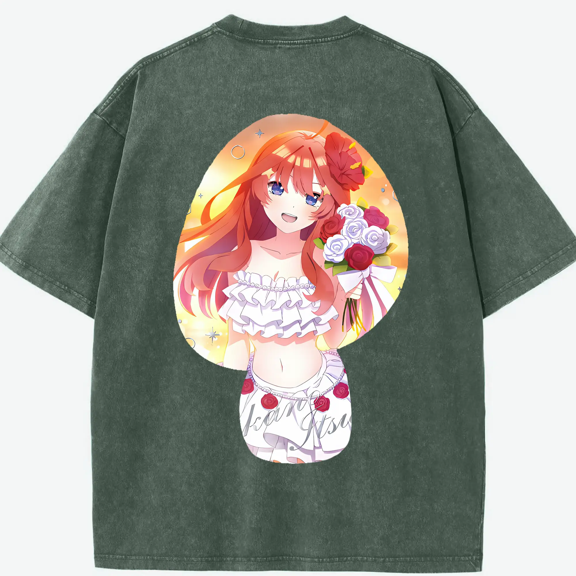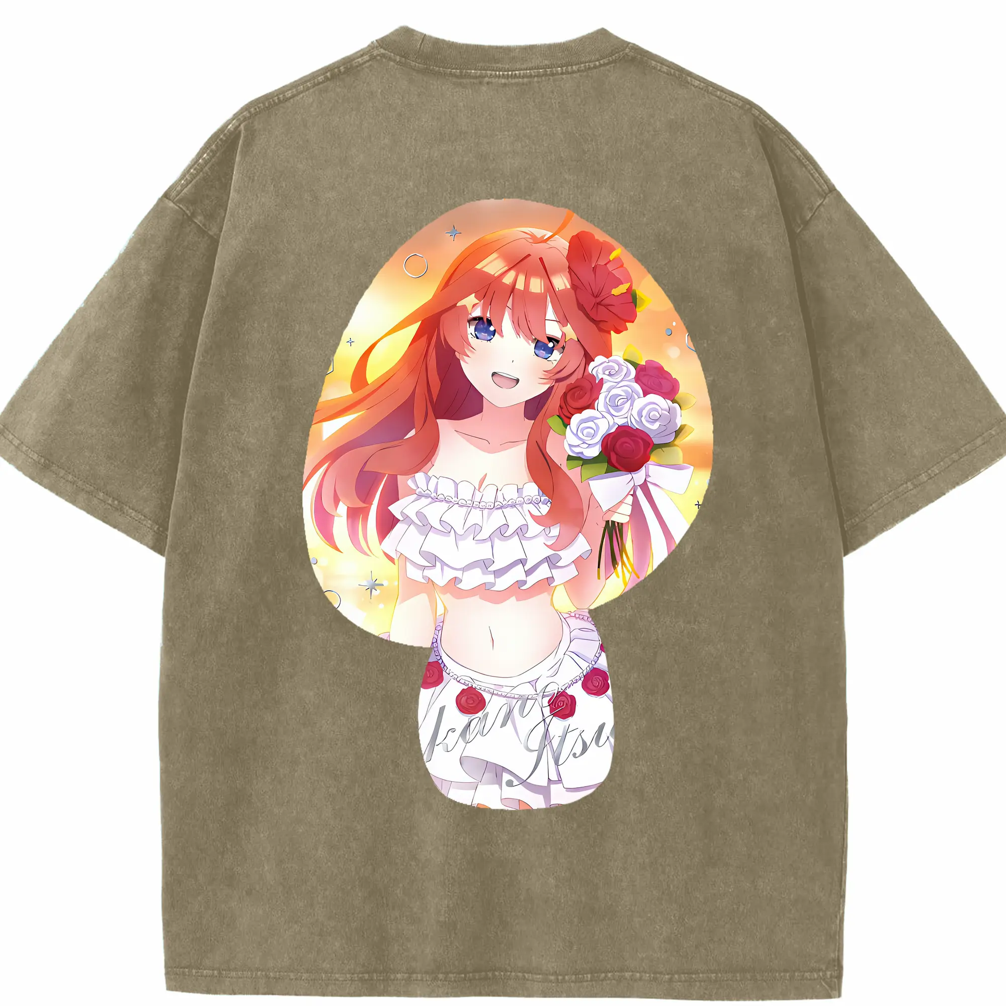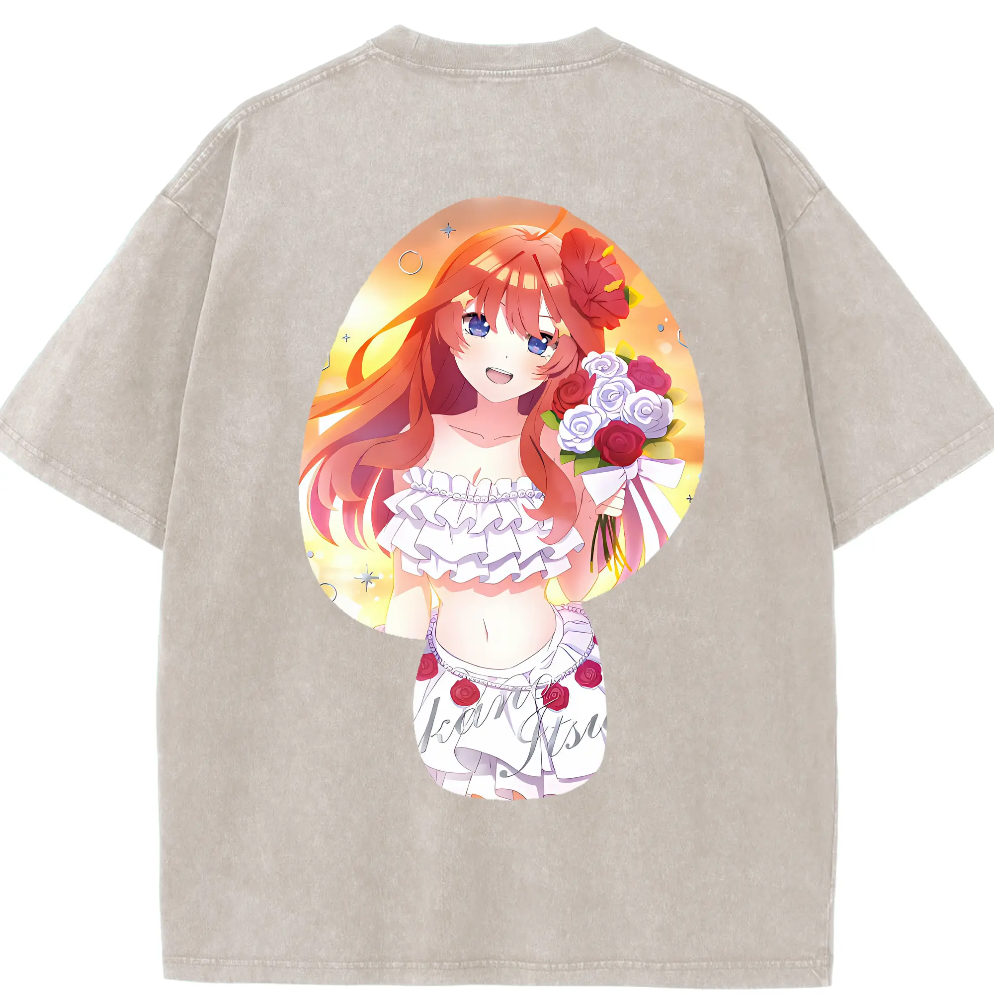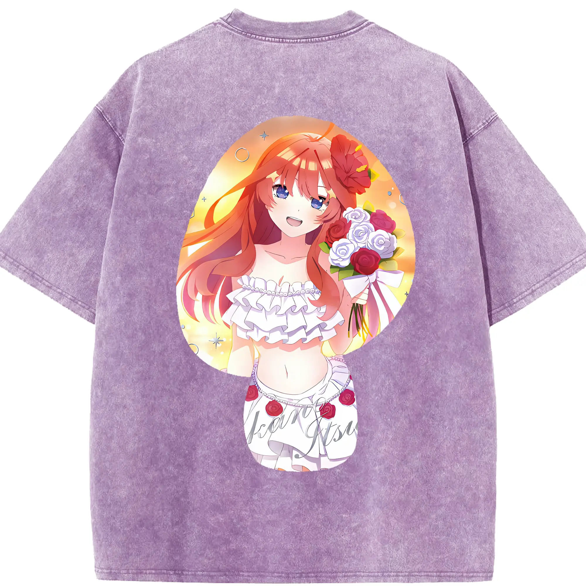 五等分の花嫁 グッズ 中野 五月 - 綿100% ヴィンテージ風 半袖Tシャツ ・ フロントプリント ・ 柔らか肌触り ・ 通気性 快適 ・ スポーツ カジュアル 外出用