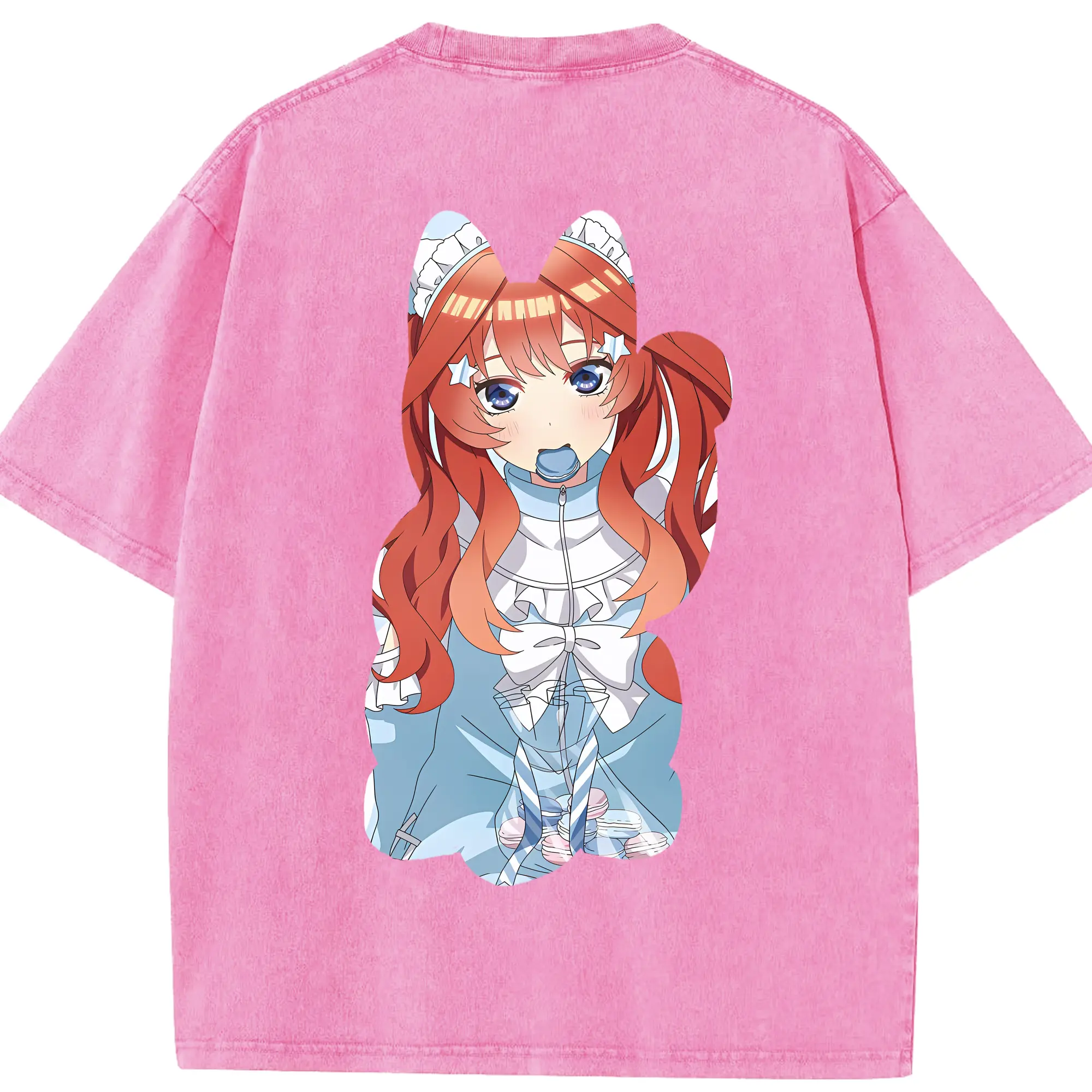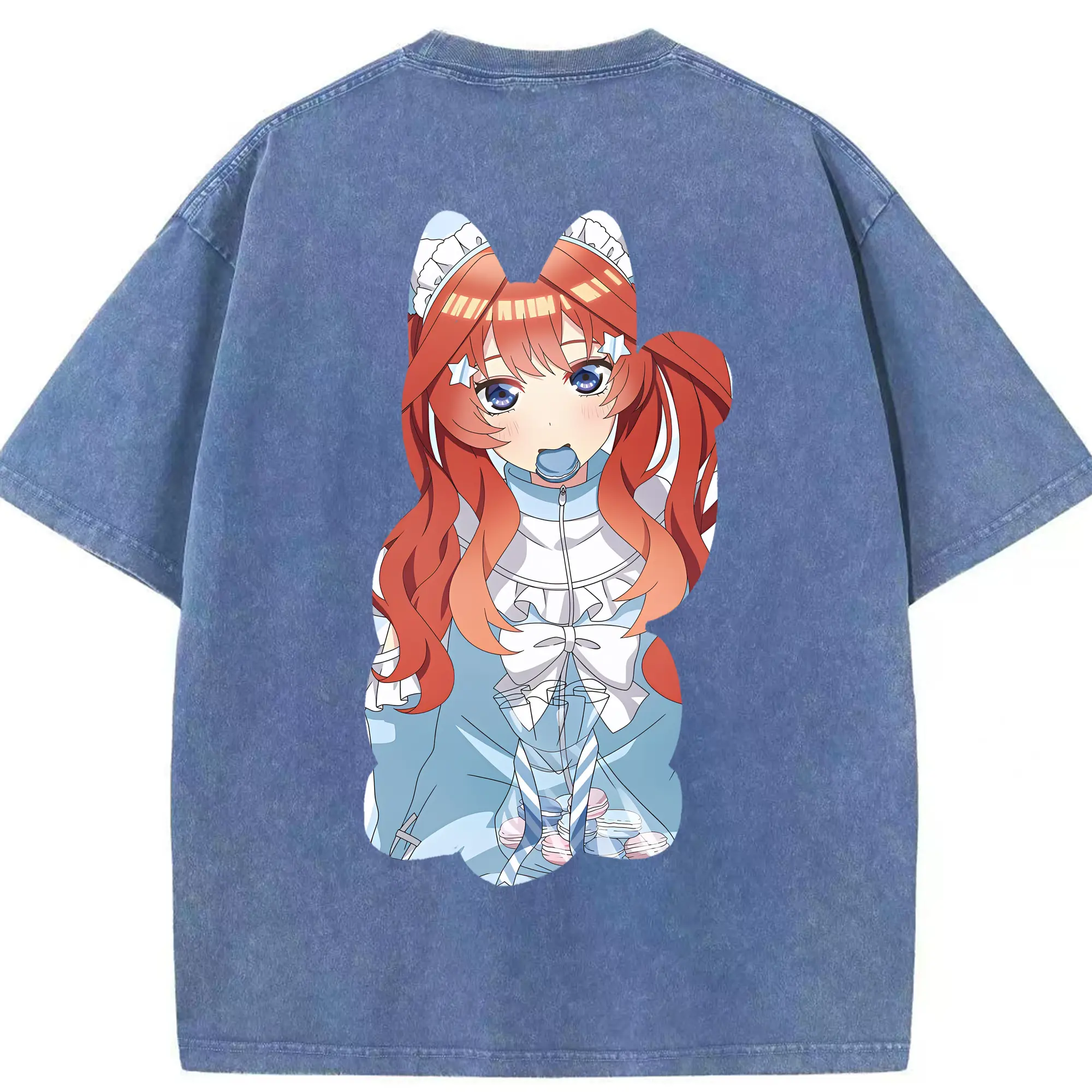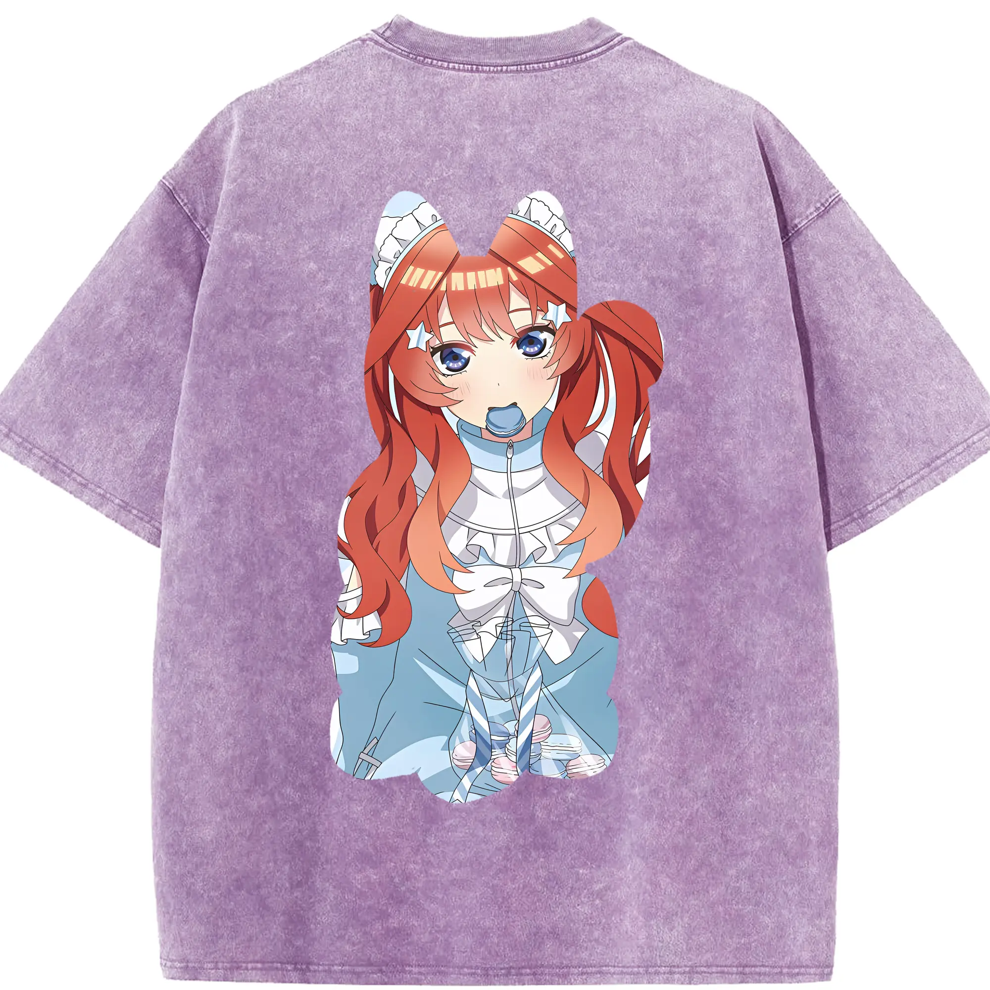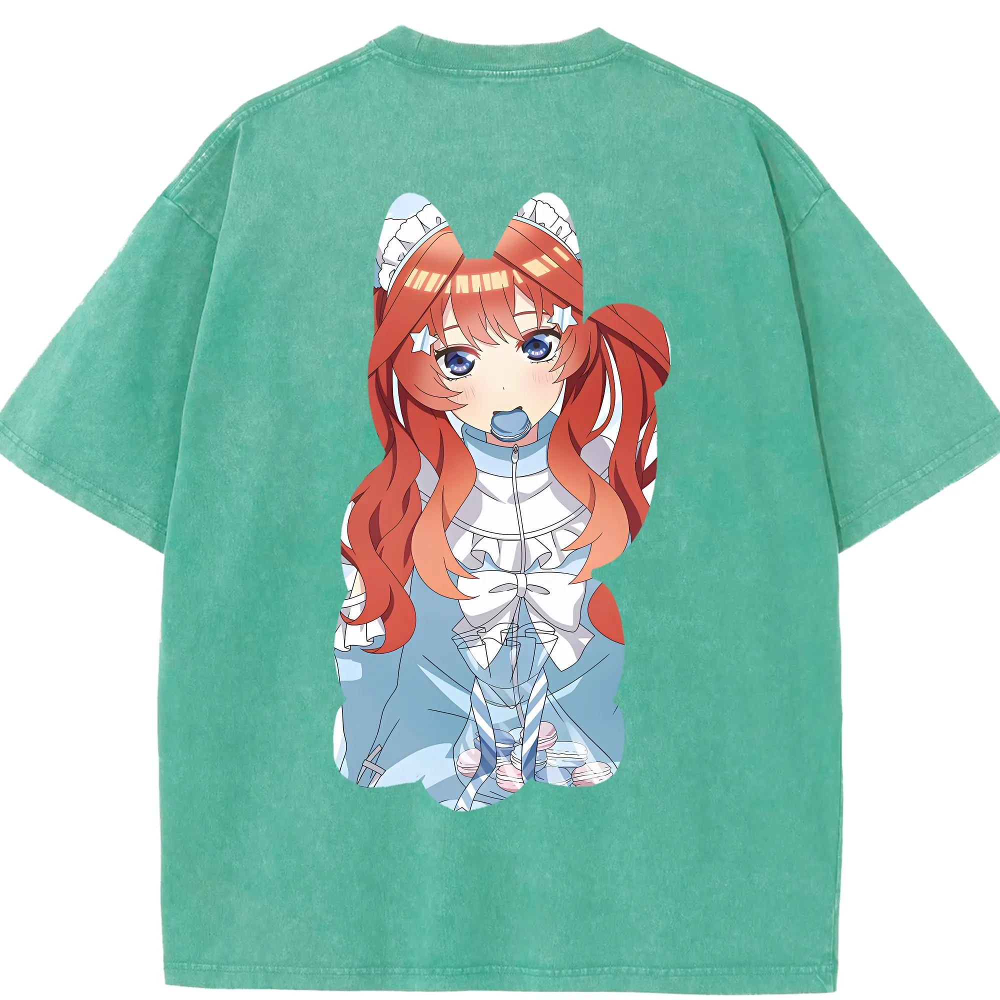 五等分の花嫁 グッズ 中野 五月 - 綿100% ヴィンテージ風 半袖Tシャツ ・ フロントプリント ・ 柔らか肌触り ・ 通気性 快適 ・ スポーツ カジュアル 外出用