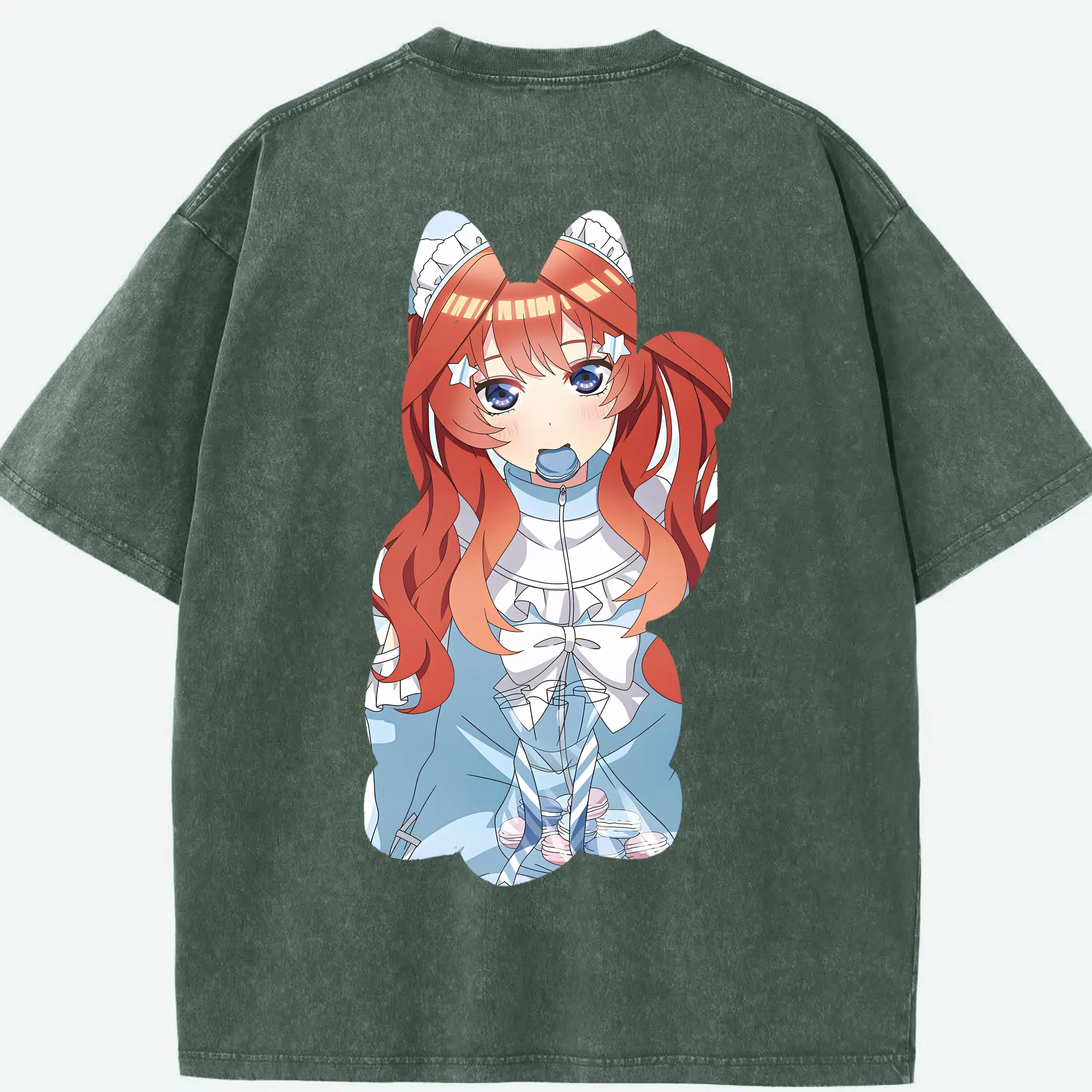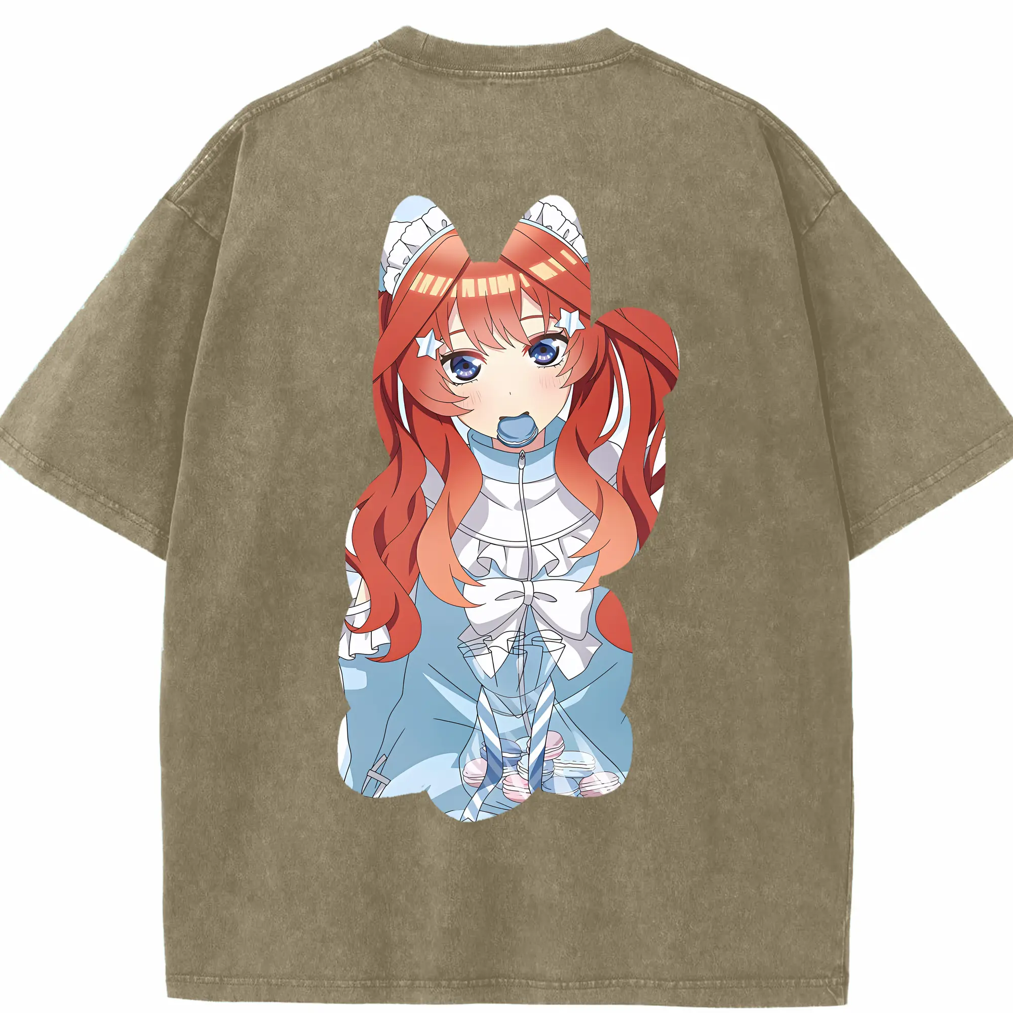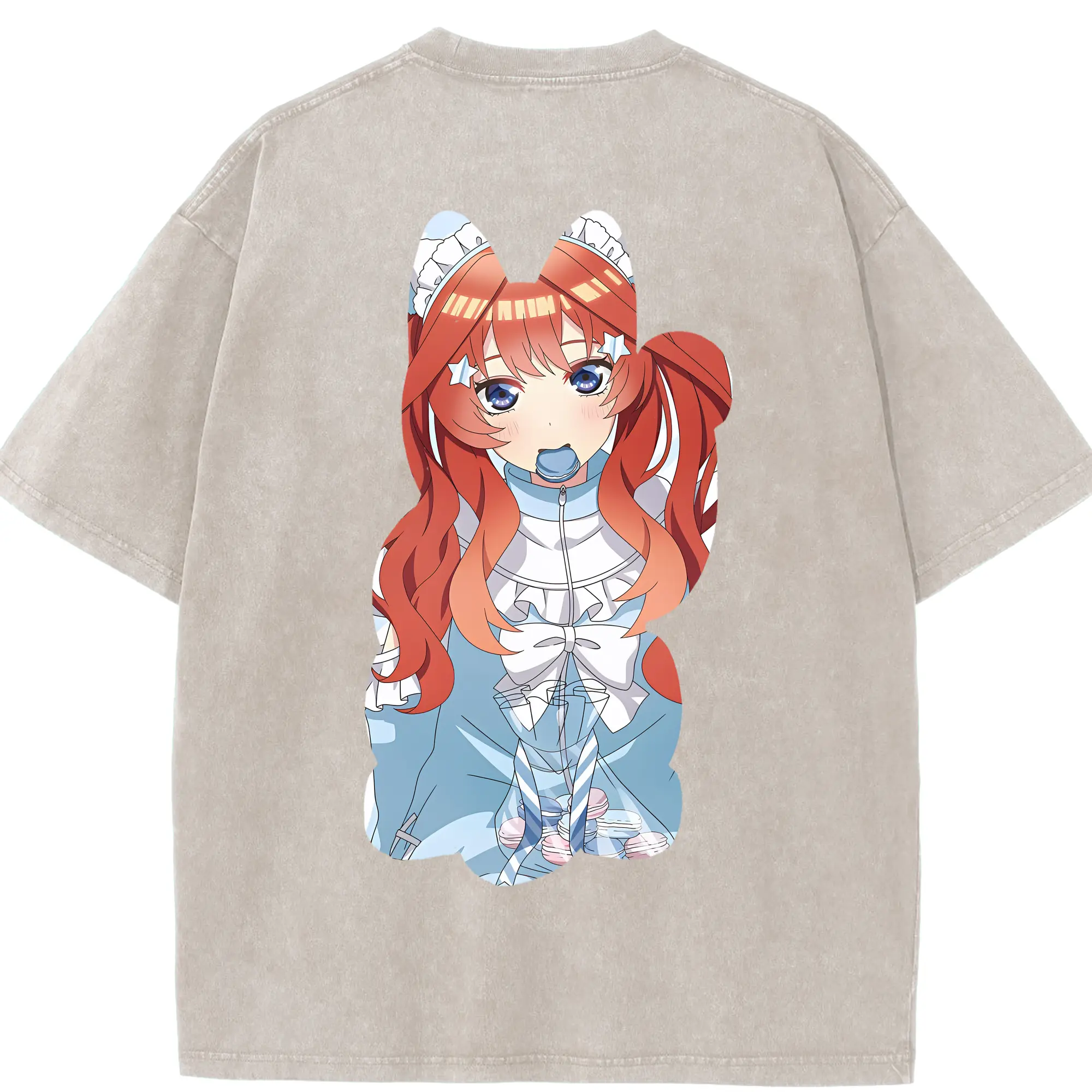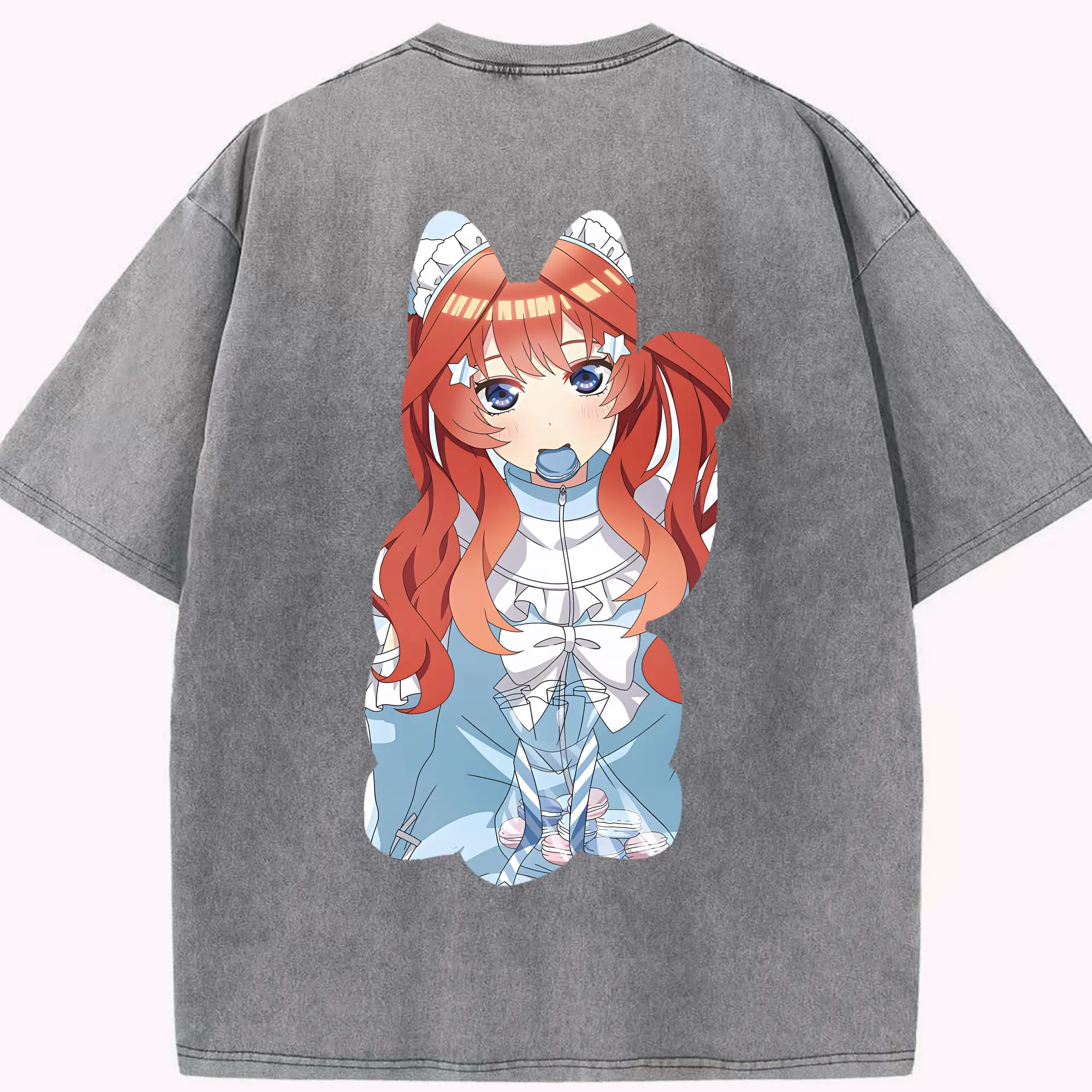 五等分の花嫁 グッズ 中野 五月 - 綿100% ヴィンテージ風 半袖Tシャツ ・ フロントプリント ・ 柔らか肌触り ・ 通気性 快適 ・ スポーツ カジュアル 外出用
