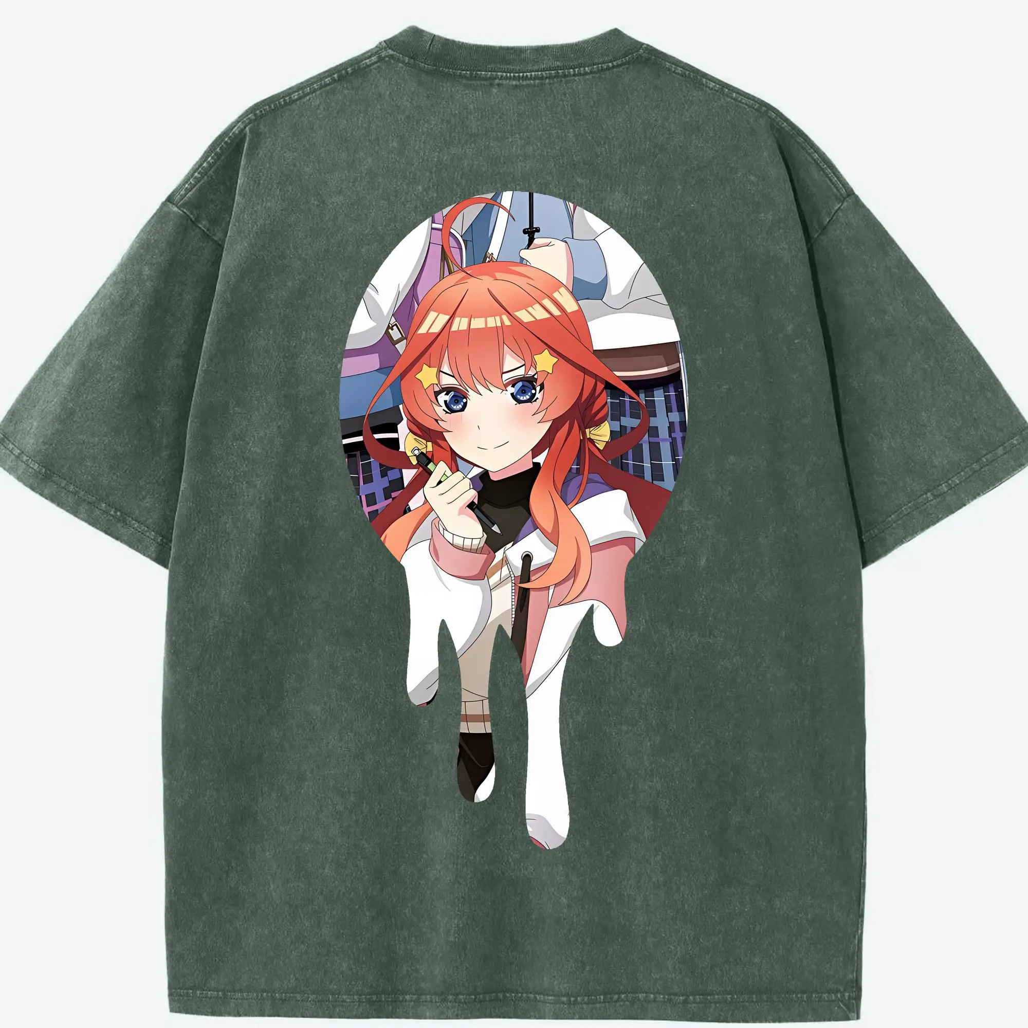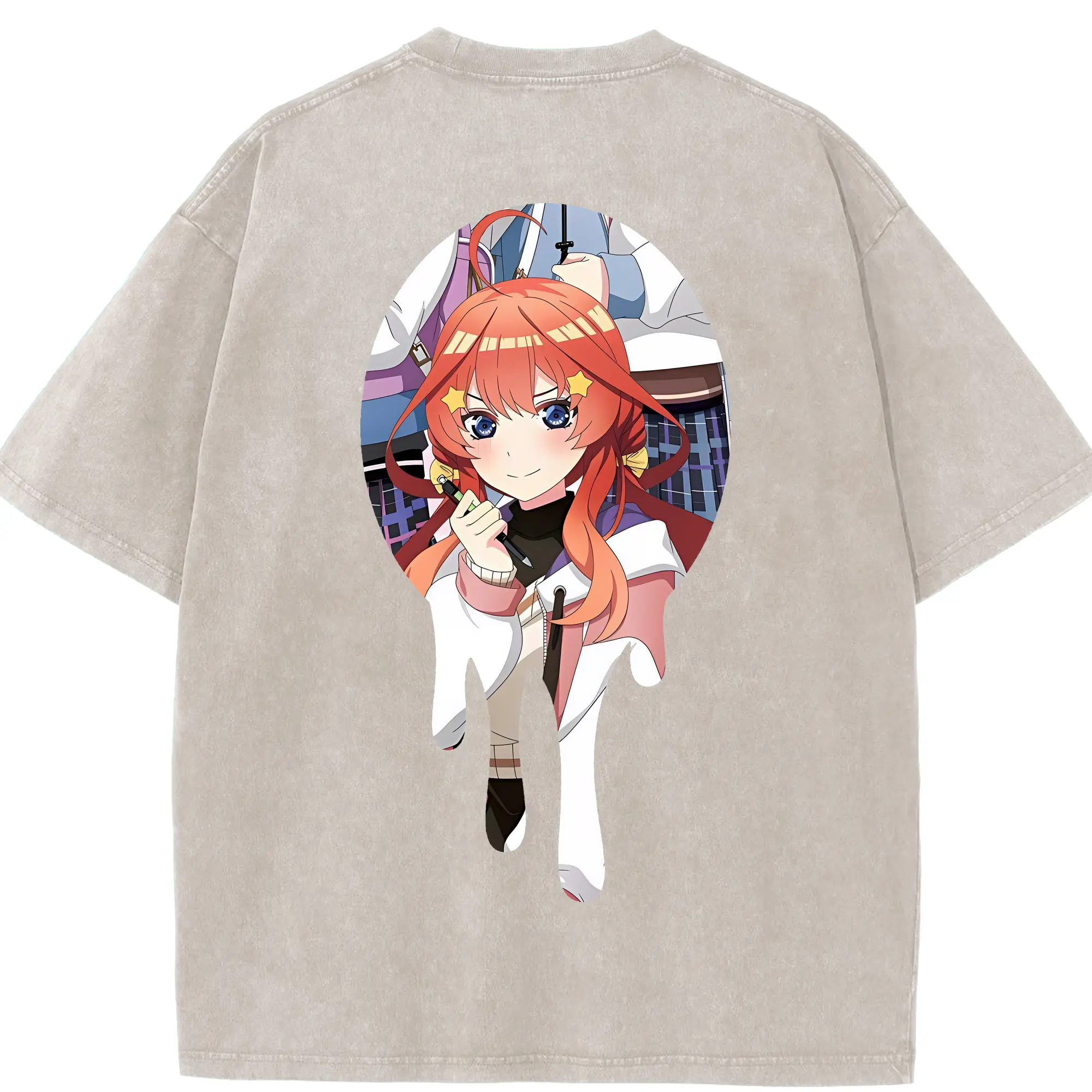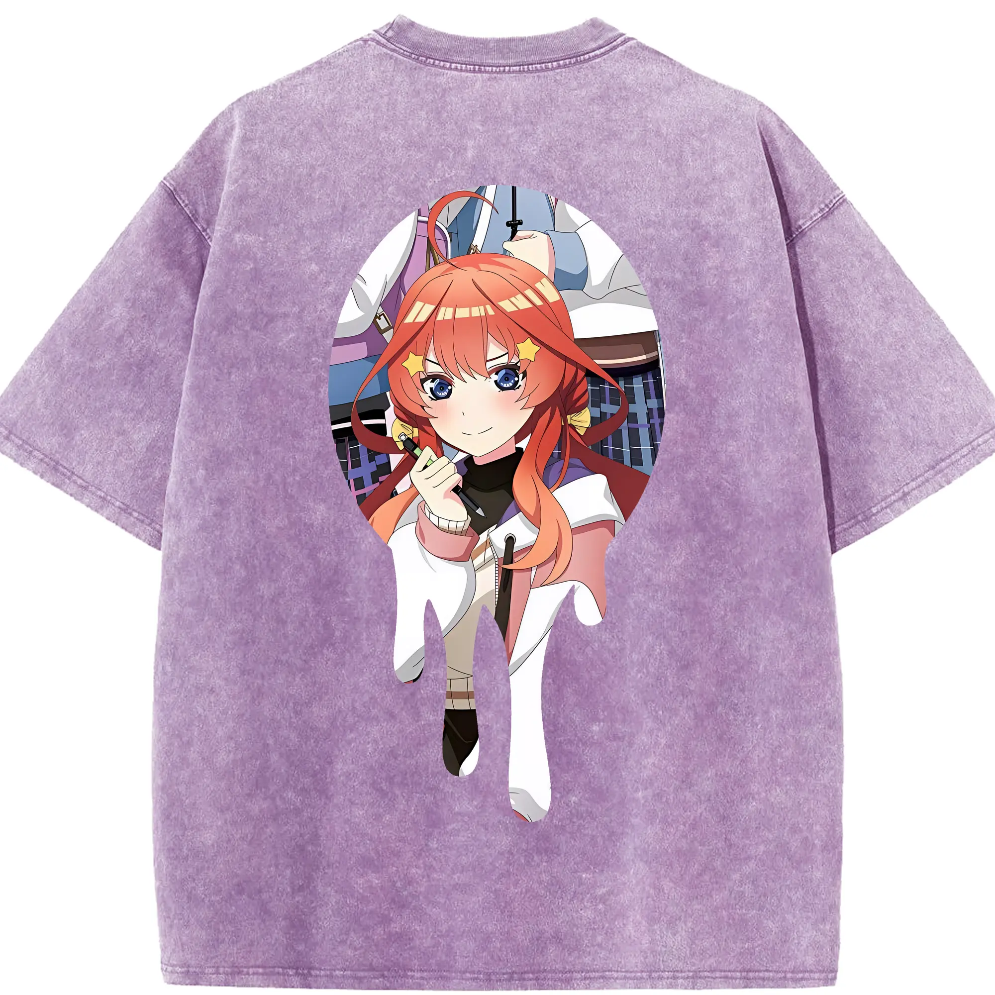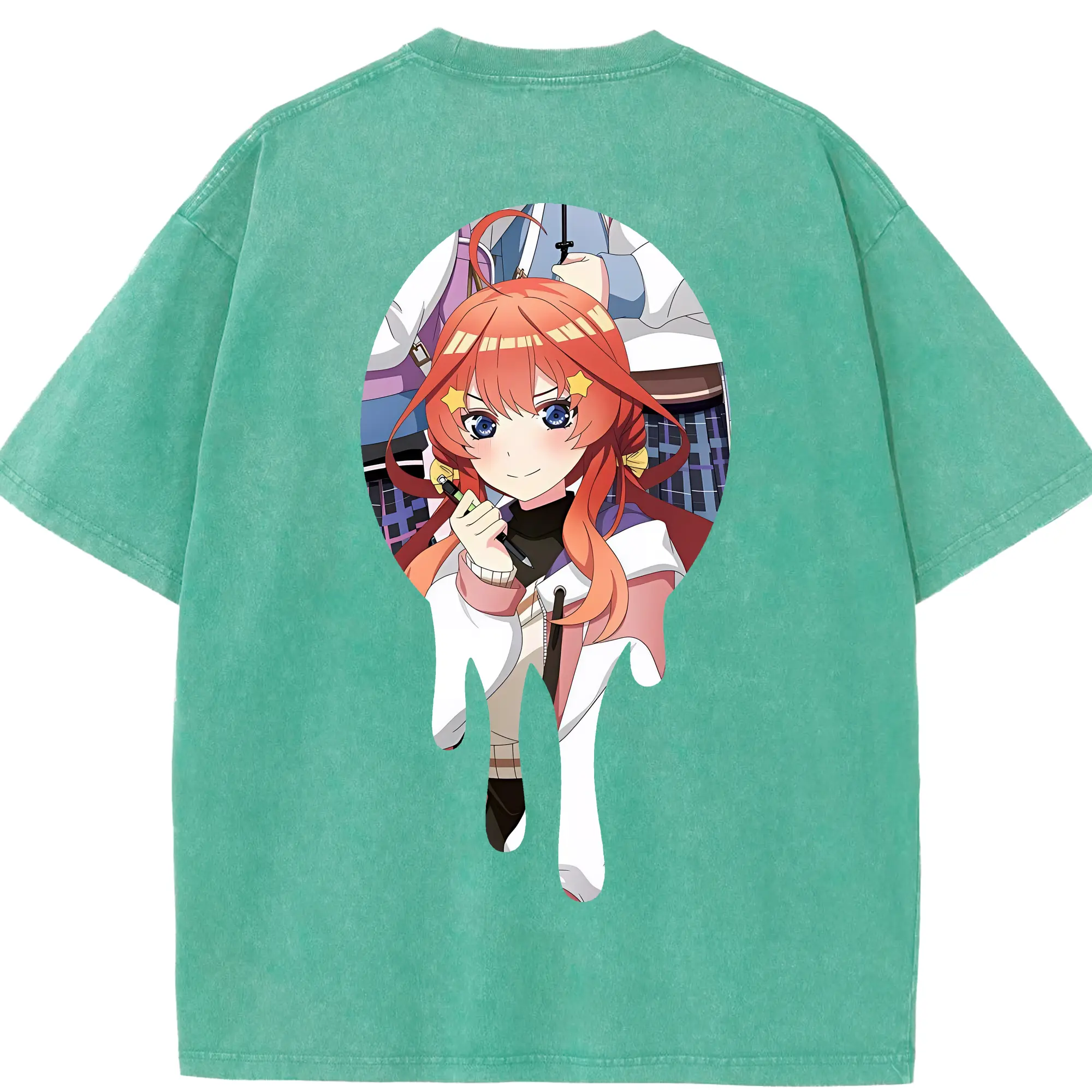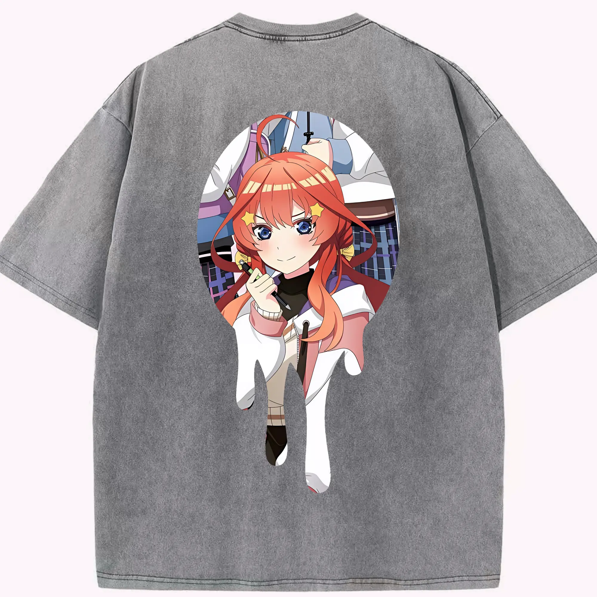 五等分の花嫁 グッズ 中野 五月 - 綿100% ヴィンテージ風 半袖Tシャツ ・ フロントプリント ・ 柔らか肌触り ・ 通気性 快適 ・ スポーツ カジュアル 外出用
