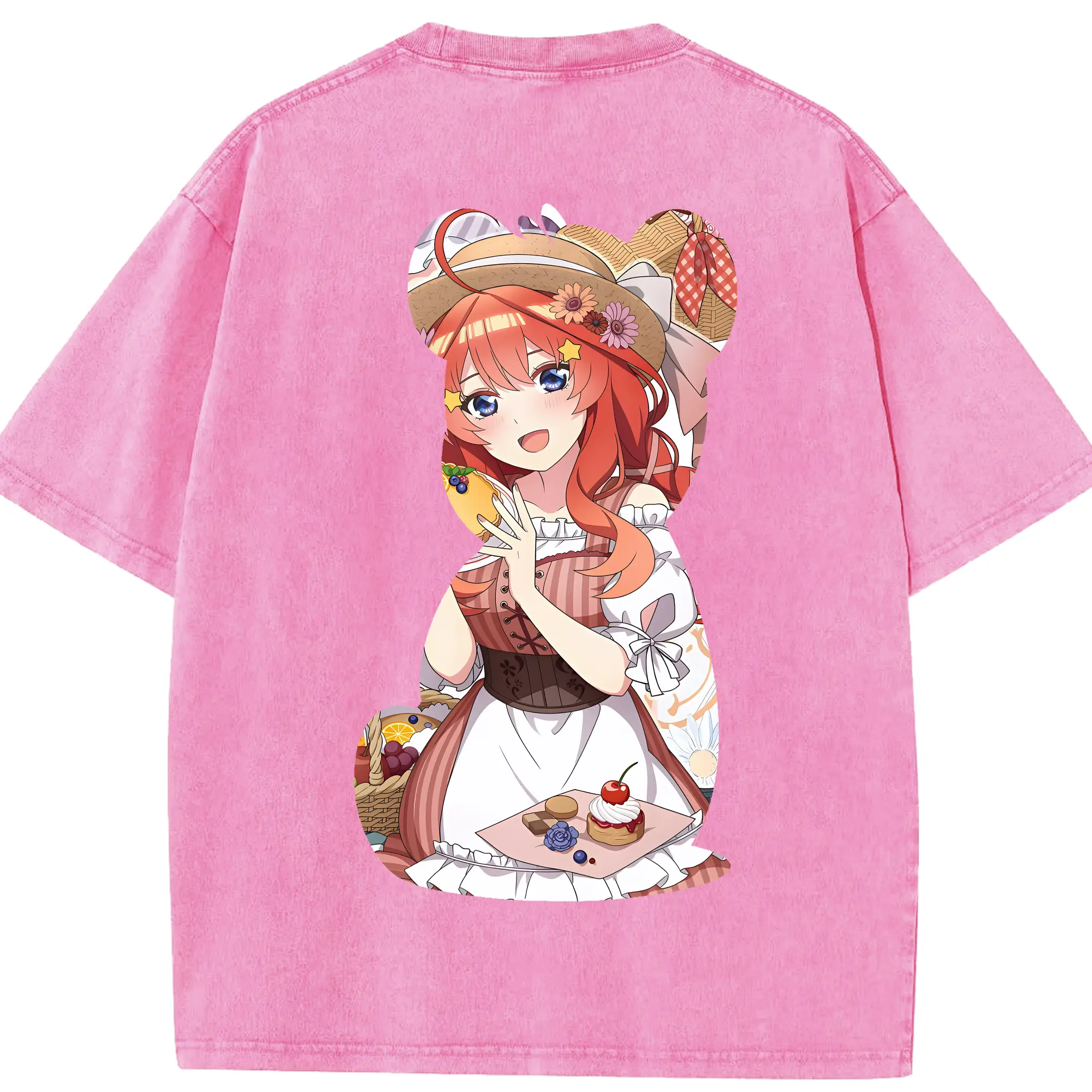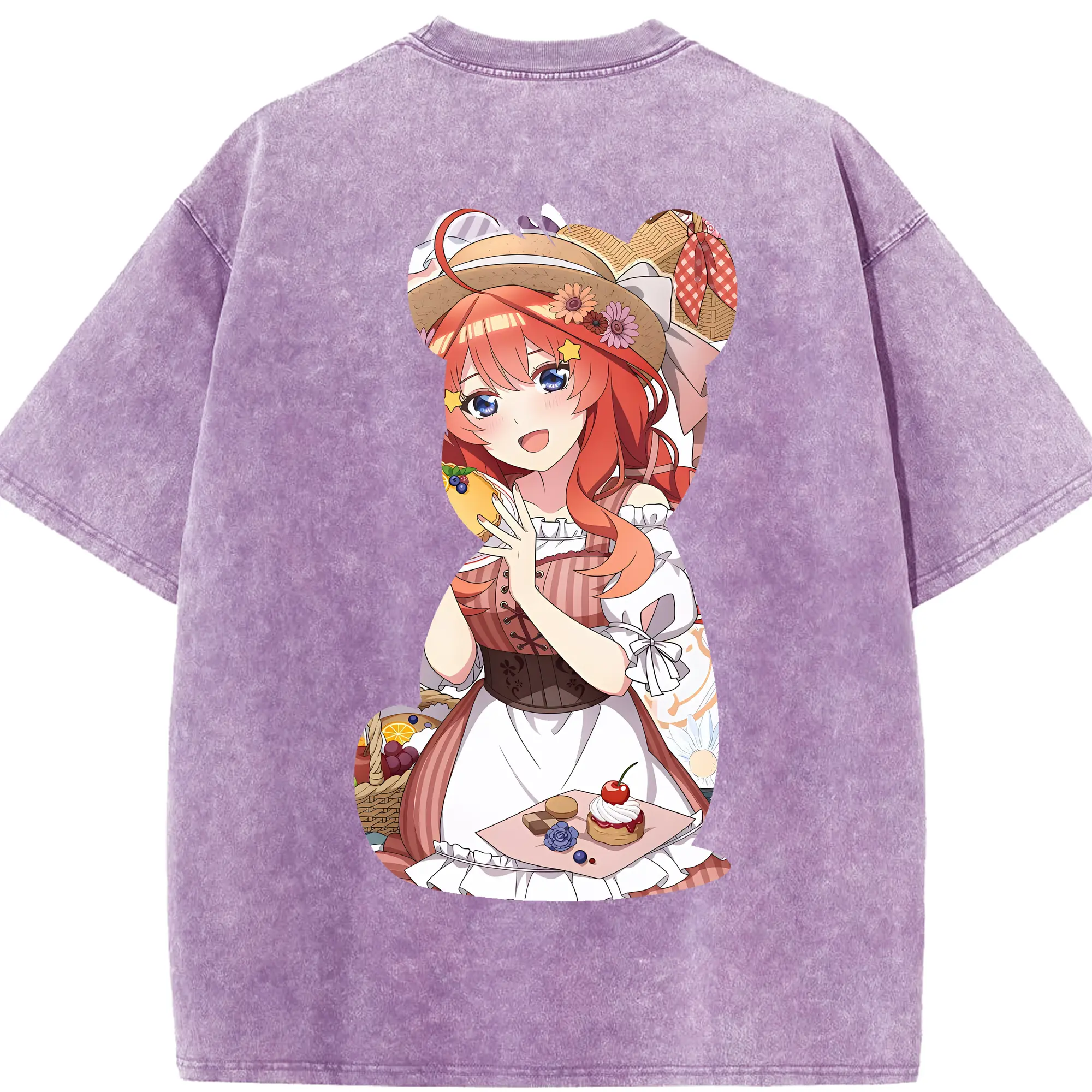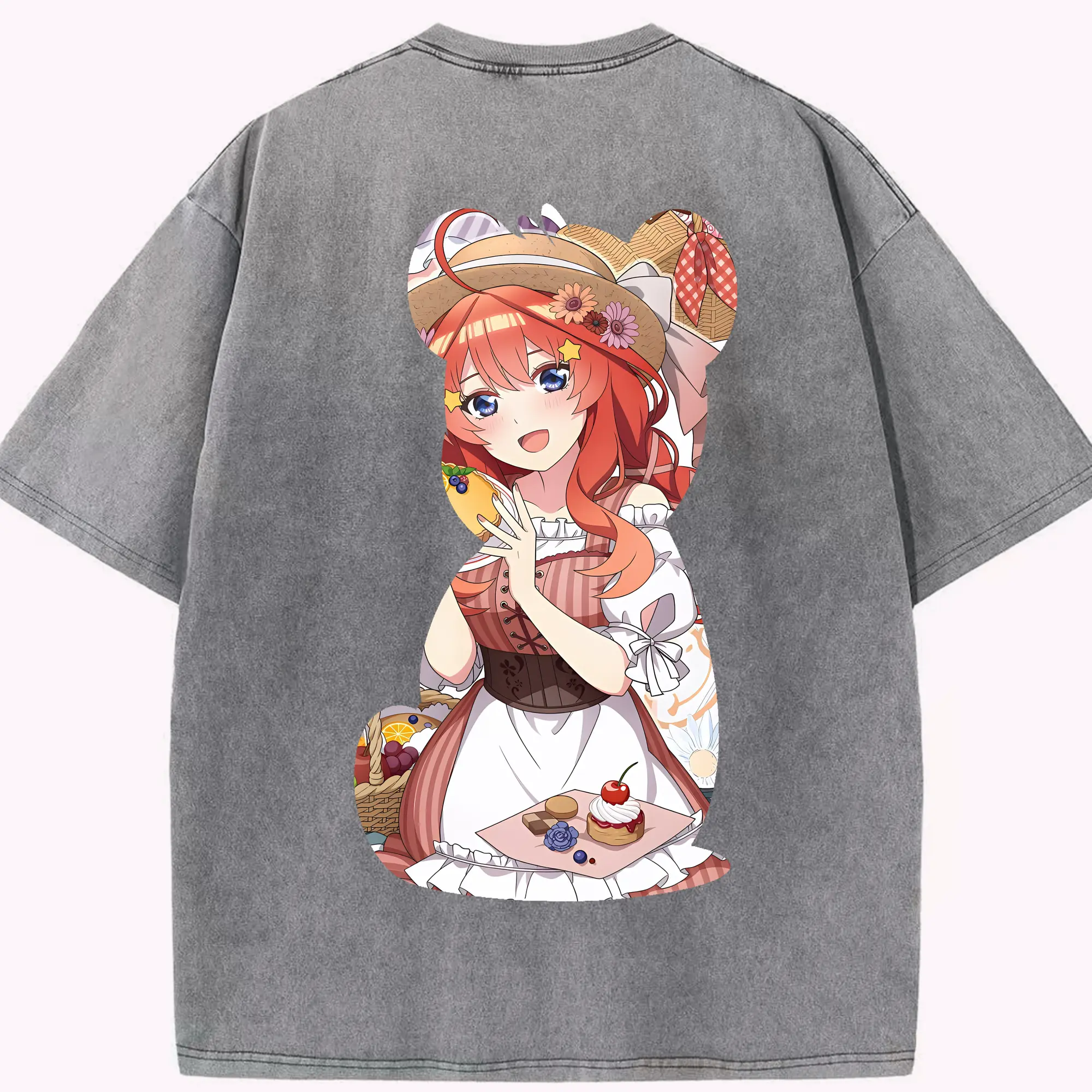 五等分の花嫁 グッズ 中野 五月 - 綿100% ヴィンテージ風 半袖Tシャツ ・ フロントプリント ・ 柔らか肌触り ・ 通気性 快適 ・ スポーツ カジュアル 外出用
