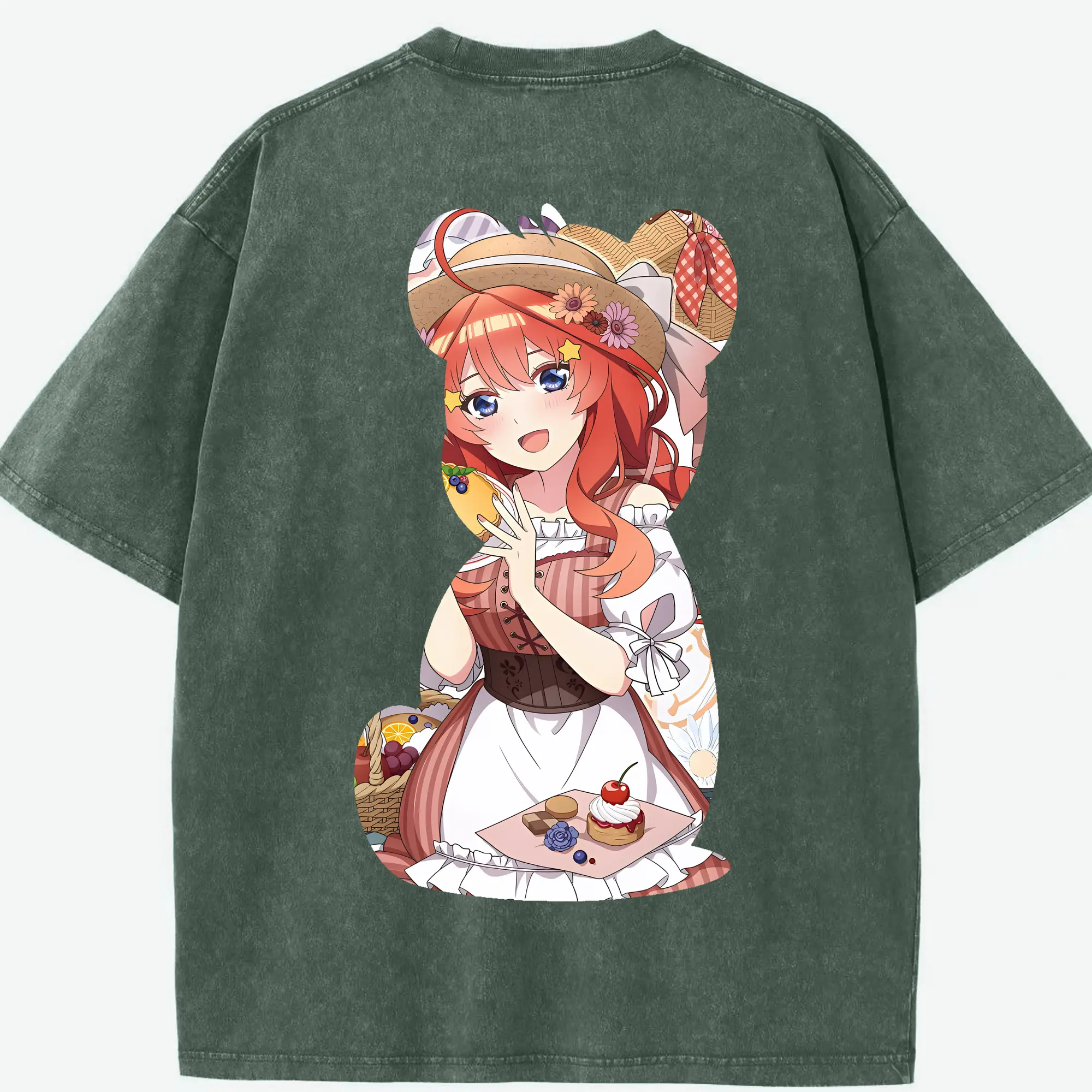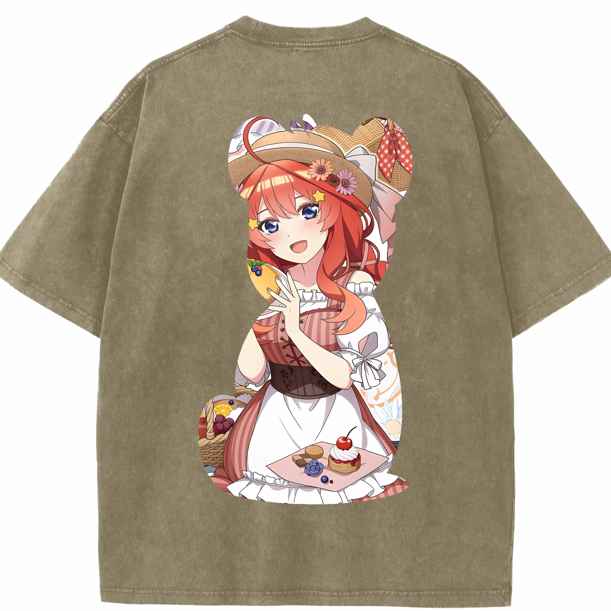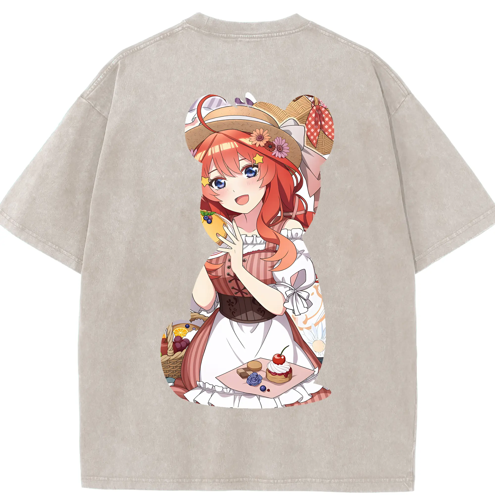 五等分の花嫁 グッズ 中野 五月 - 綿100% ヴィンテージ風 半袖Tシャツ ・ フロントプリント ・ 柔らか肌触り ・ 通気性 快適 ・ スポーツ カジュアル 外出用