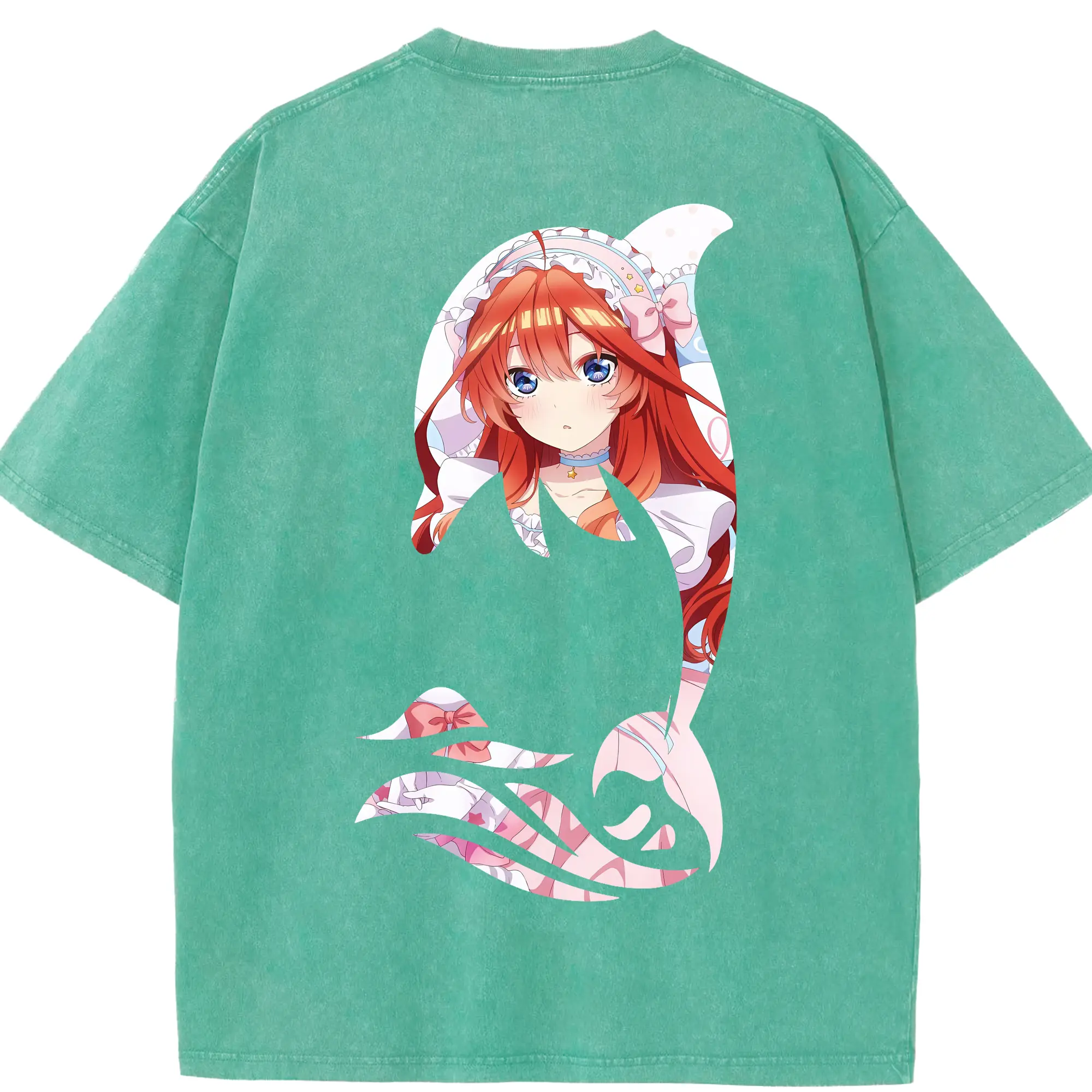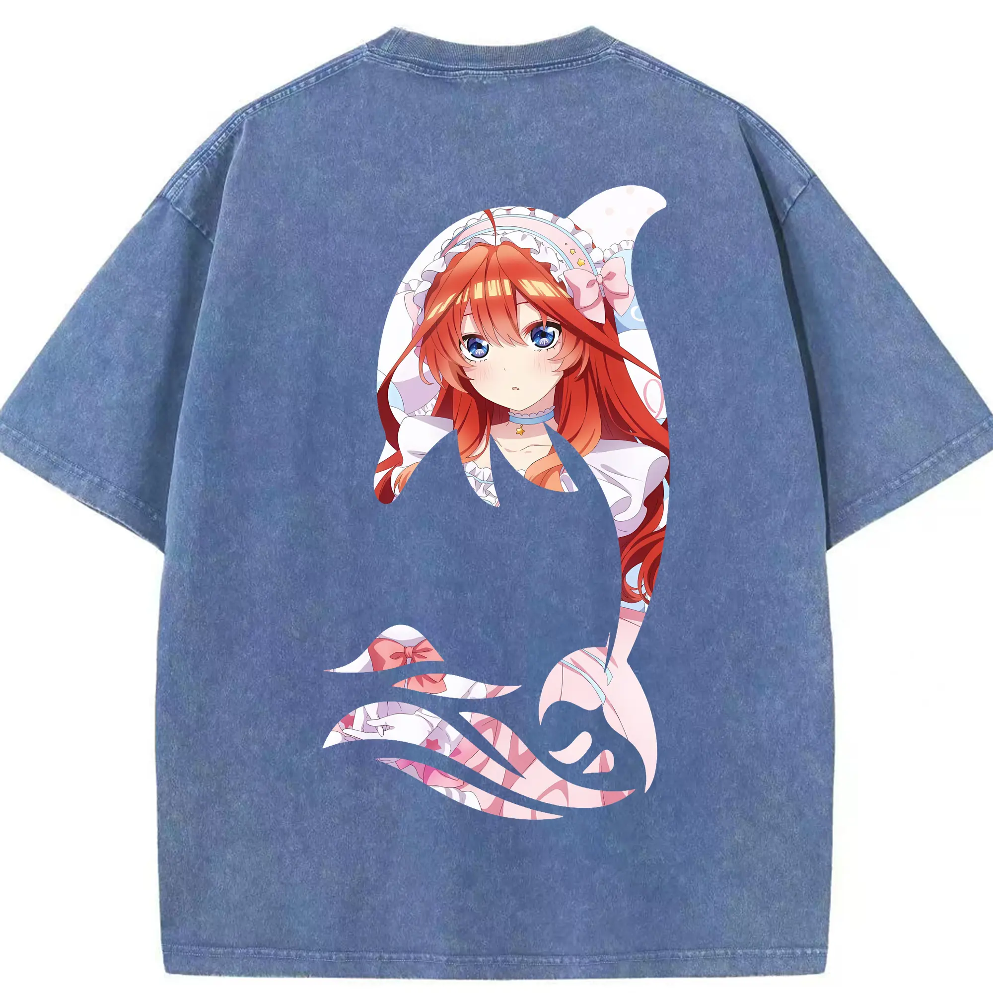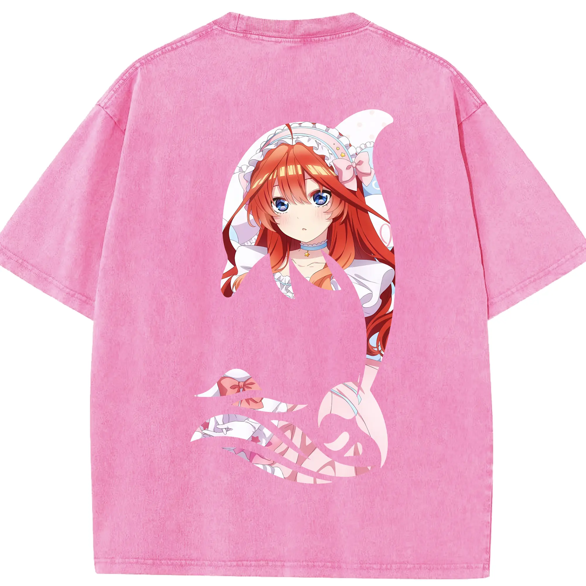 五等分の花嫁 グッズ 中野 五月 - 綿100% ヴィンテージ風 半袖Tシャツ ・ フロントプリント ・ 柔らか肌触り ・ 通気性 快適 ・ スポーツ カジュアル 外出用