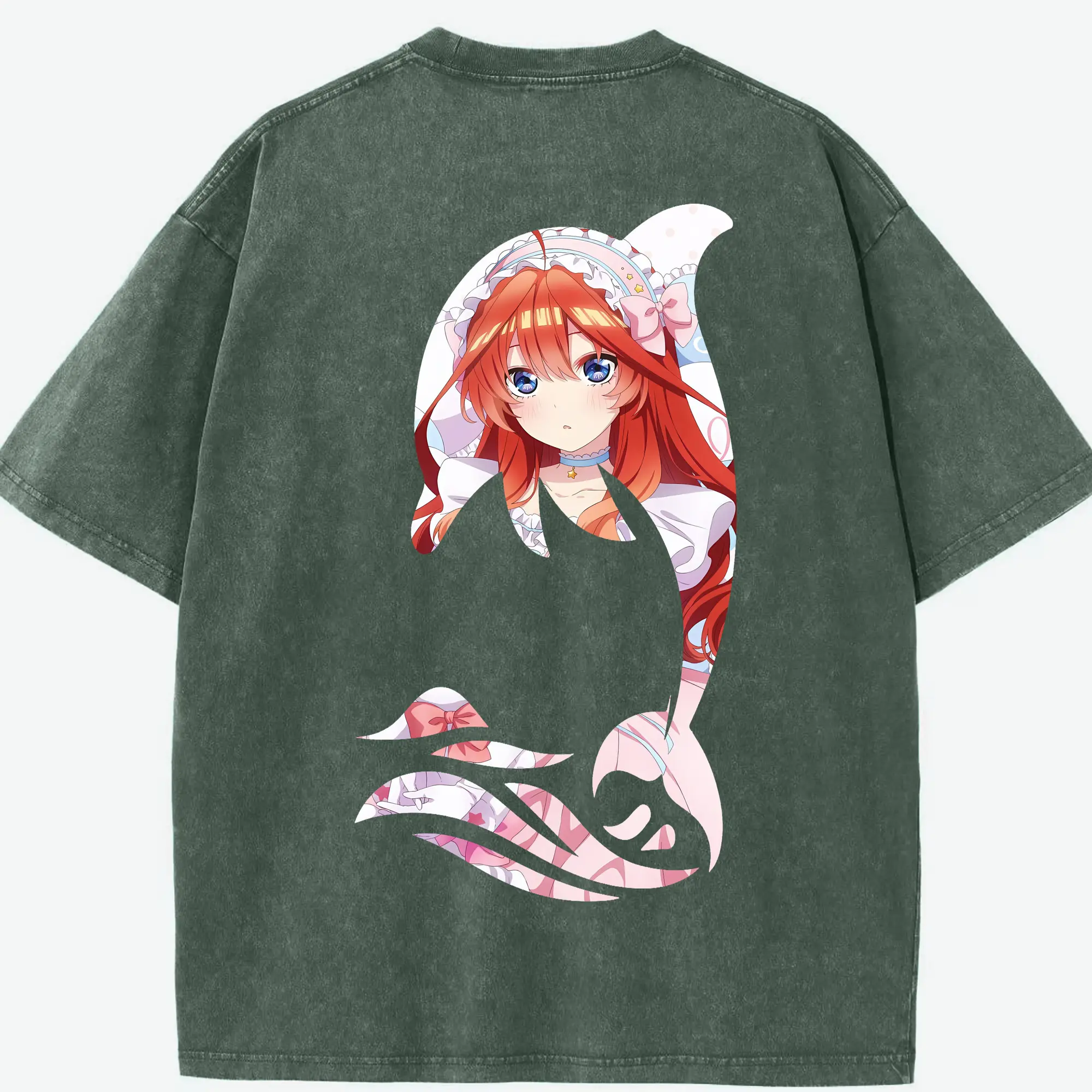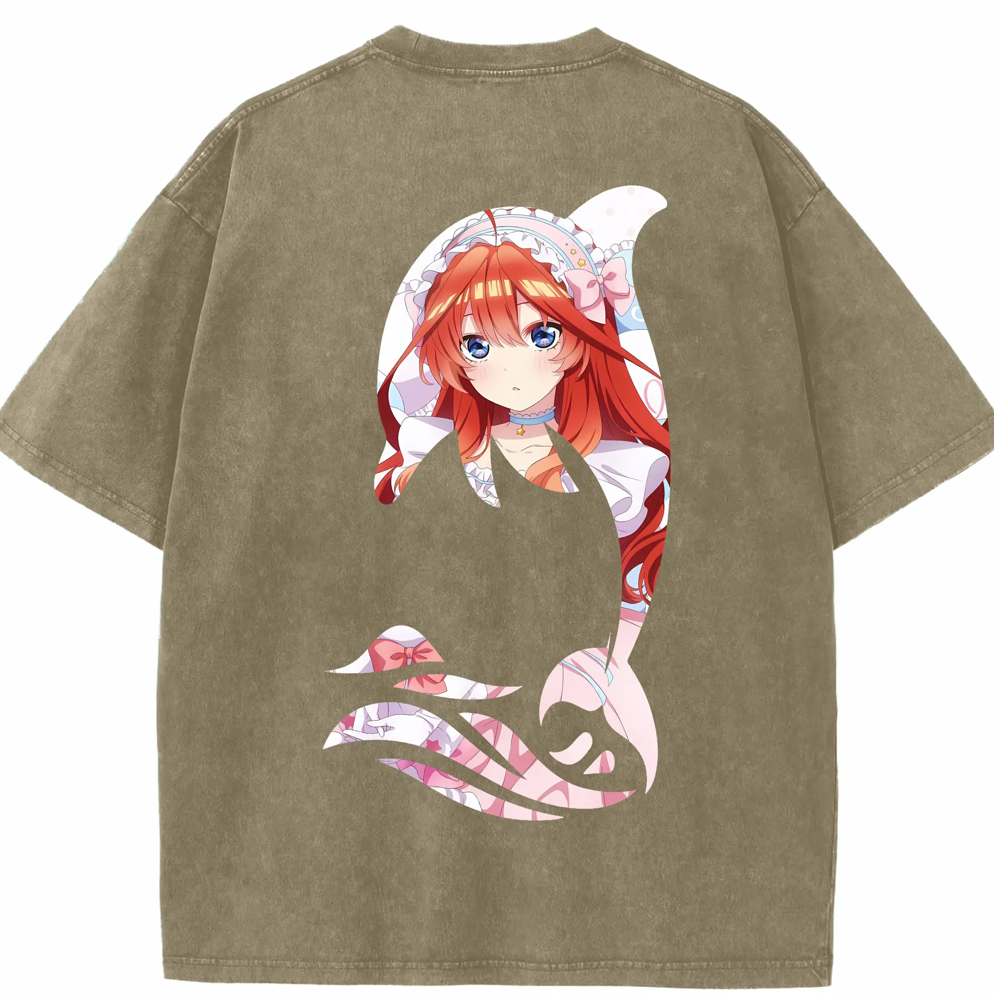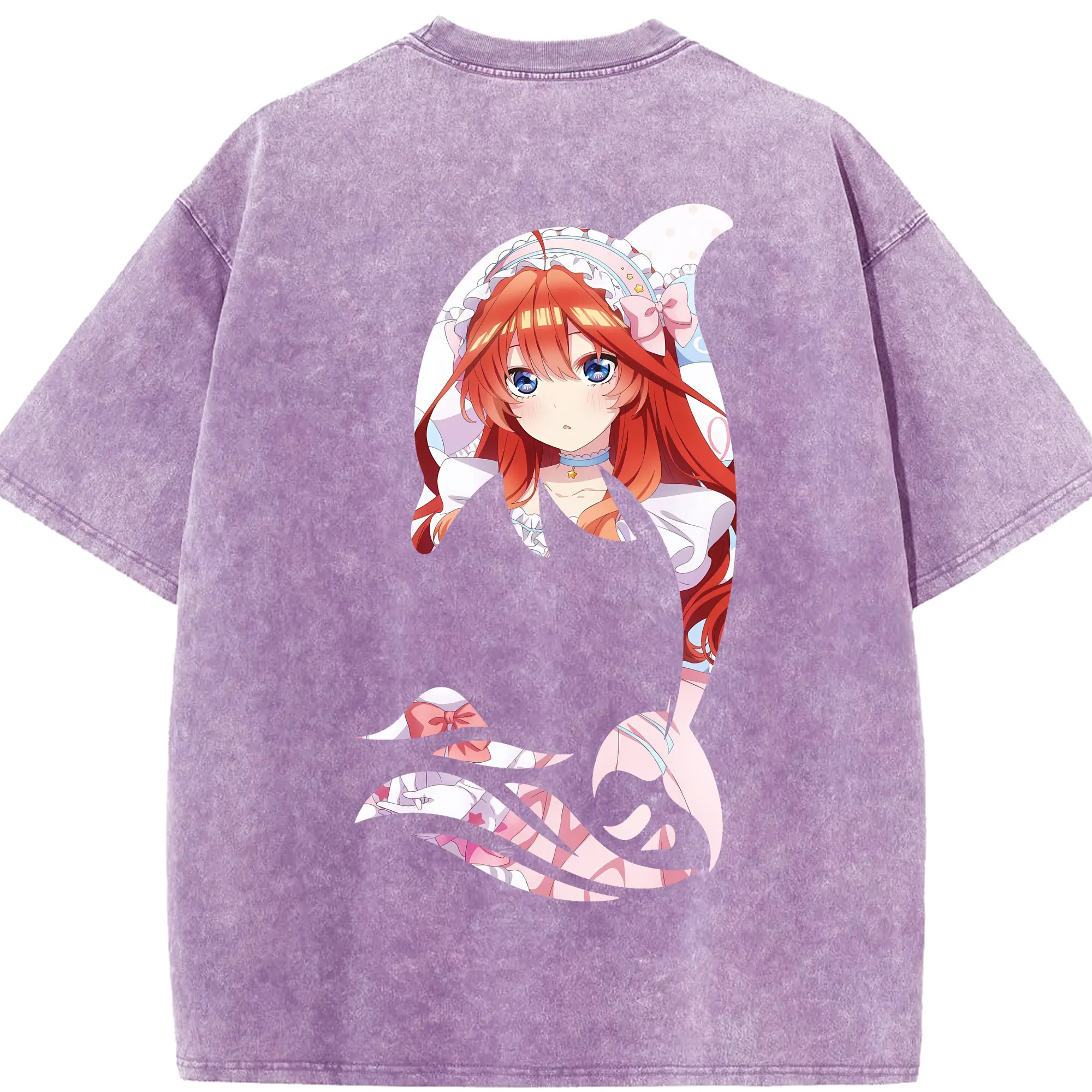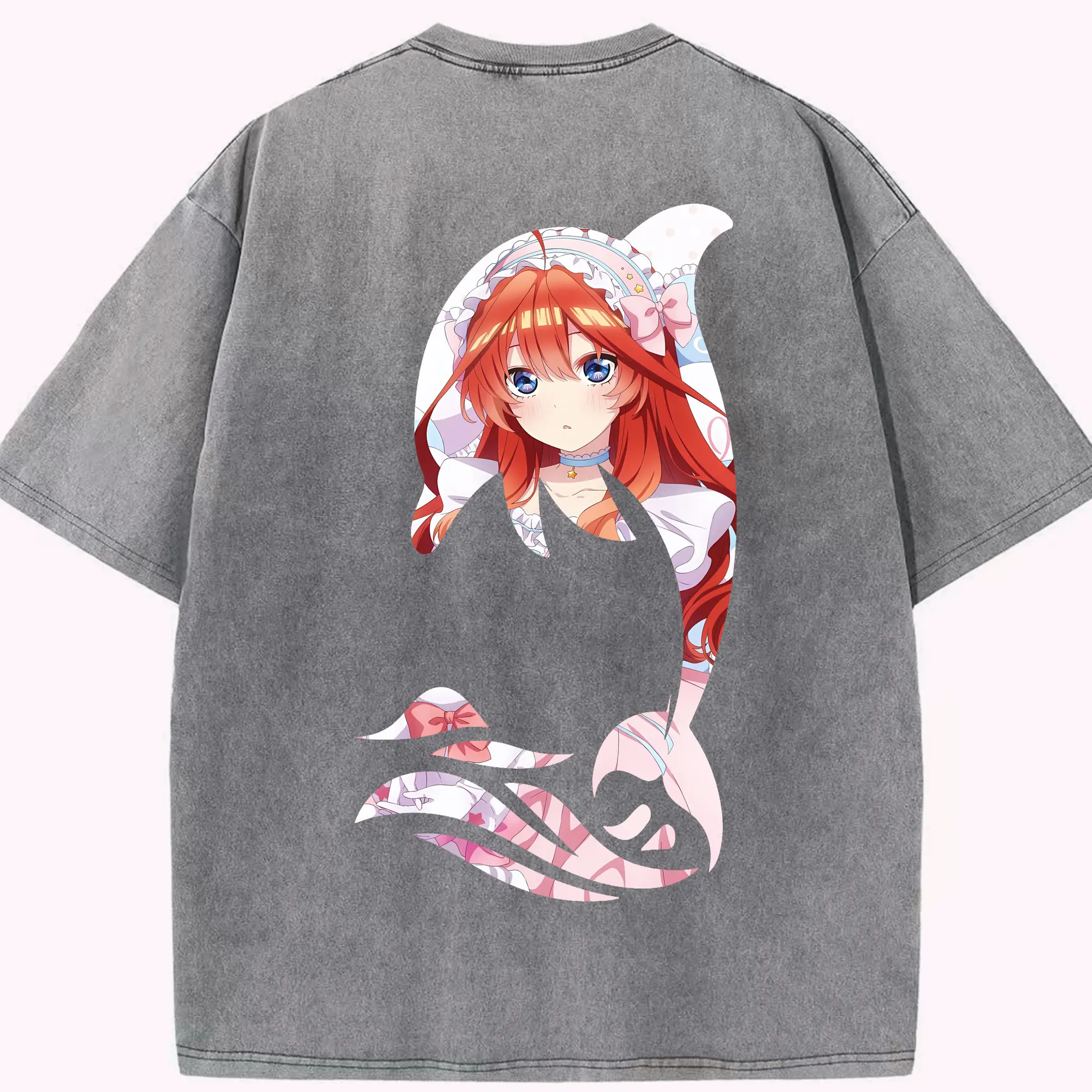 五等分の花嫁 グッズ 中野 五月 - 綿100% ヴィンテージ風 半袖Tシャツ ・ フロントプリント ・ 柔らか肌触り ・ 通気性 快適 ・ スポーツ カジュアル 外出用