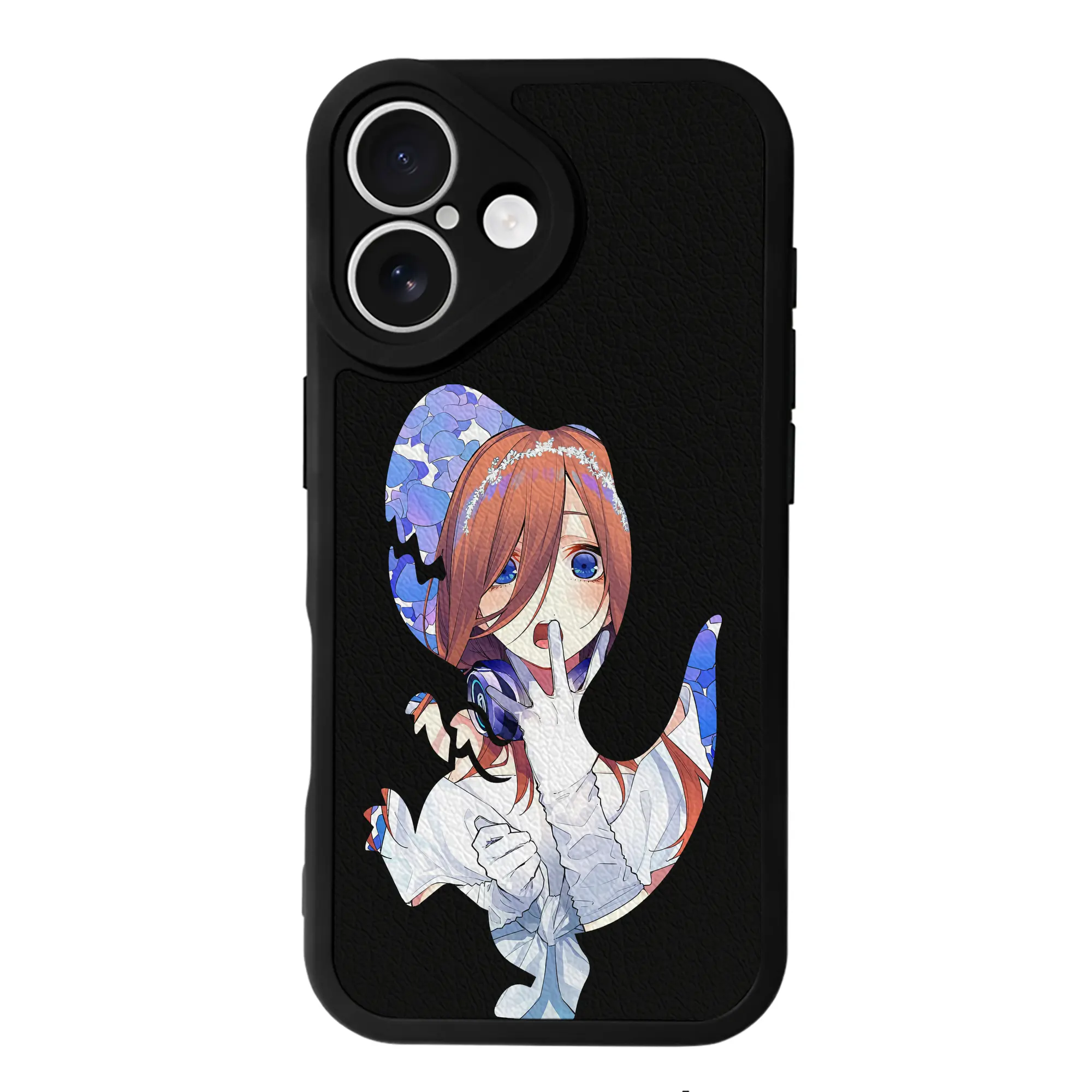 五等分の花嫁 グッズ 中野 三玖 - IPhone 16シリーズ対応 ・ シリコンスマホケース ・ レザー調 ・ 高精度フィット ・ 耐衝撃 ・ ワイヤレス充電対応 ・ 精密カット