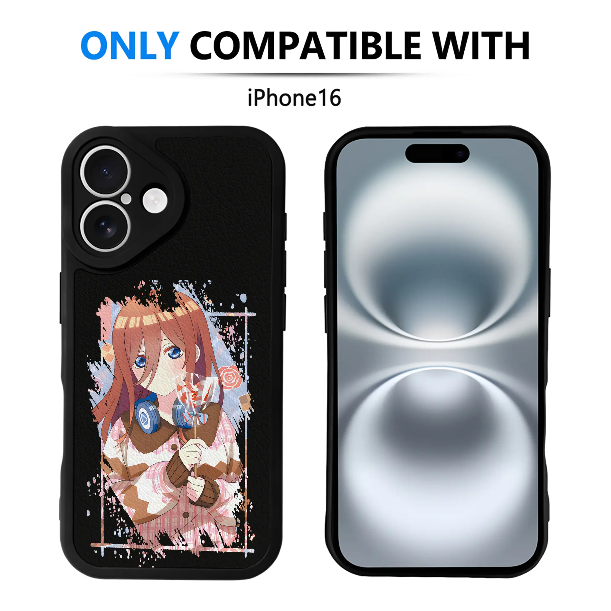 五等分の花嫁 グッズ 中野 三玖 - IPhone 16シリーズ対応 ・ シリコンスマホケース ・ レザー調 ・ 高精度フィット ・ 耐衝撃 ・ ワイヤレス充電対応 ・ 精密カット