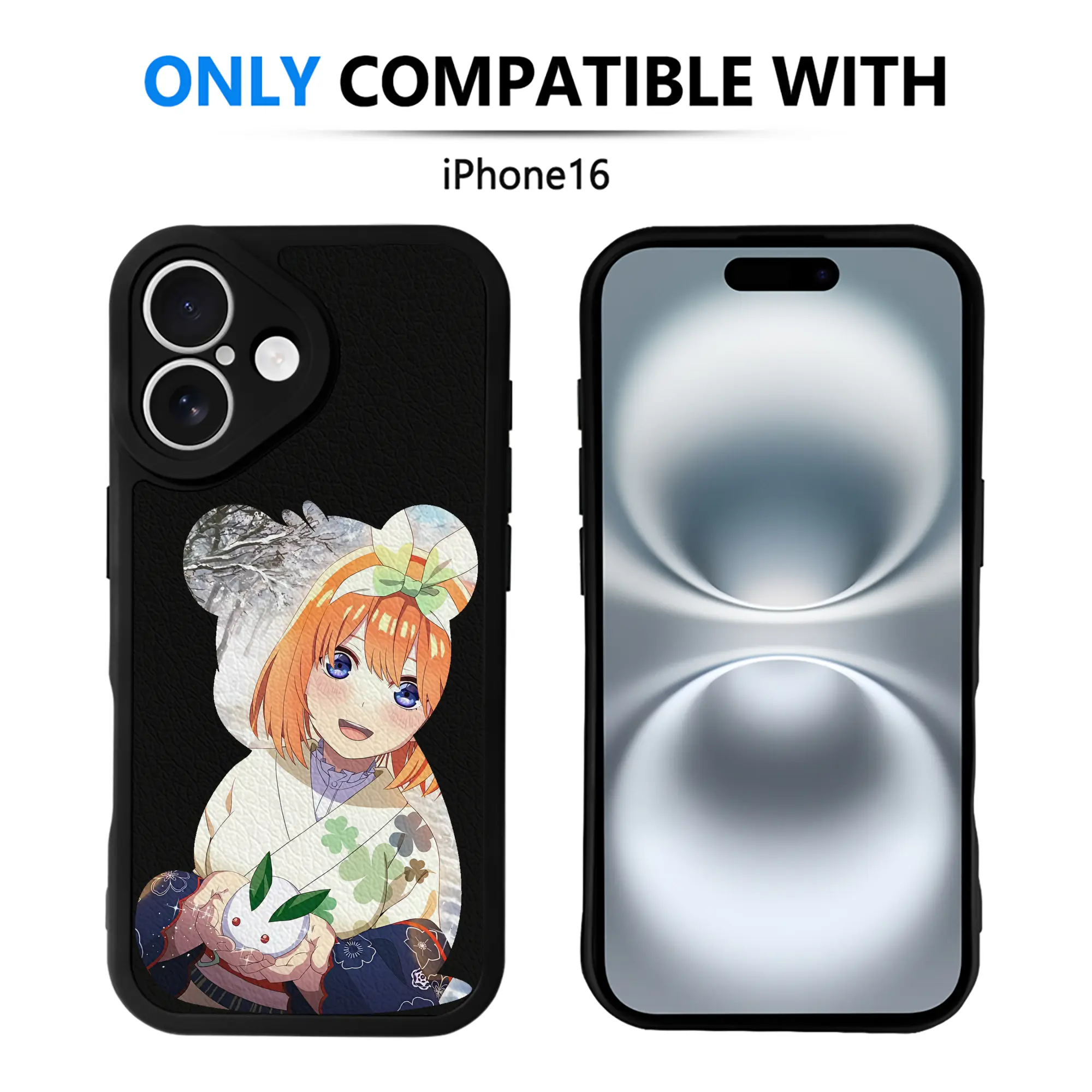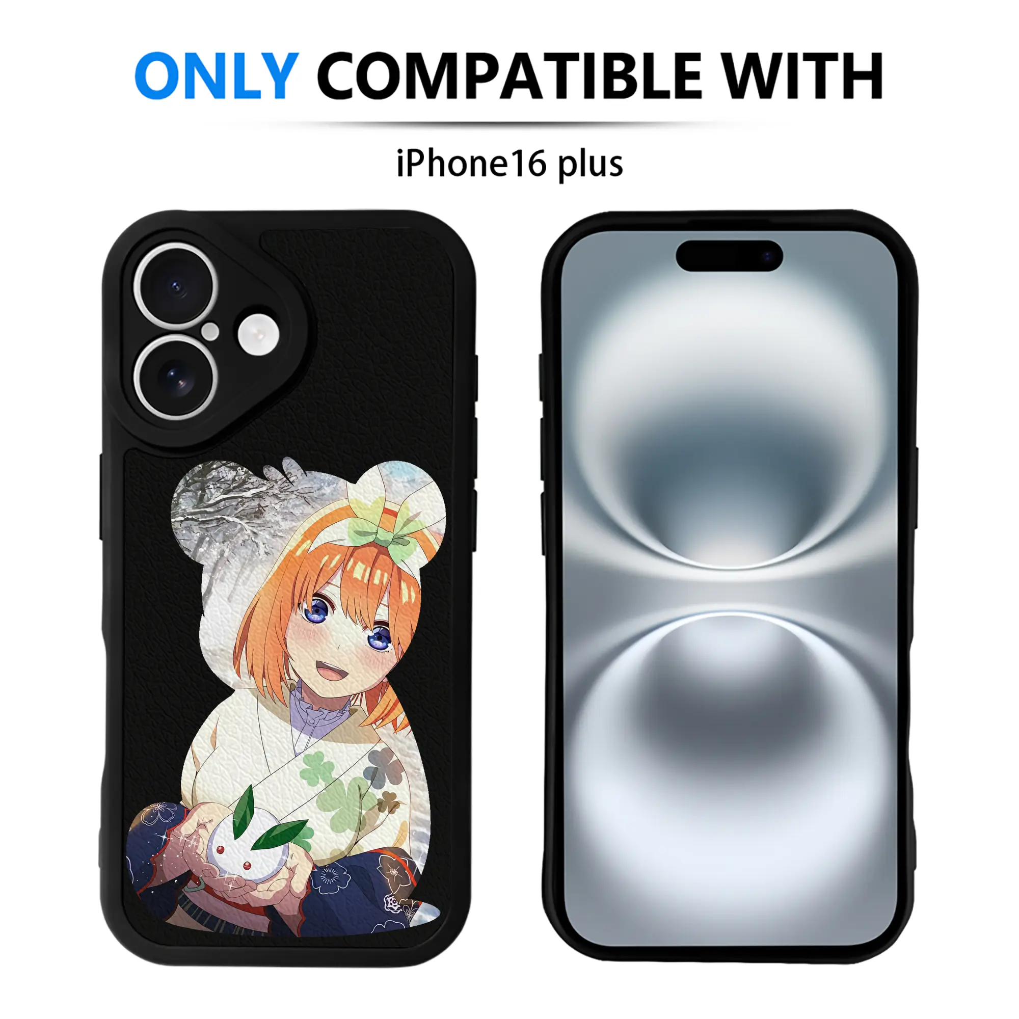 五等分の花嫁 グッズ 中野 四葉 - IPhone 16シリーズ対応 ・ シリコンスマホケース ・ レザー調 ・ 高精度フィット ・ 耐衝撃 ・ ワイヤレス充電対応 ・ 精密カット