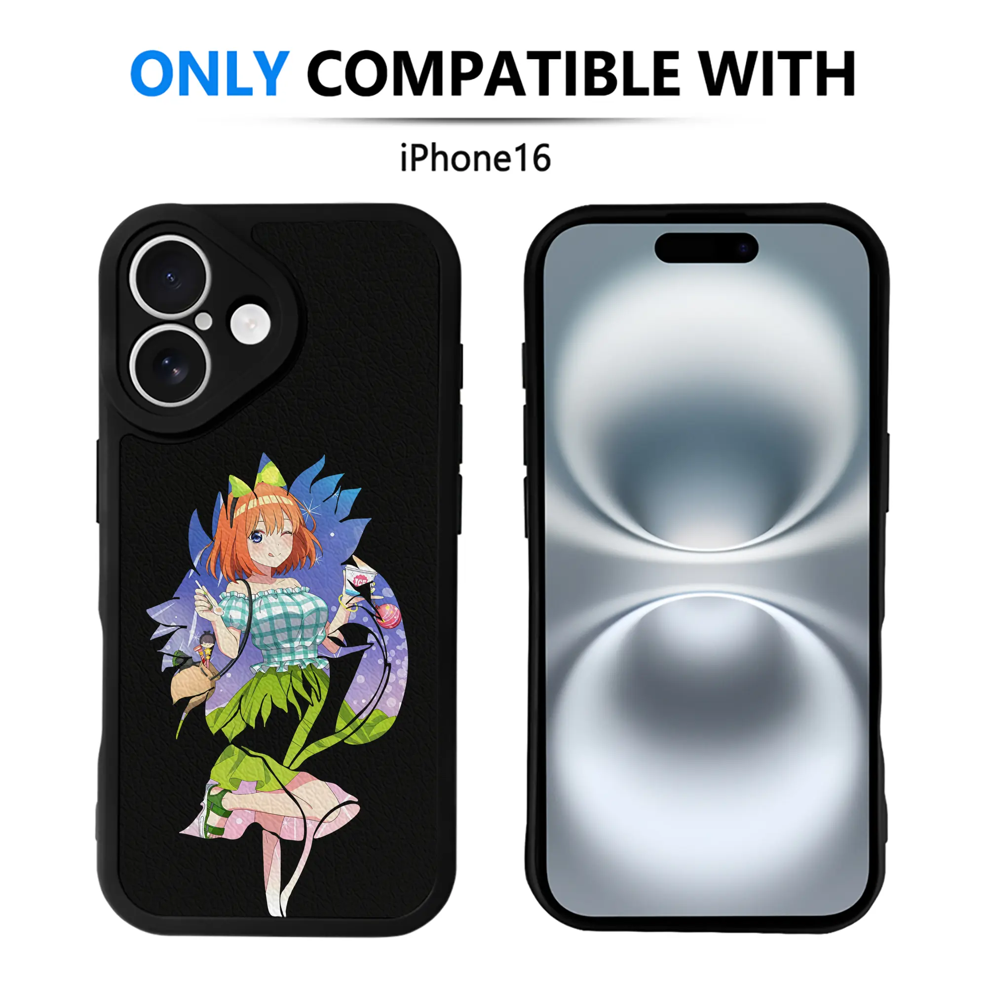 五等分の花嫁 グッズ 中野 四葉 - IPhone 16シリーズ対応 ・ シリコンスマホケース ・ レザー調 ・ 高精度フィット ・ 耐衝撃 ・ ワイヤレス充電対応 ・ 精密カット