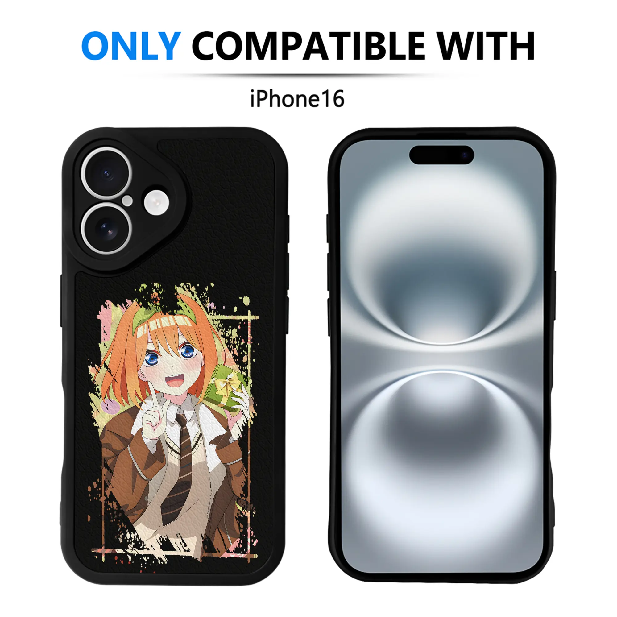 五等分の花嫁 グッズ 中野 四葉 - IPhone 16シリーズ対応 ・ シリコンスマホケース ・ レザー調 ・ 高精度フィット ・ 耐衝撃 ・ ワイヤレス充電対応 ・ 精密カット