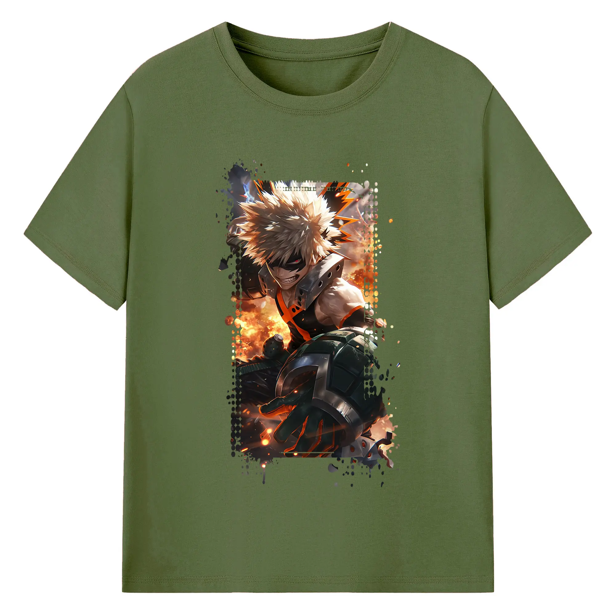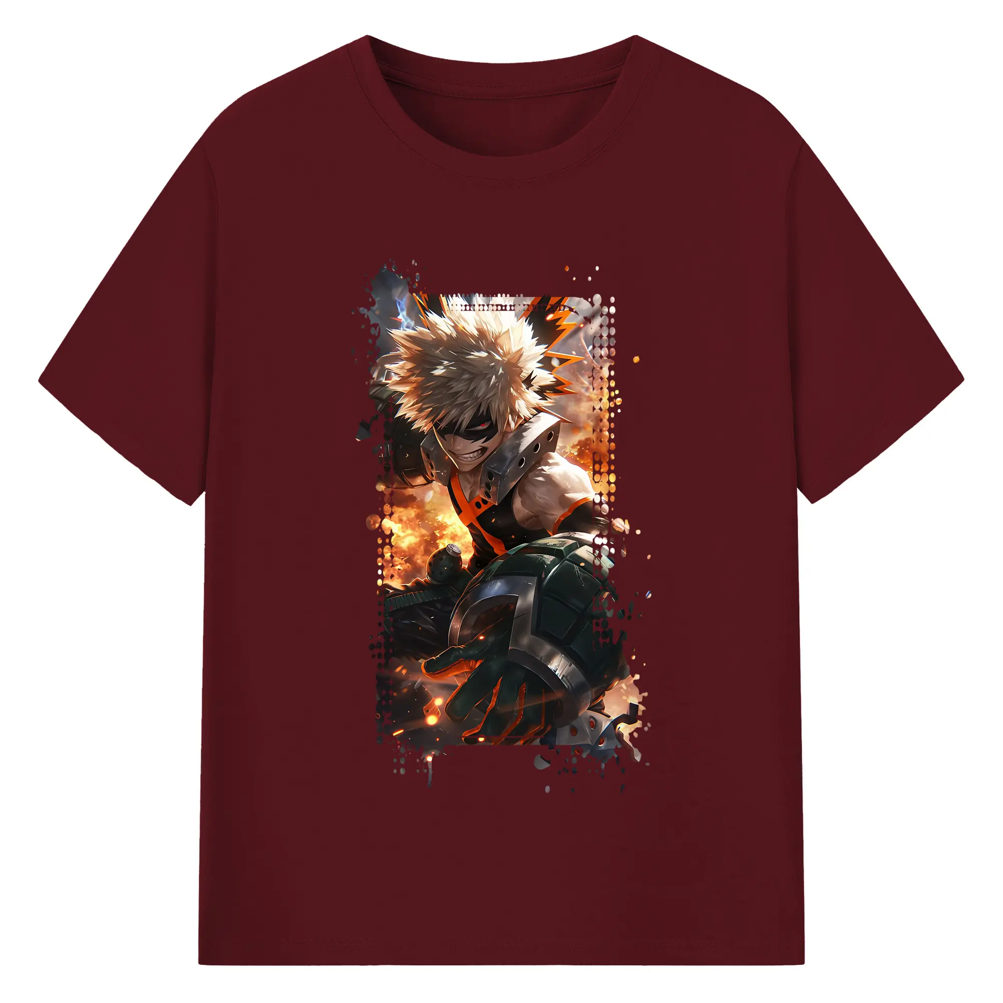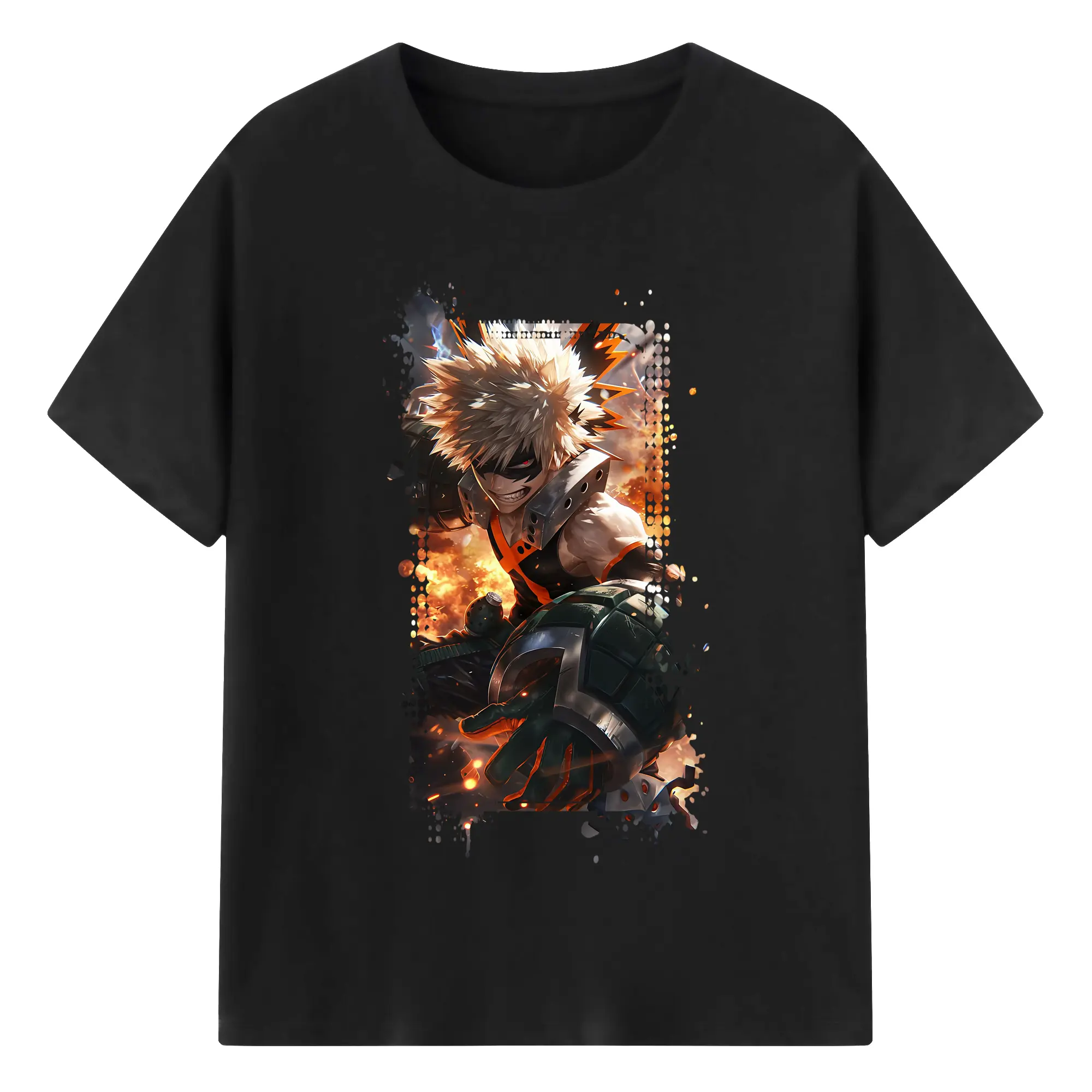僕のヒーローアカデミア グッズ,爆豪勝己 - 綿100% 半袖Tシャツ ・ バックプリント ・ 快適 通気性 ・ 日常使い 散歩 スポーツ用