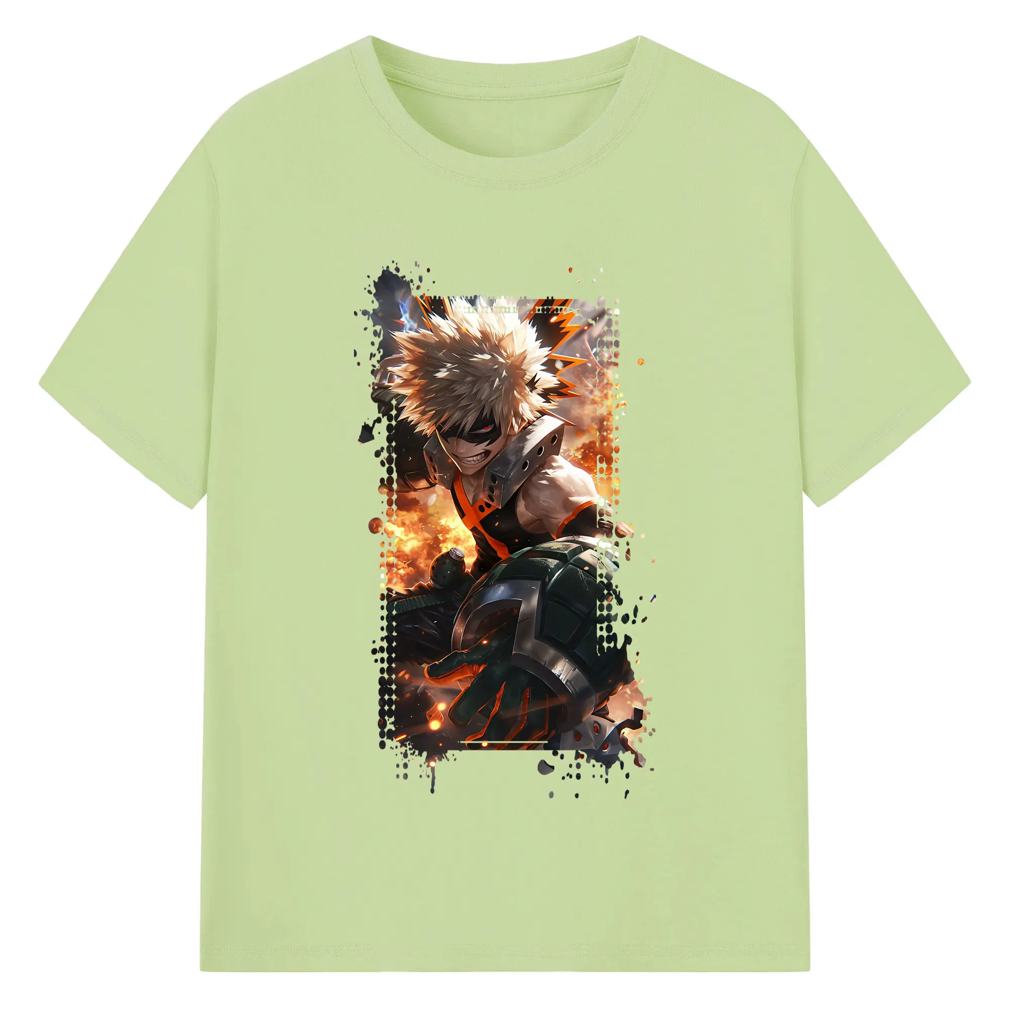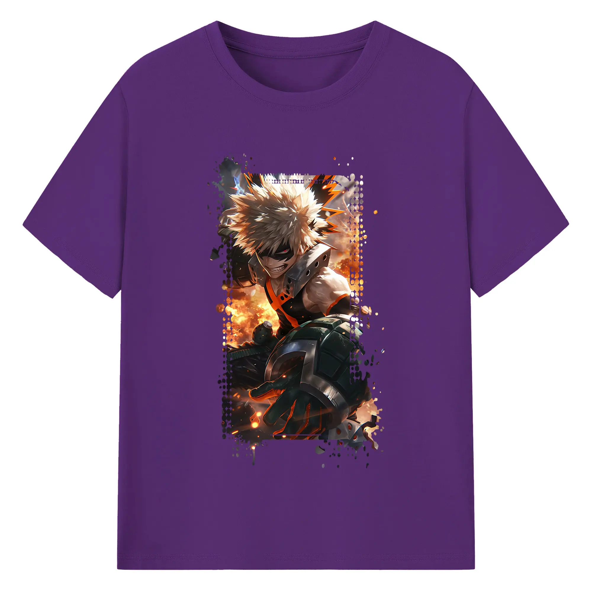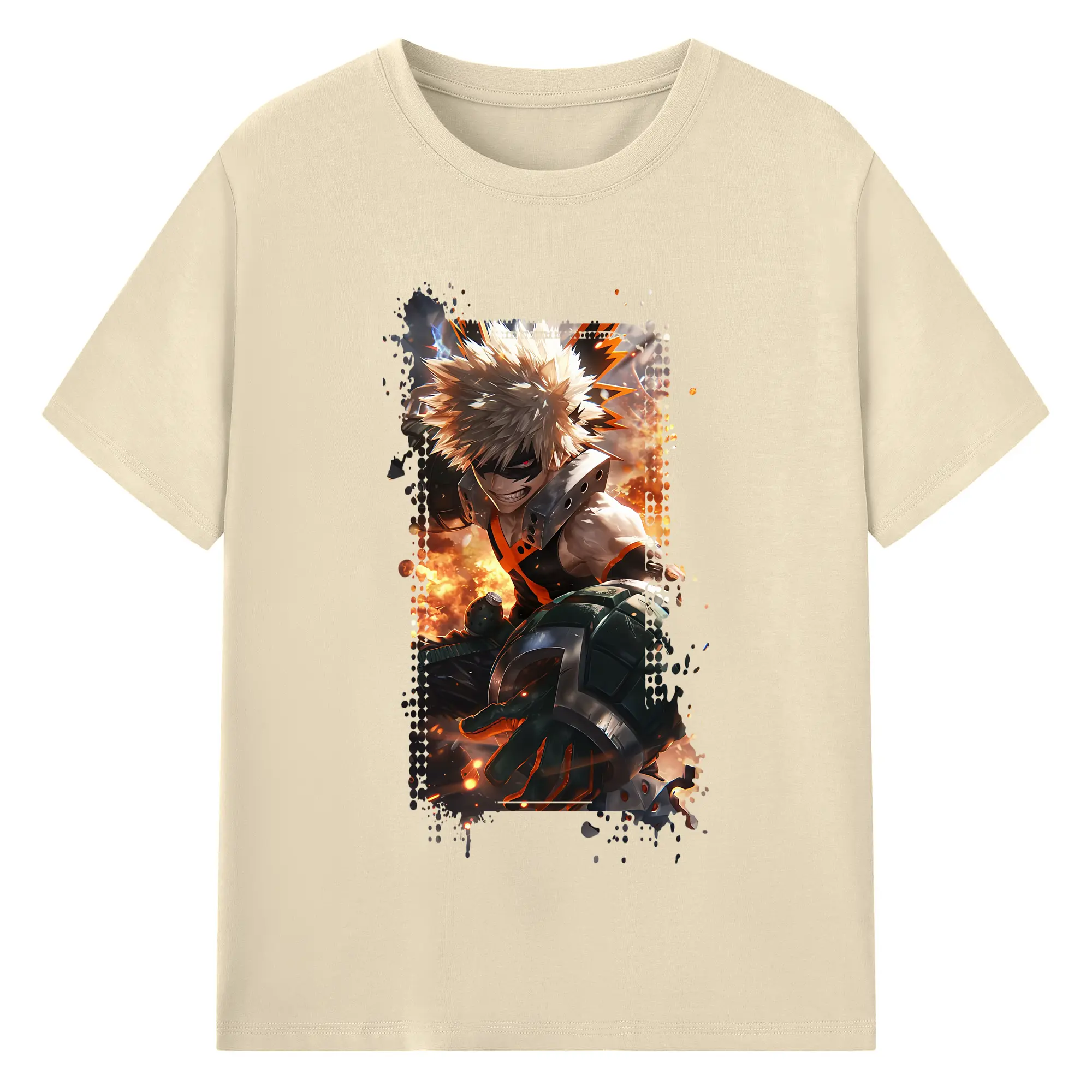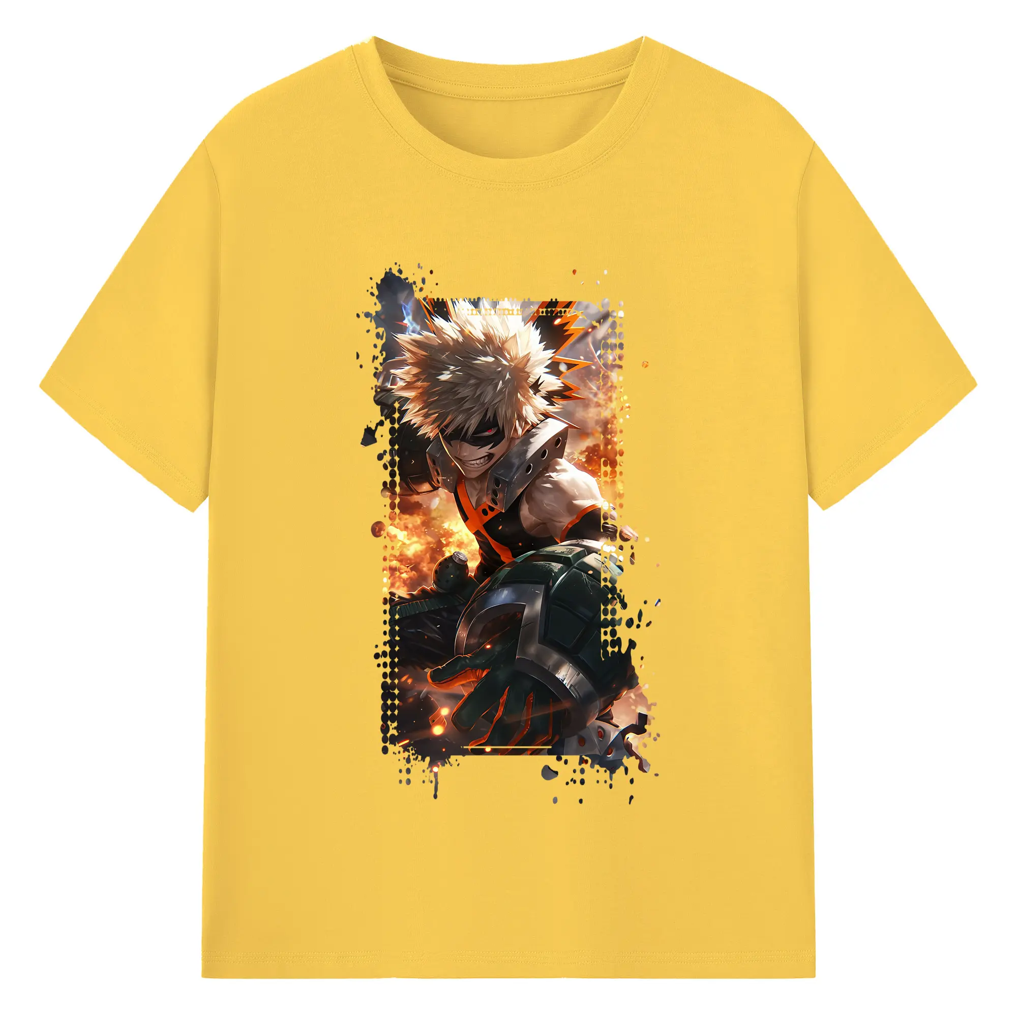 僕のヒーローアカデミア グッズ,爆豪勝己 - 綿100% 半袖Tシャツ ・ バックプリント ・ 快適 通気性 ・ 日常使い 散歩 スポーツ用