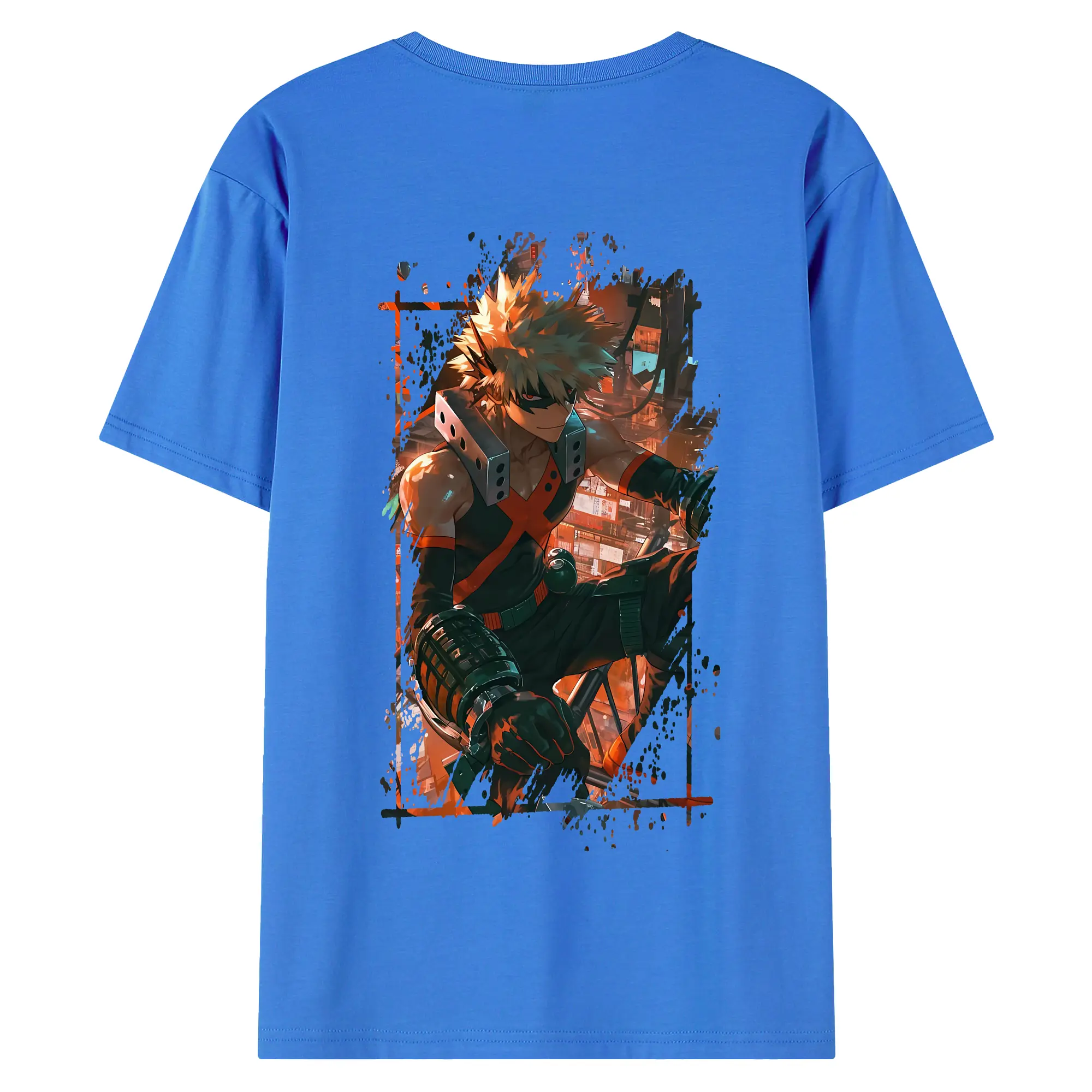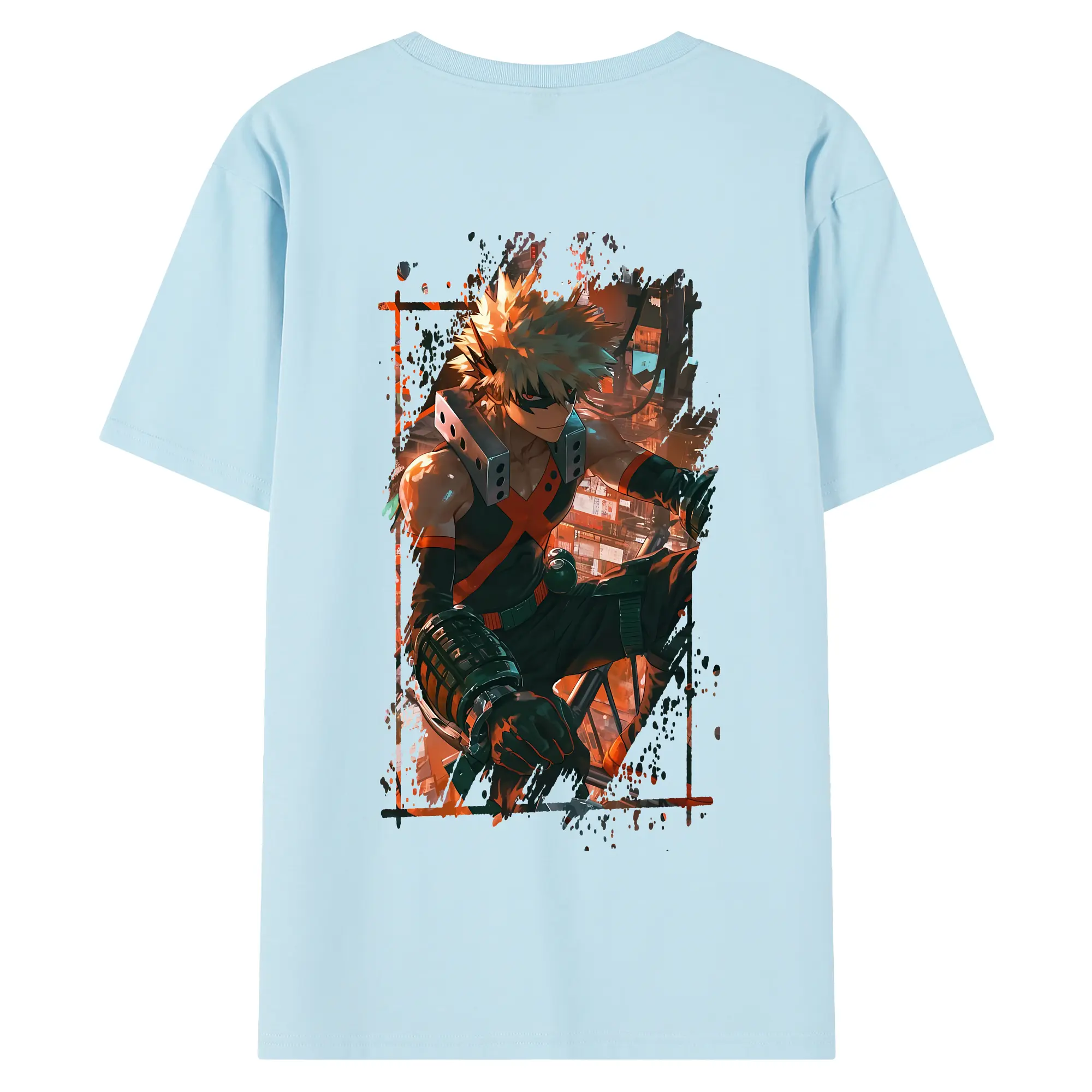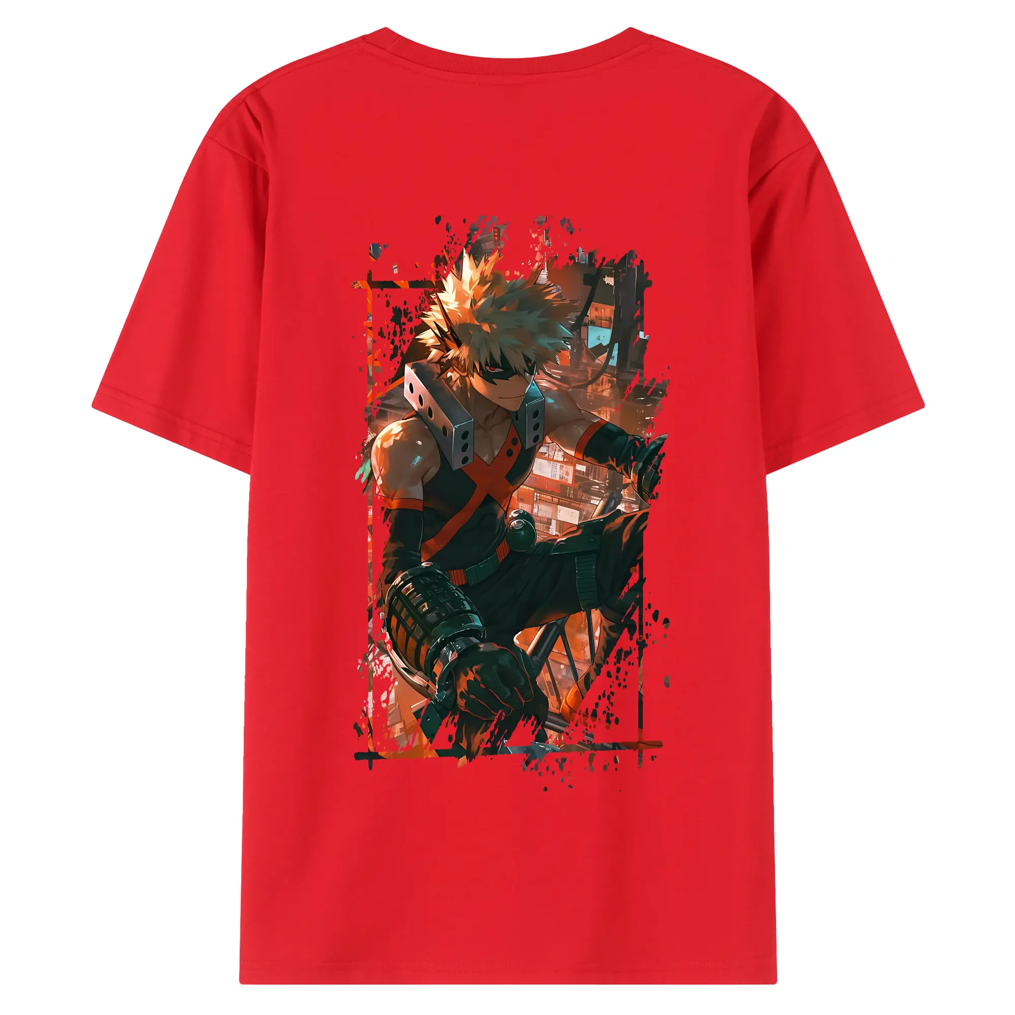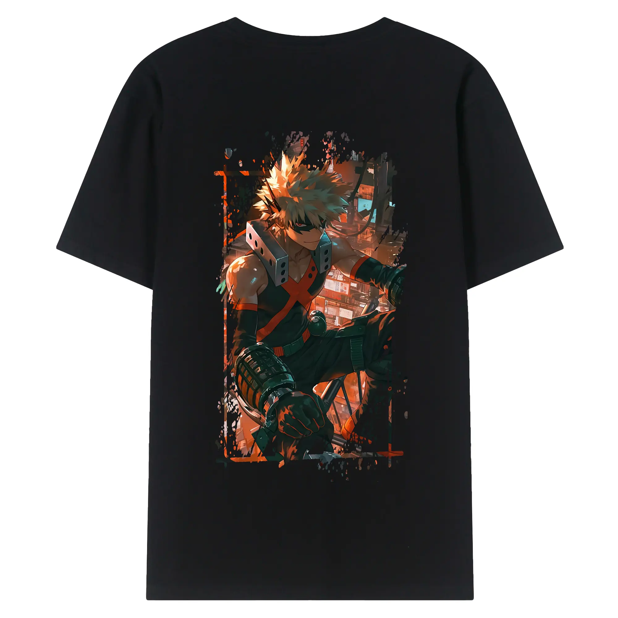 僕のヒーローアカデミア グッズ,爆豪勝己 - 綿100% 半袖Tシャツ ・ フロントプリント ・ 快適 通気性 ・ 日常使い 散歩 スポーツ用