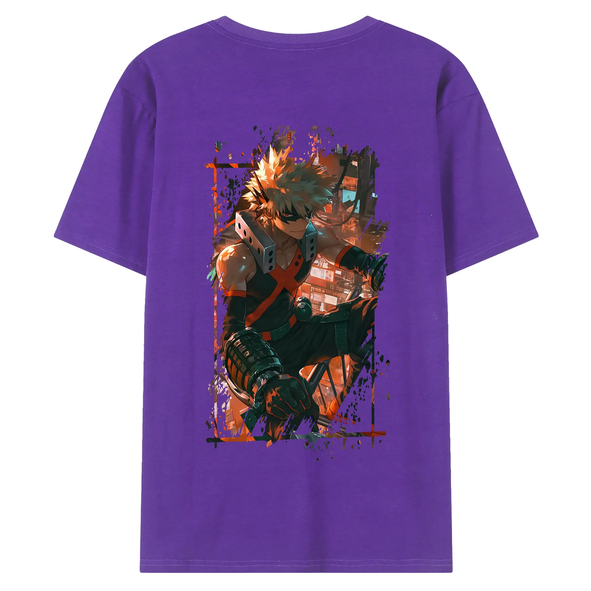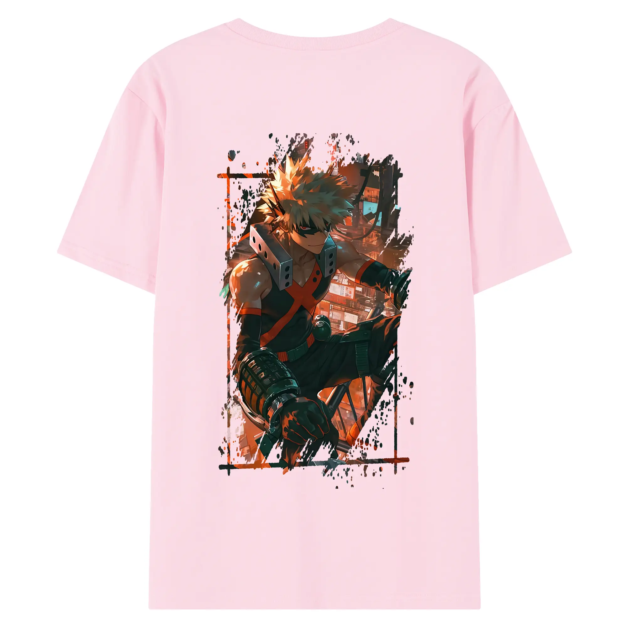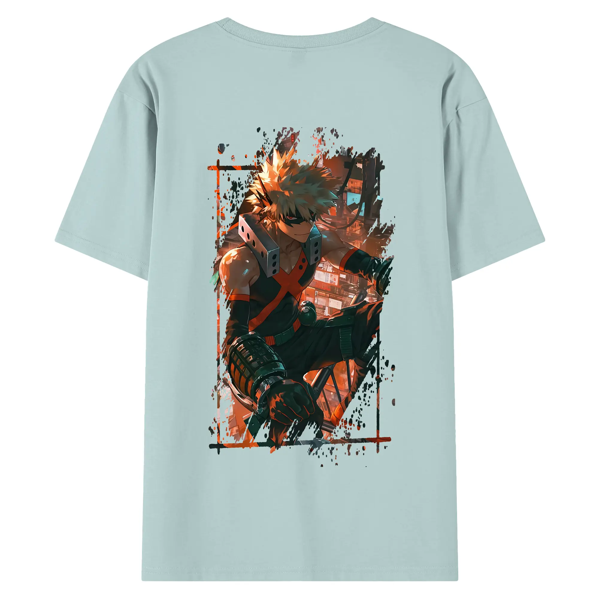 僕のヒーローアカデミア グッズ,爆豪勝己 - 綿100% 半袖Tシャツ ・ フロントプリント ・ 快適 通気性 ・ 日常使い 散歩 スポーツ用