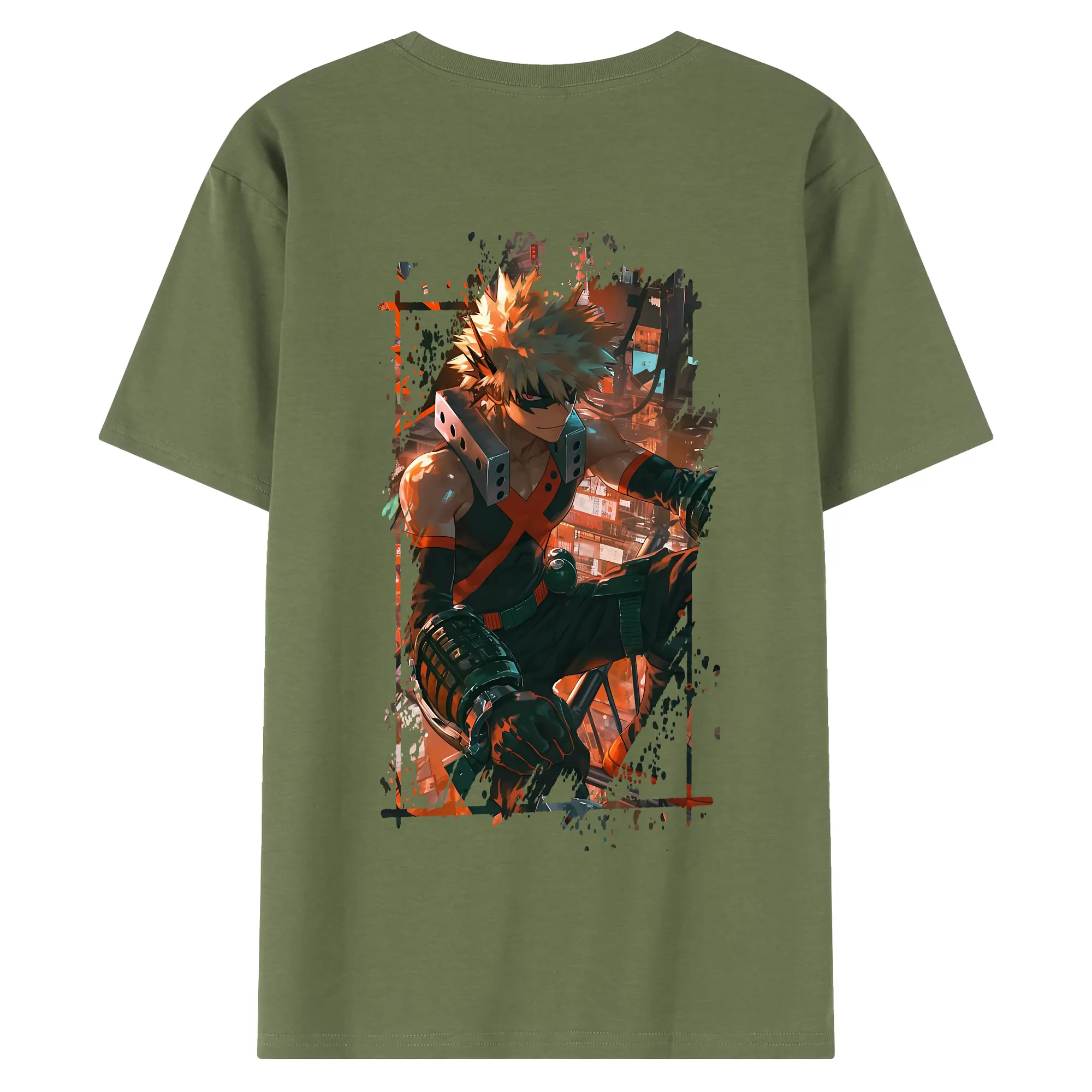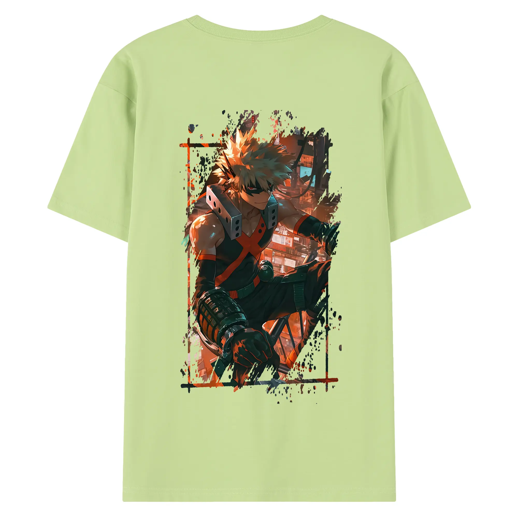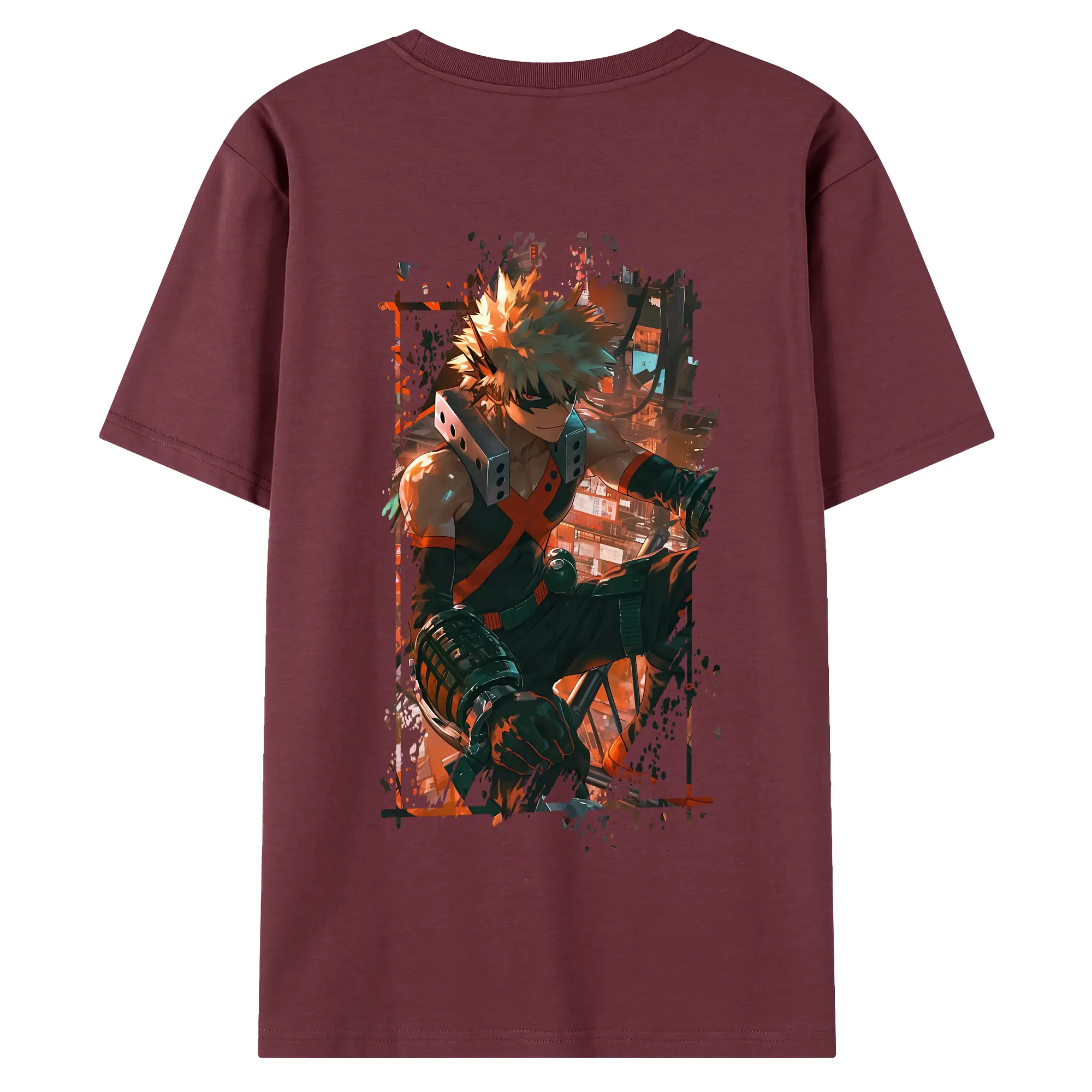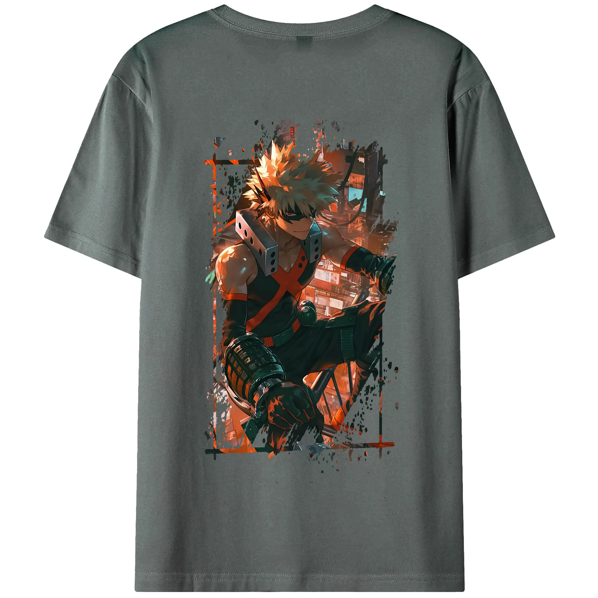 僕のヒーローアカデミア グッズ,爆豪勝己 - 綿100% 半袖Tシャツ ・ フロントプリント ・ 快適 通気性 ・ 日常使い 散歩 スポーツ用