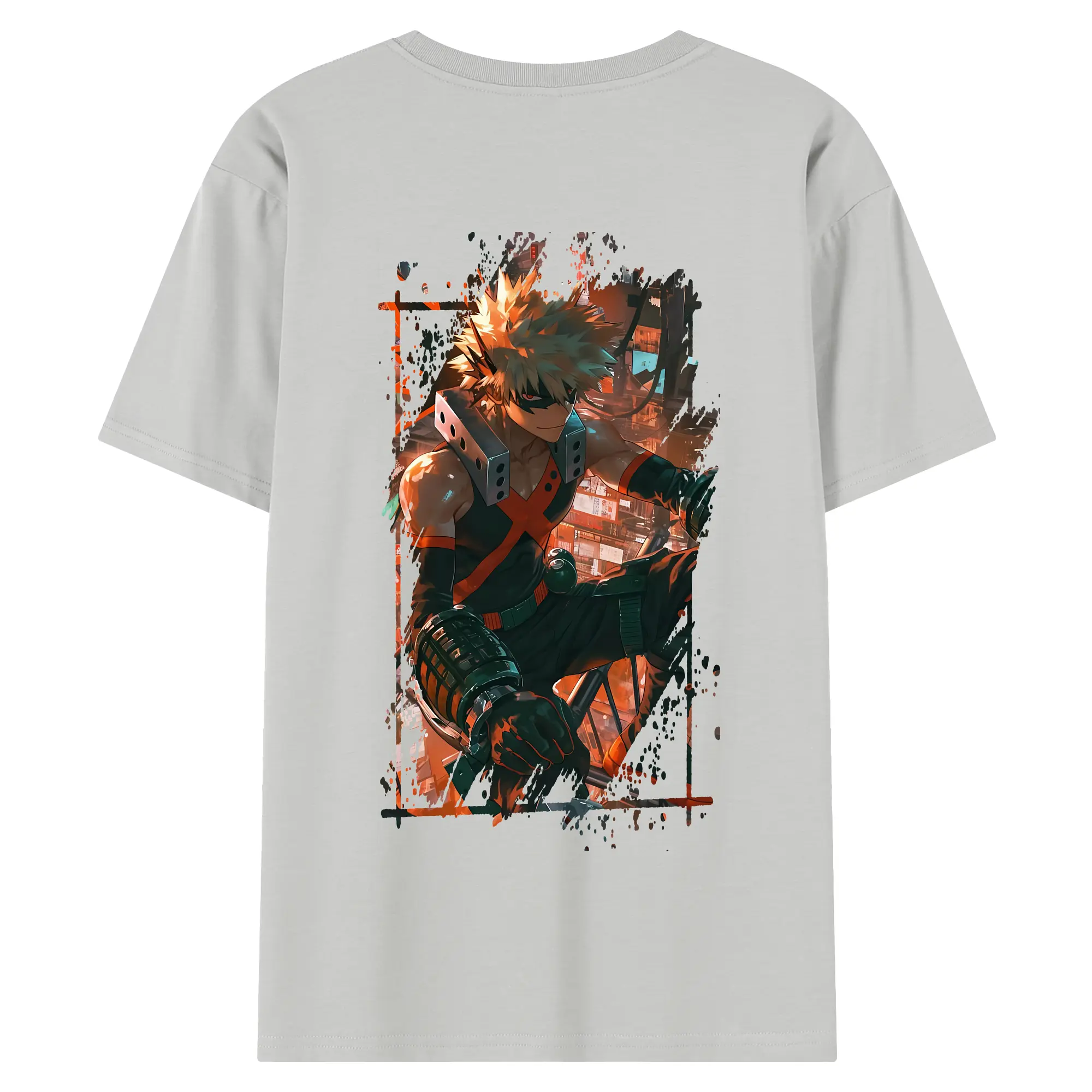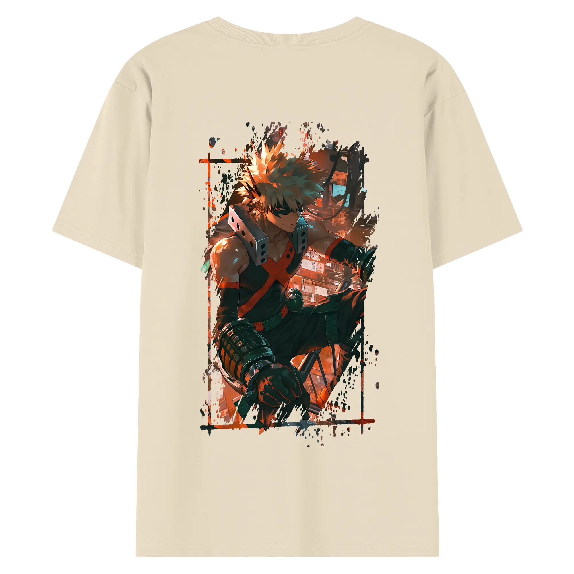 僕のヒーローアカデミア グッズ,爆豪勝己 - 綿100% ヴィンテージ風 半袖Tシャツ ・ 背面プリント ・ 柔らか肌触り ・ 通気性 快適 ・ スポーツ カジュアル 外出用