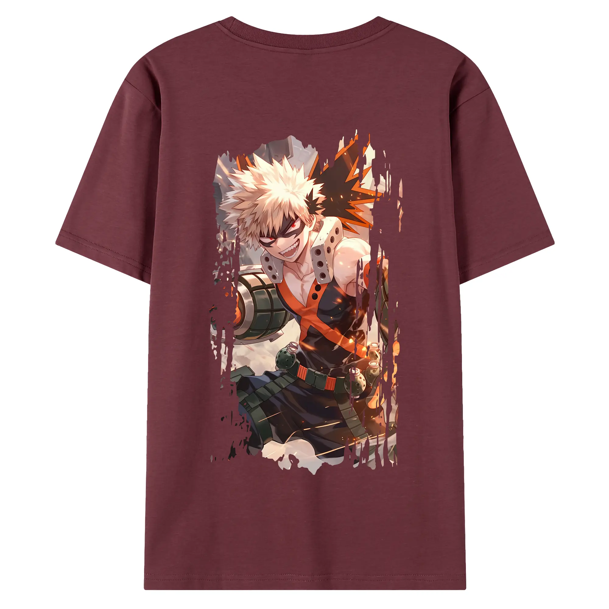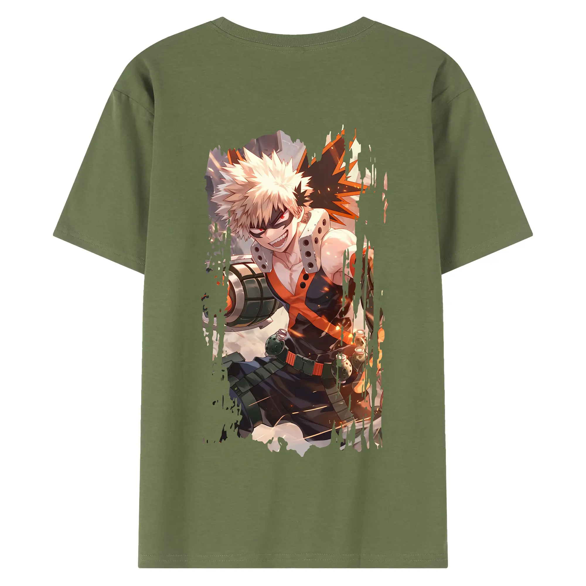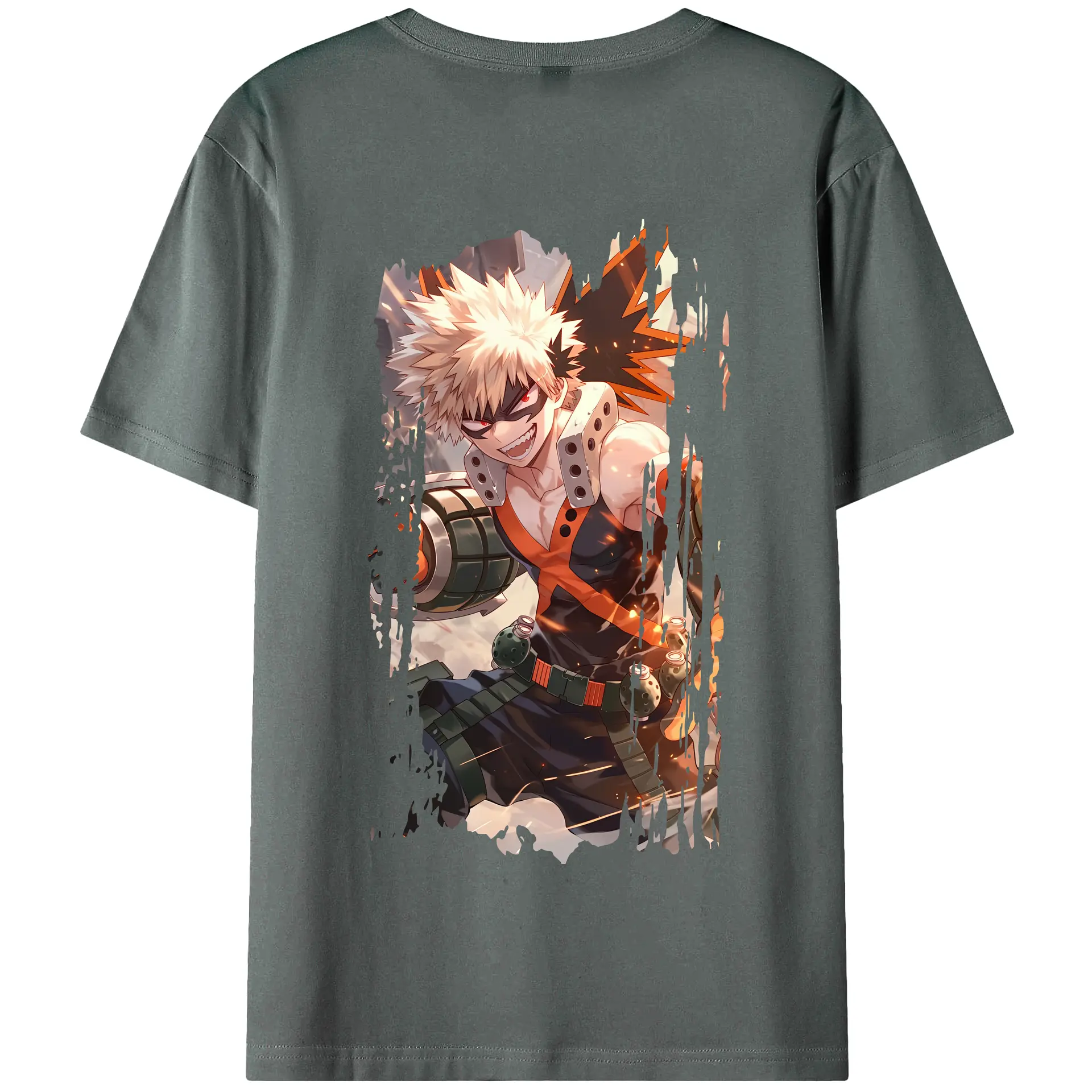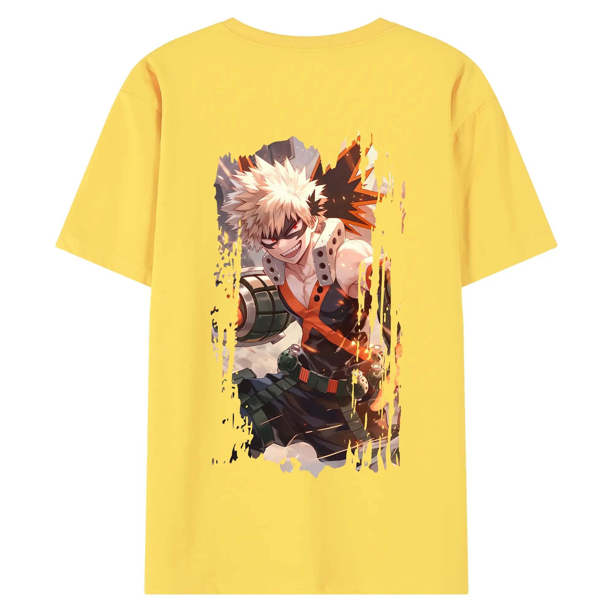 僕のヒーローアカデミア グッズ,爆豪勝己 - 綿100% 半袖Tシャツ ・ フロントプリント ・ 快適 通気性 ・ 日常使い 散歩 スポーツ用