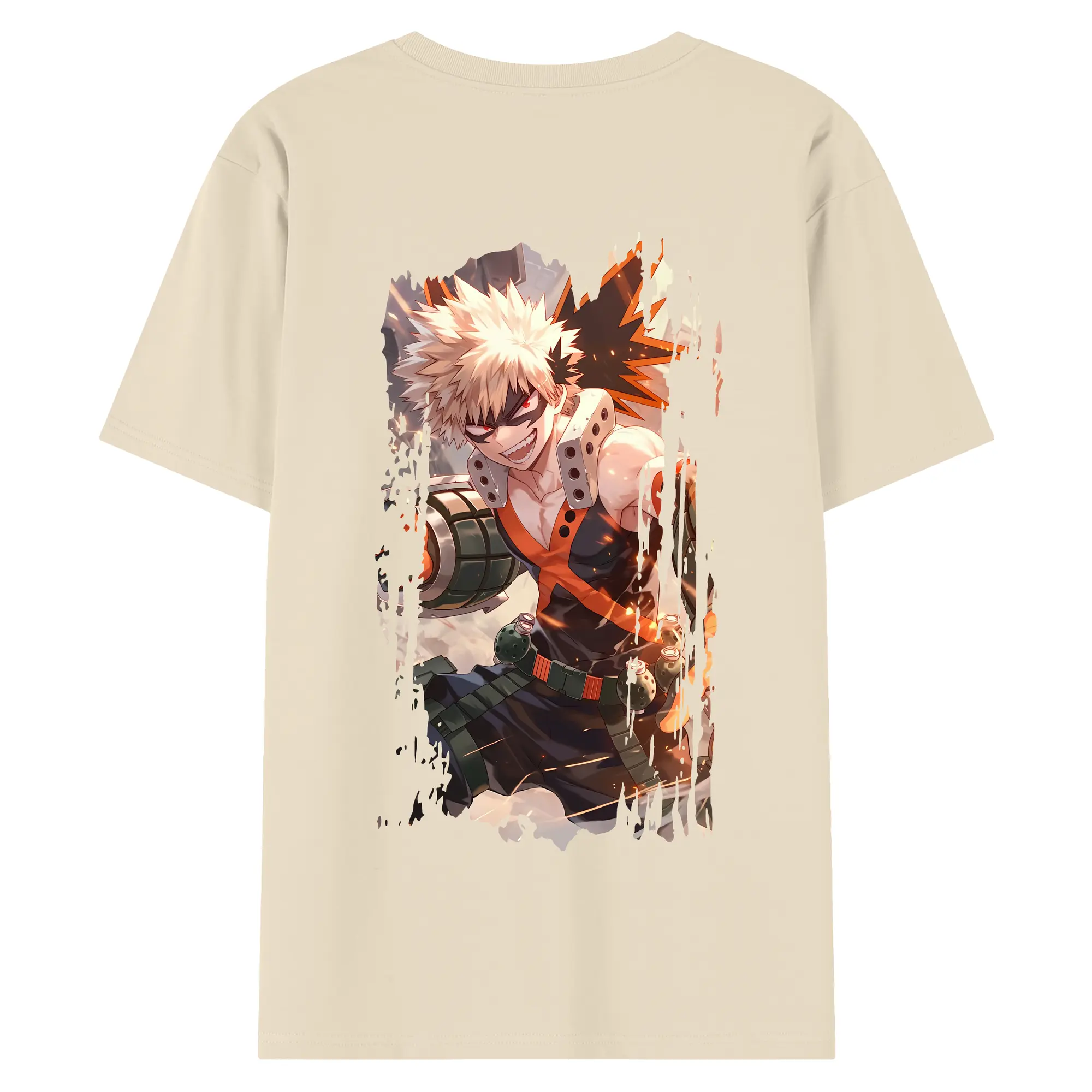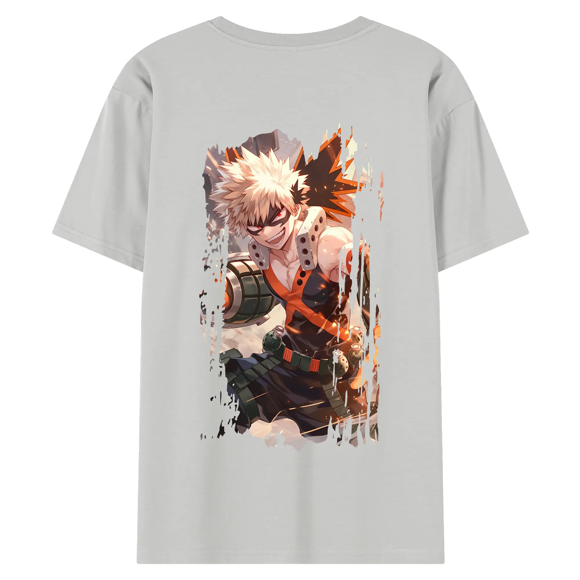 僕のヒーローアカデミア グッズ,爆豪勝己 - 綿100% ヴィンテージ風 半袖Tシャツ ・ 背面プリント ・ 柔らか肌触り ・ 通気性 快適 ・ スポーツ カジュアル 外出用