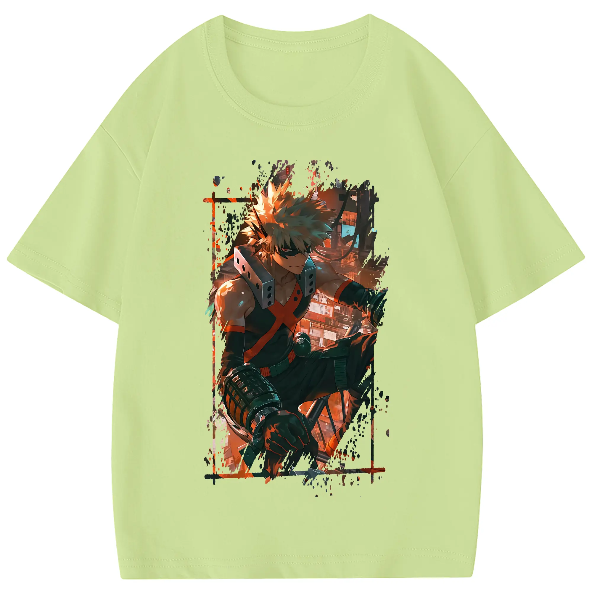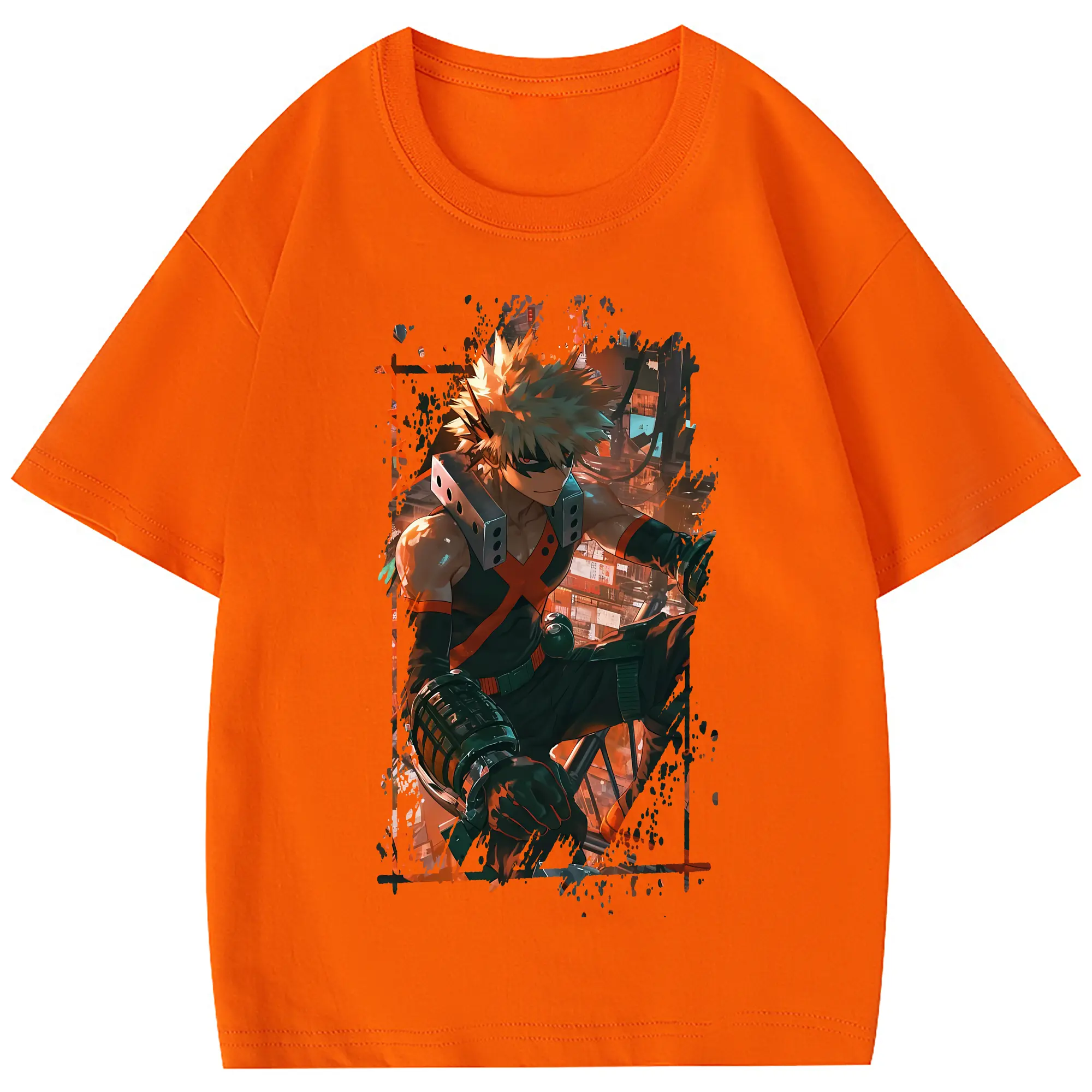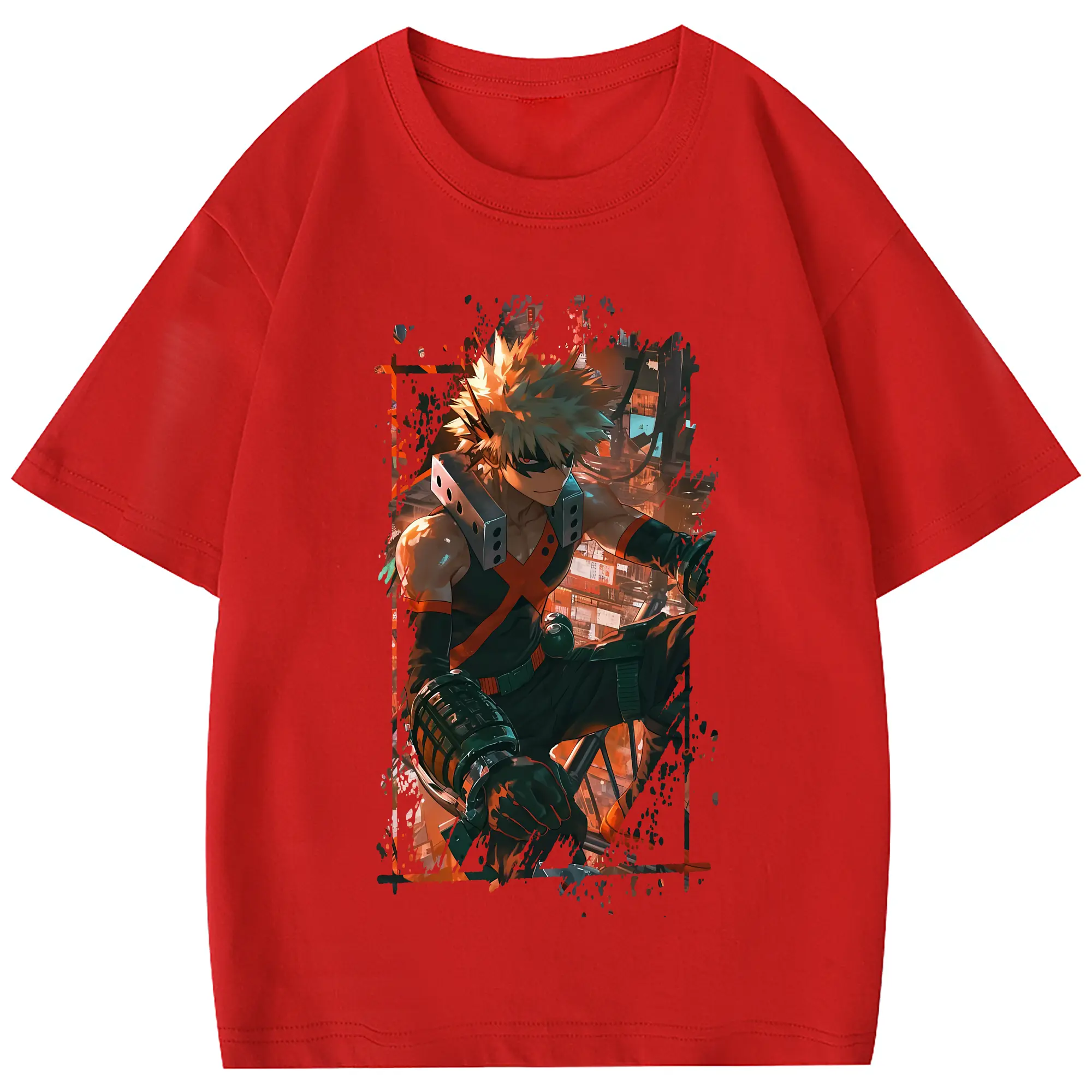 僕のヒーローアカデミア グッズ,爆豪勝己 - 綿100% 半袖Tシャツ ・ フロントプリント ・ 快適 通気性 ・ 日常使い 散歩 スポーツ用