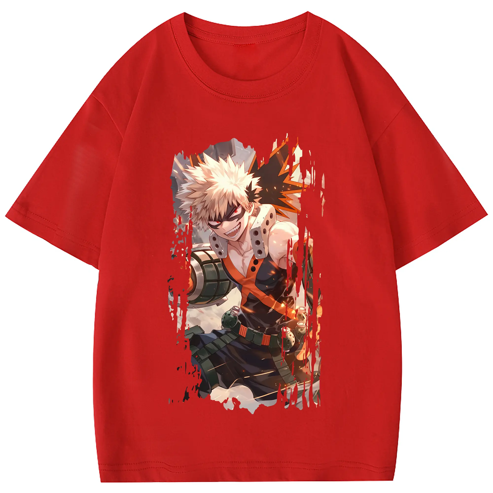 僕のヒーローアカデミア グッズ,爆豪勝己 - 綿100% 半袖Tシャツ ・ フロントプリント ・ 快適 通気性 ・ 日常使い 散歩 スポーツ用