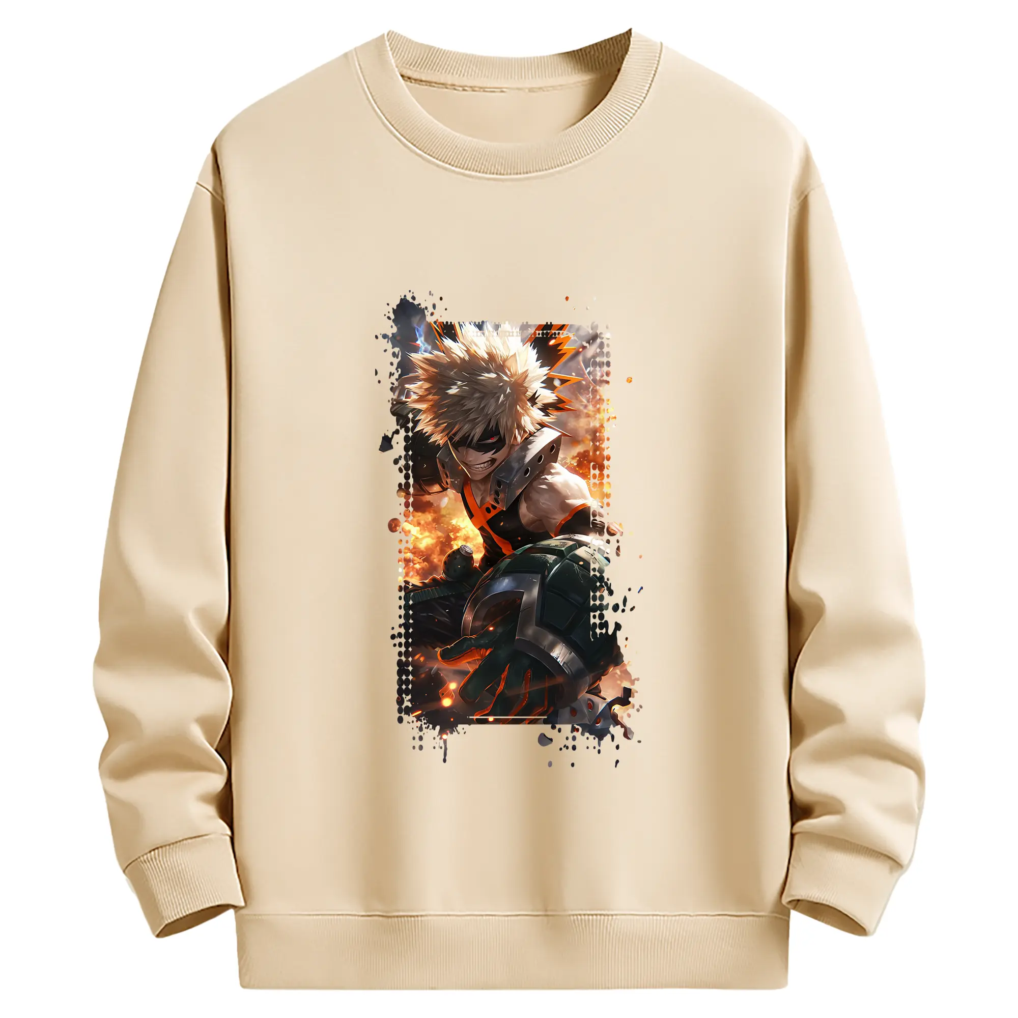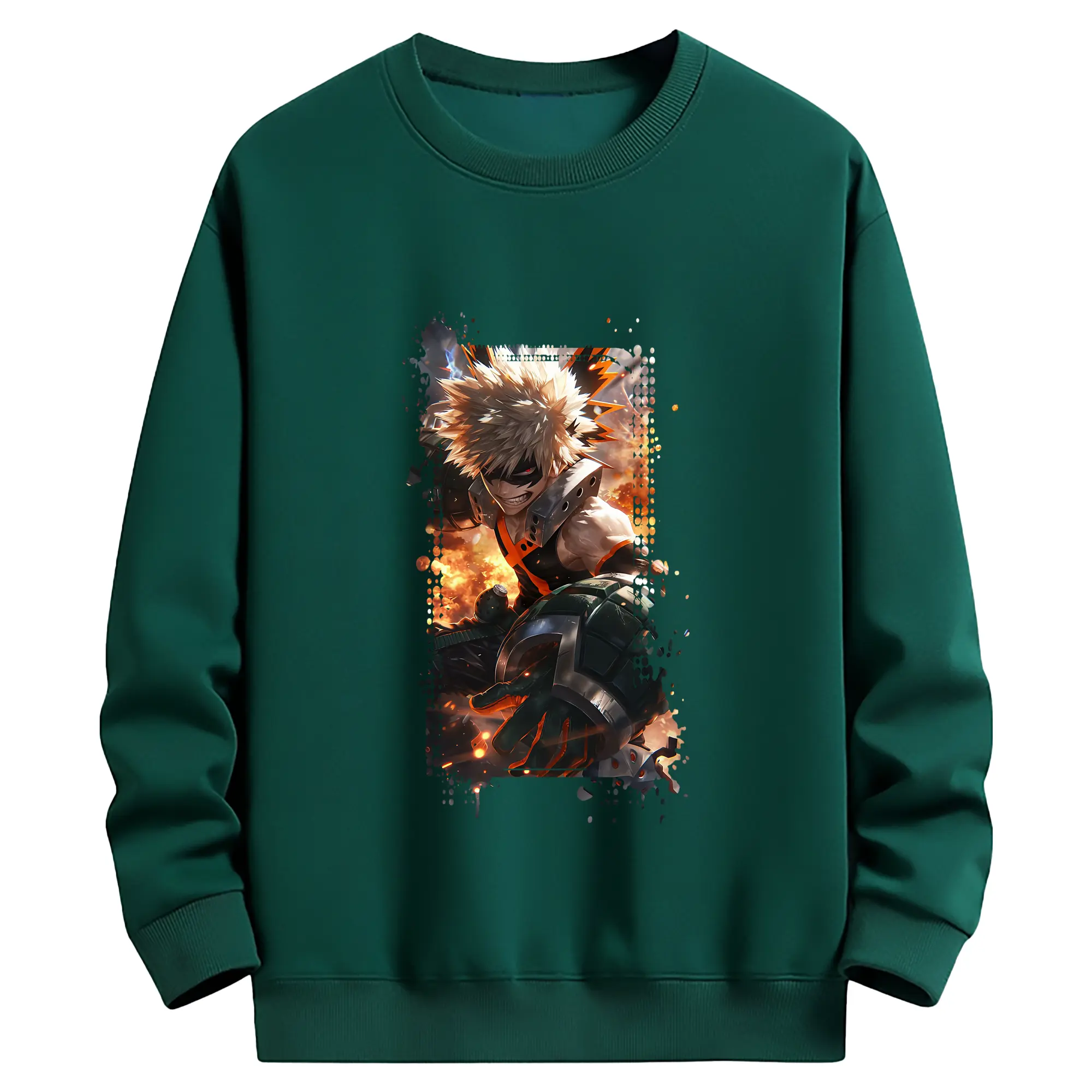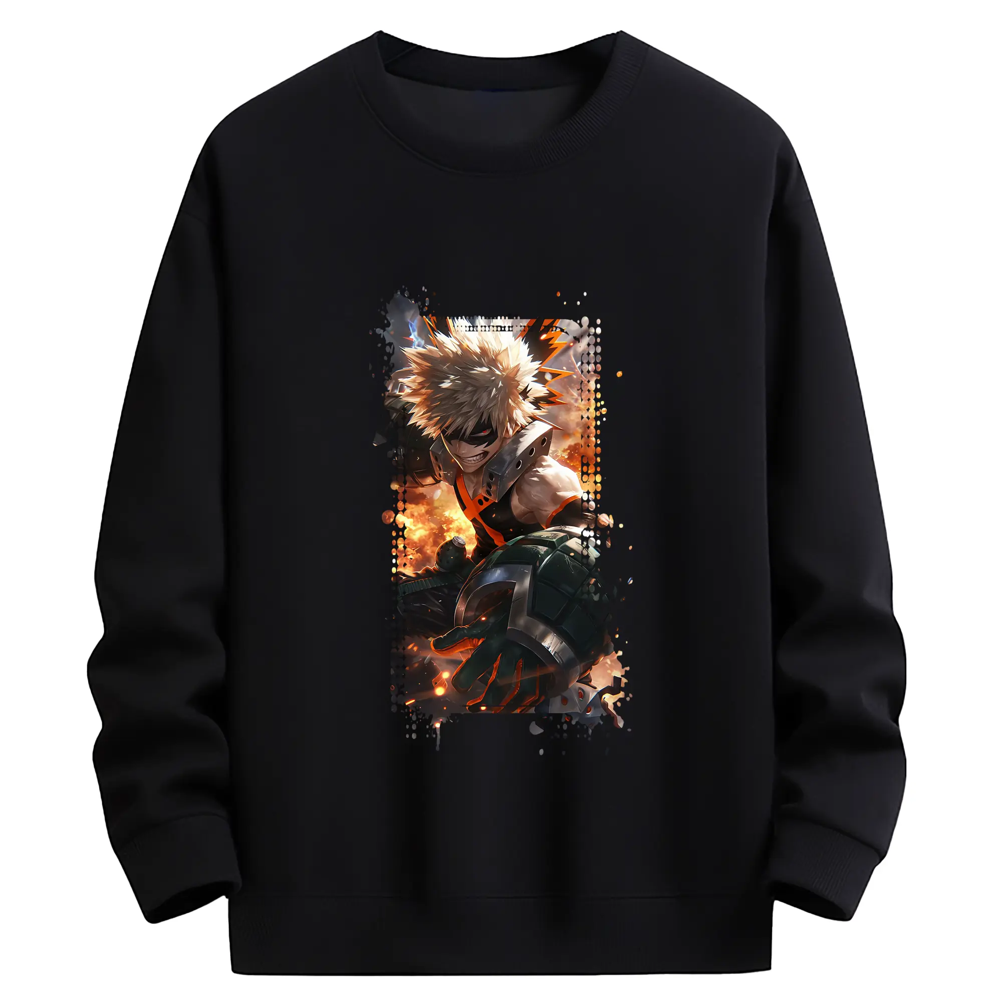 僕のヒーローアカデミア グッズ,爆豪勝己 - 薄手 クルーネック スウェット 裏毛260g · ポリエステル 春秋向け カジュアル 男女兼用 · トレーナー デイリー スポーツ 散歩に最適